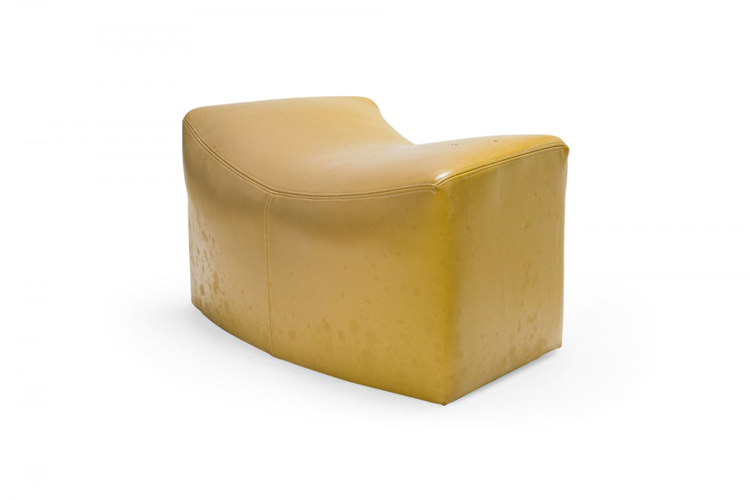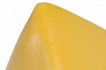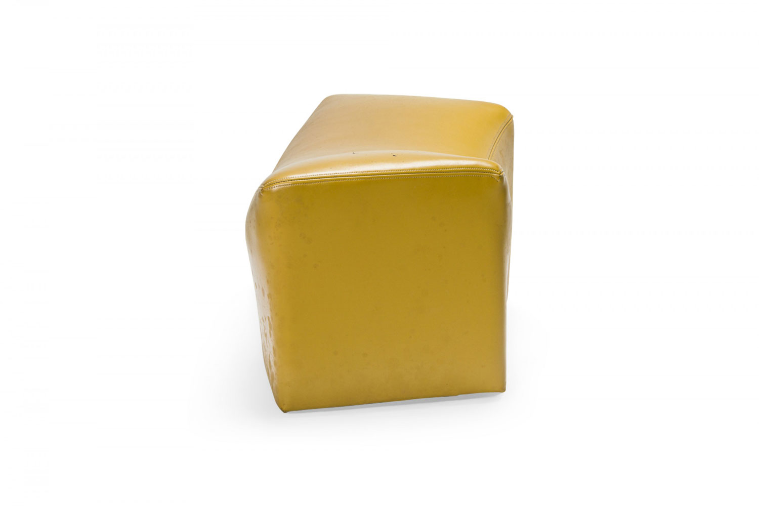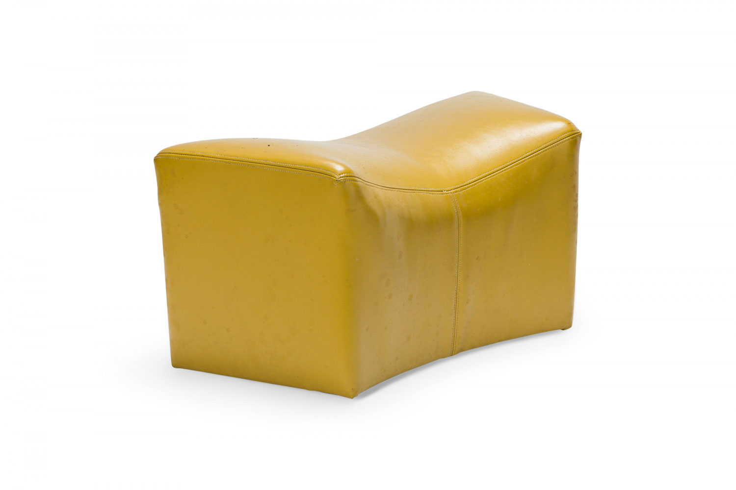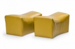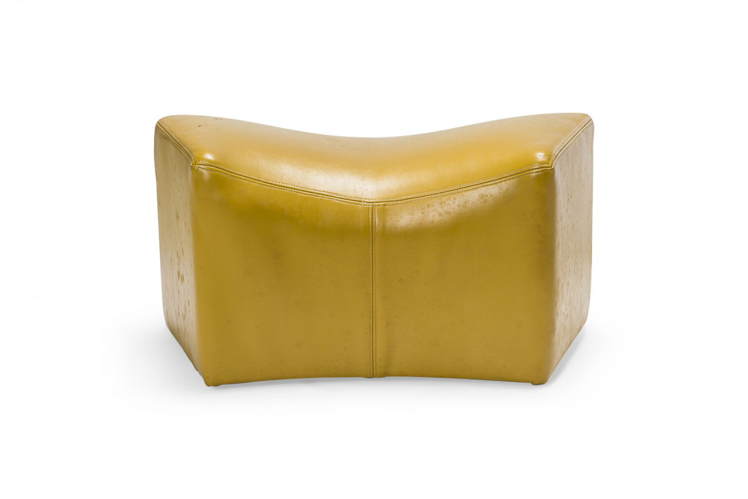 PAIR of American Mid-Century saddle ottomans with bright yellow leather upholstery. (PRICED AS PAIR)(Available in black upholstery: DUF0345).