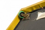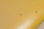 PAIR of American Mid-Century saddle ottomans with bright yellow leather upholstery. (PRICED AS PAIR)(Available in black upholstery: DUF0345)