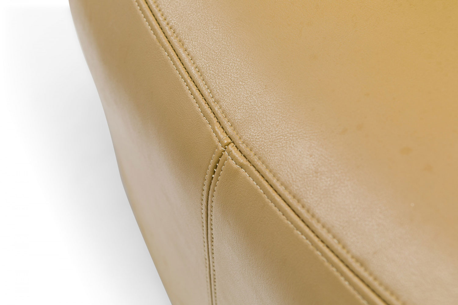 Style: Mid-Century Materials & Techniques: Leather, upholstered Category: Seating Good; Wear consistent with age and use