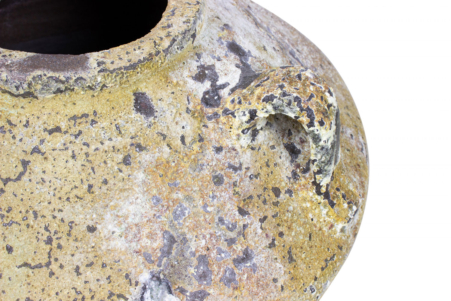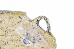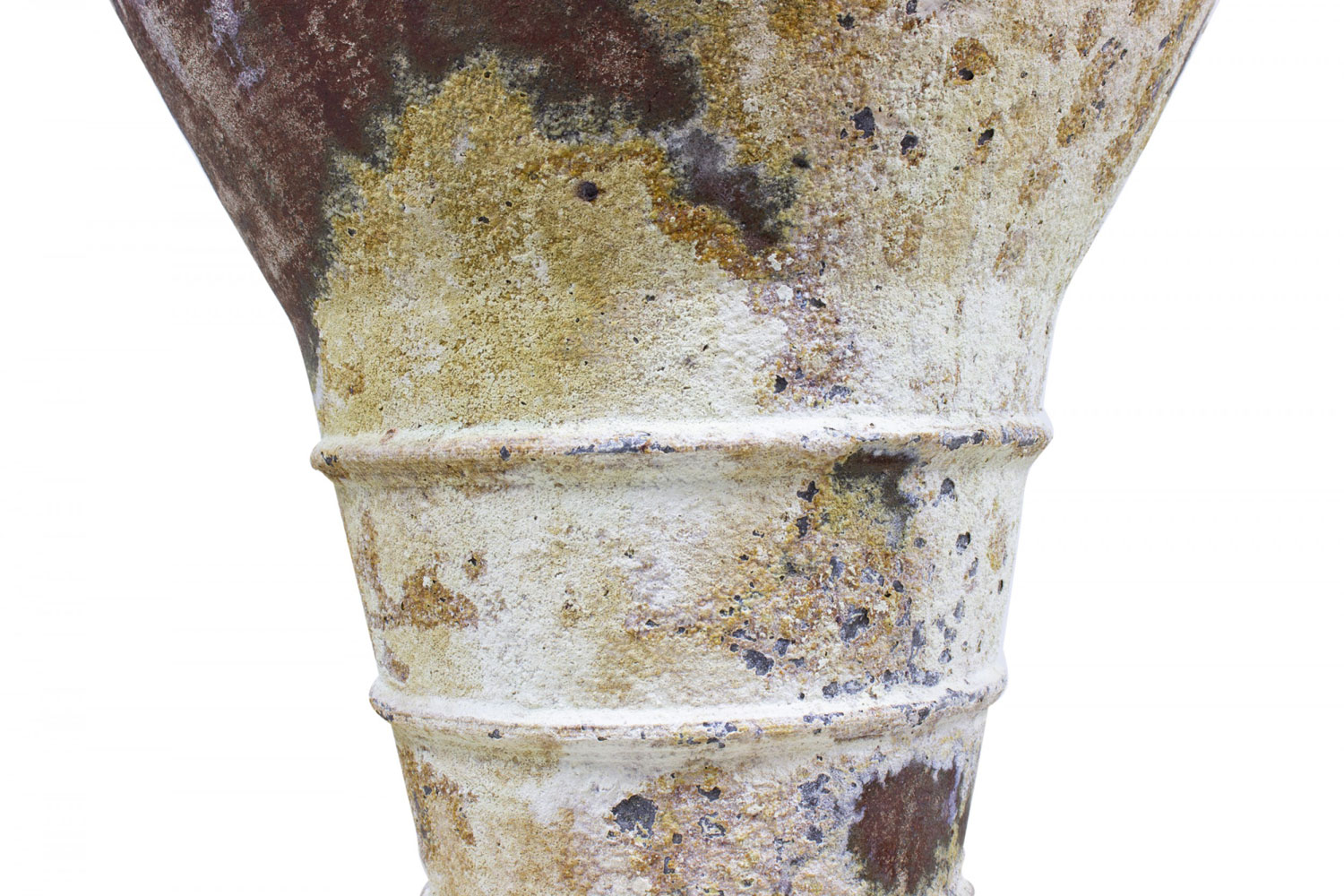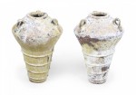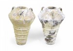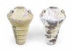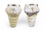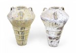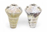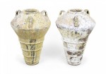 Pair of Outdoor Cast Iron Urns with Beige and Brown Patina