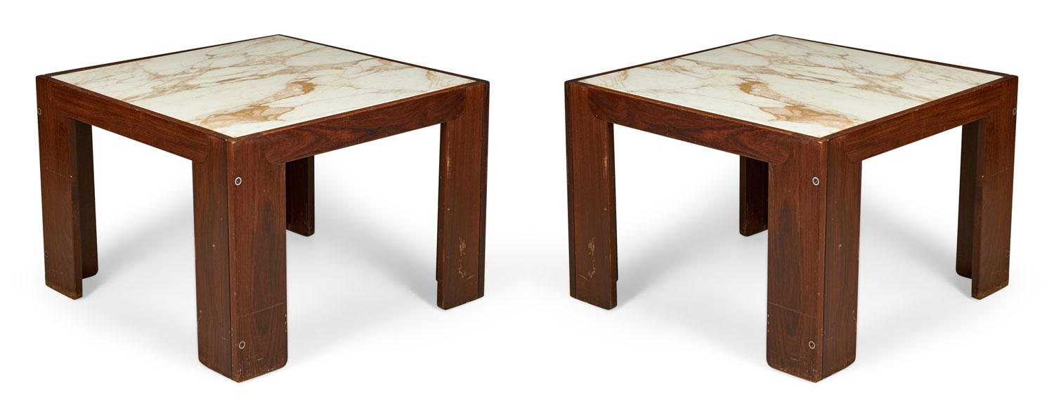 Pair of Tobia and Afra Scarpa for Cassina Italian 'Bastiano' Marble and Rosewood Lamp / End Tables