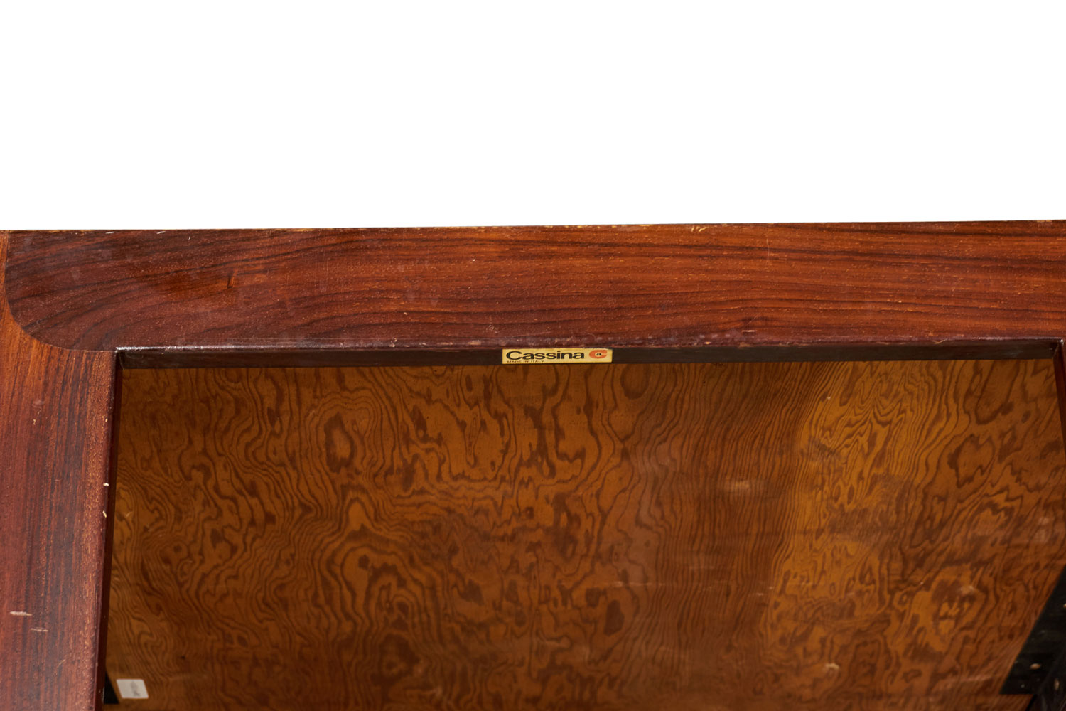 PAIR of Italian Mid-Century 'Bastiano' square lamp / end tables with calacatta gold carrara marble tops supported by rosewood frames with corner legs. (PRICED AS PAIR) (TOBIA AND AFRA SCARPA FOR CASSINA INTERNATIONAL, model no. 771).