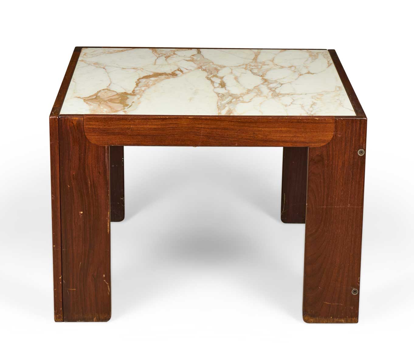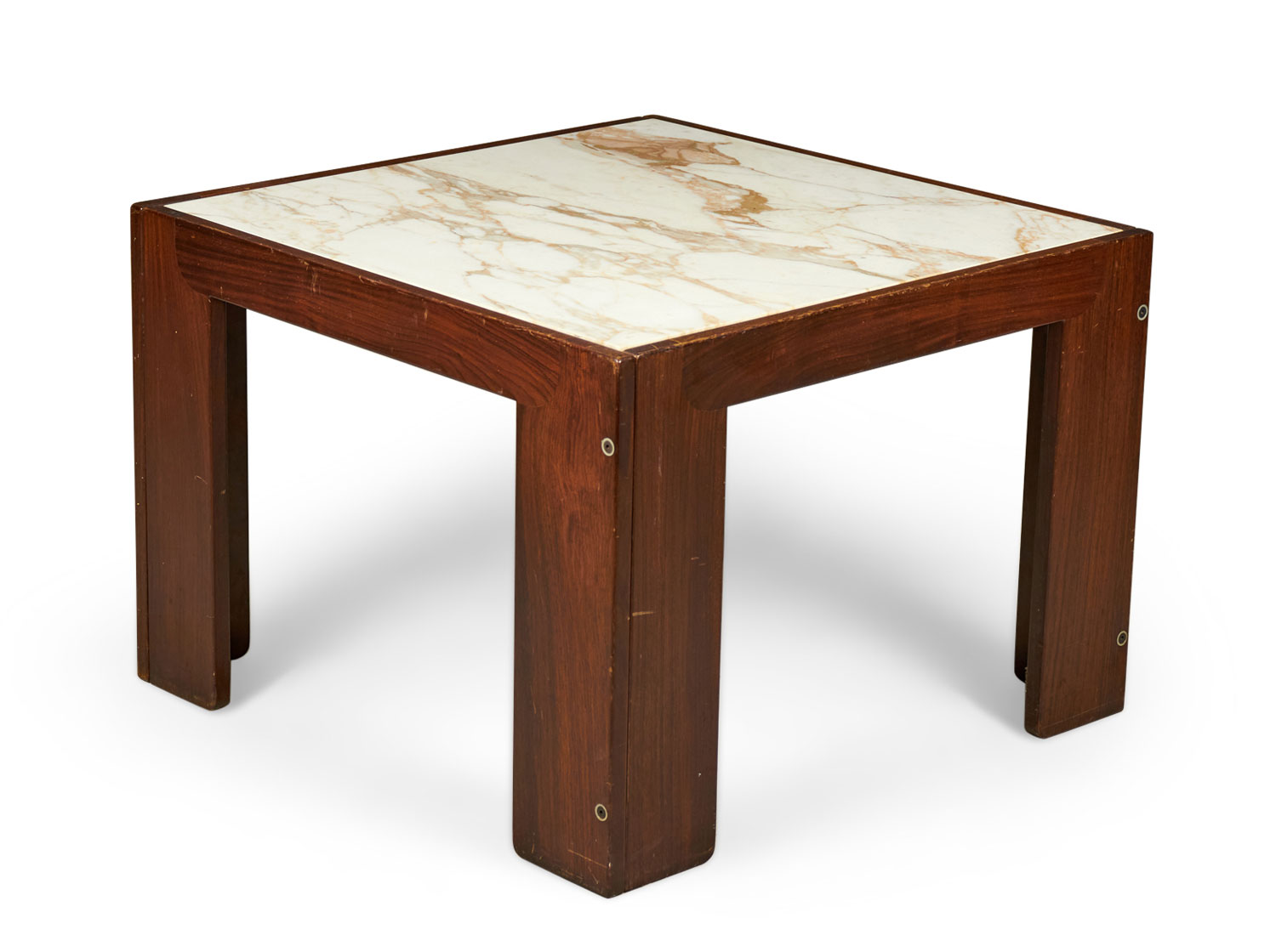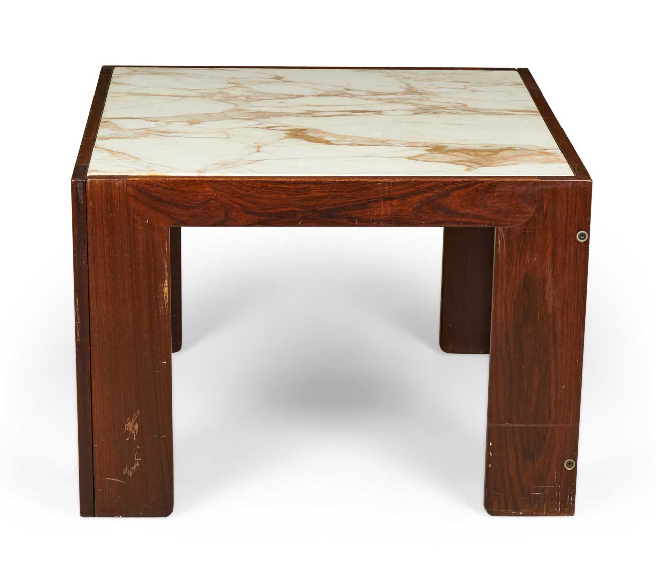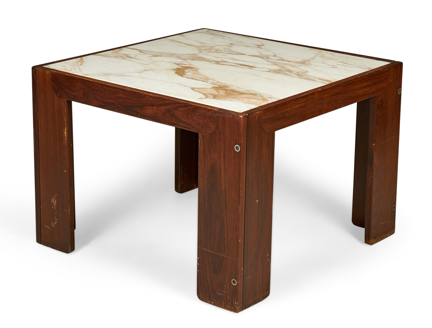 Style: Mid-Century Materials & Techniques: Marble, rosewood, wood Category: Tables Good; Wear consistent with age and use