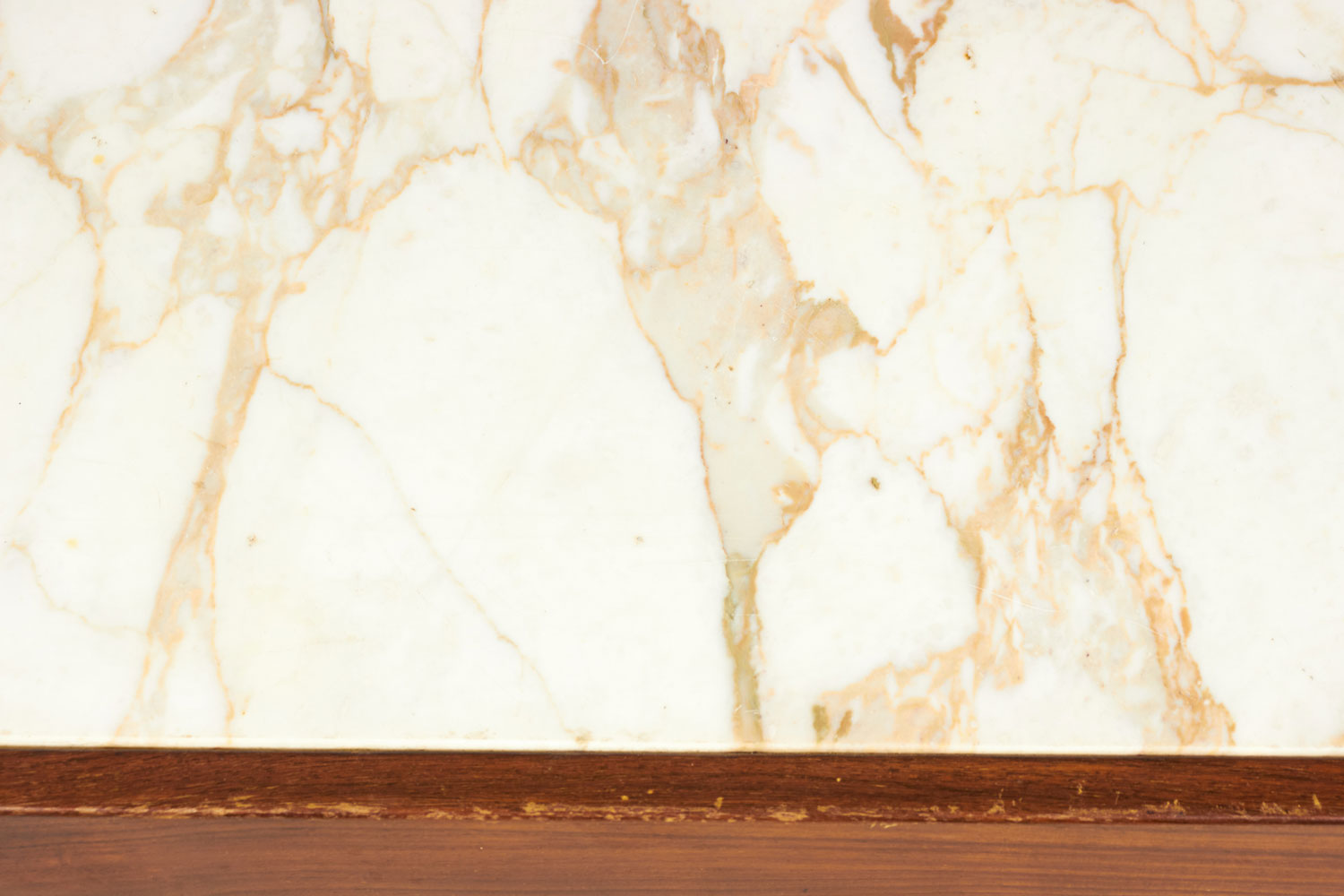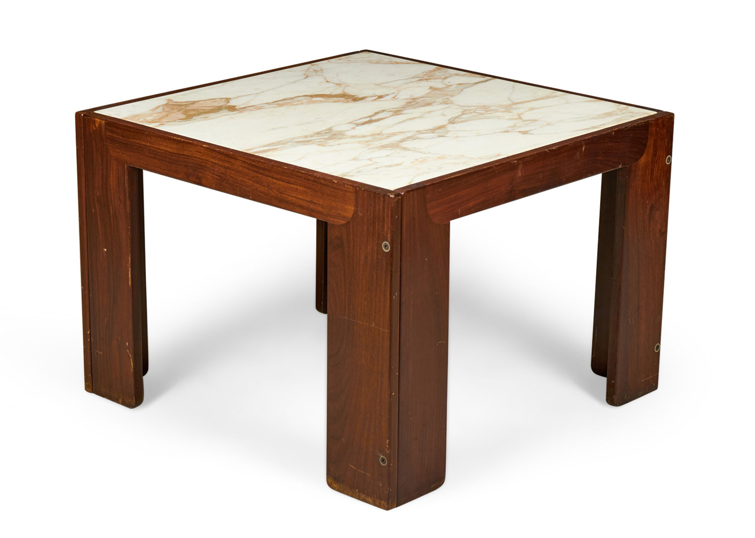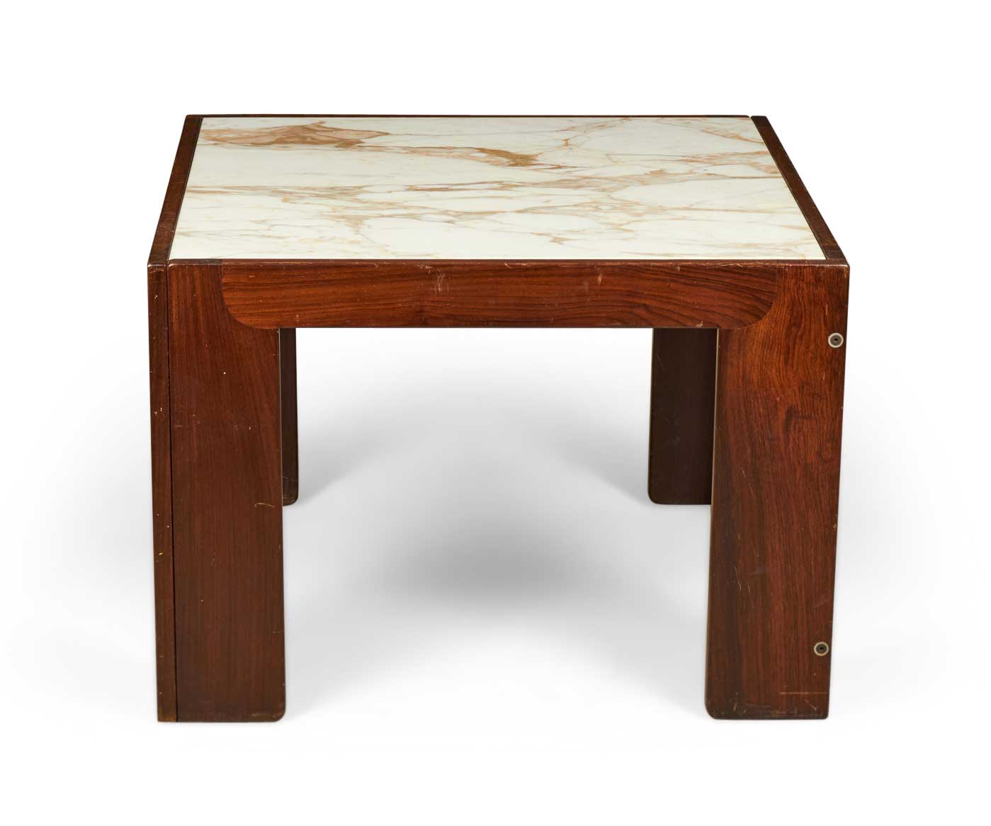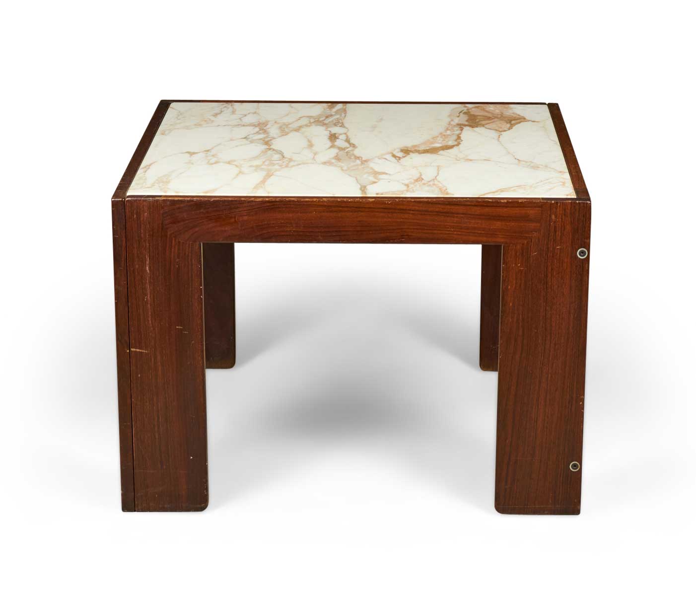 Style: Mid-Century Materials & Techniques: Marble, rosewood, wood Category: Tables Good; Wear consistent with age and use