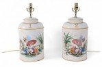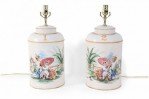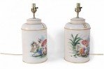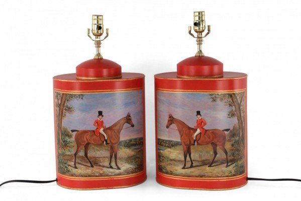Pair of Vintage Chinese Hand Painted Tole Genre Scene Table Lamps