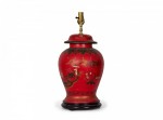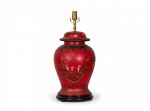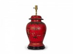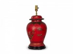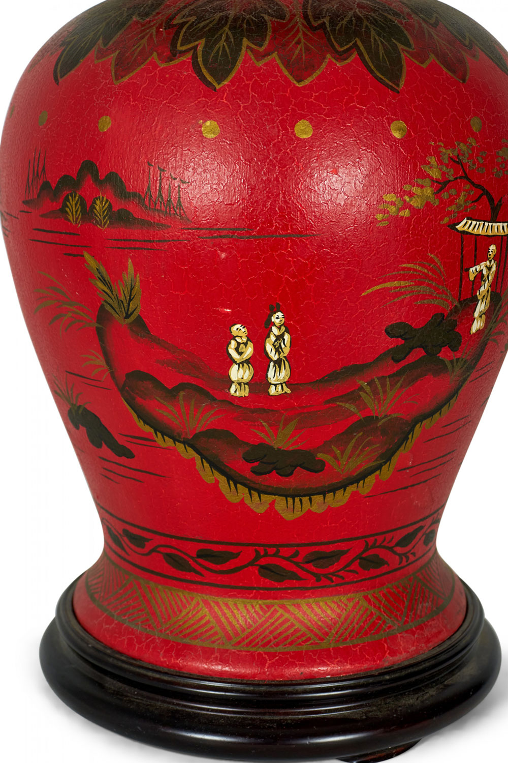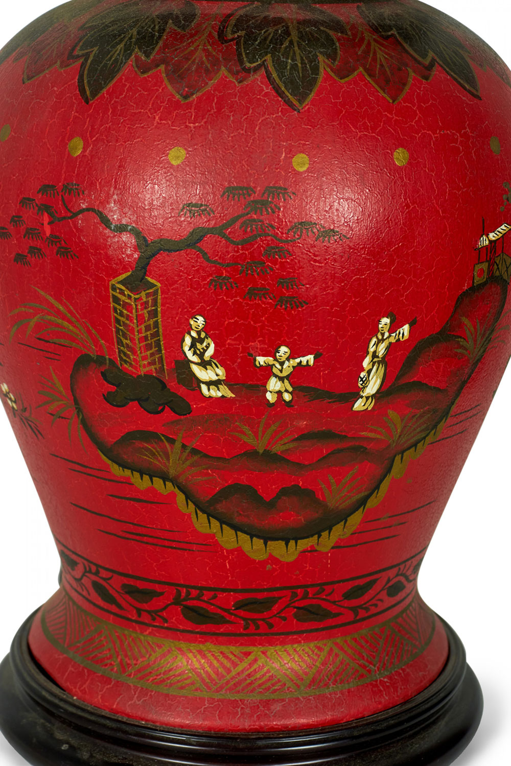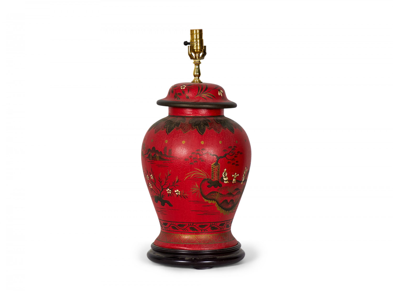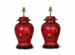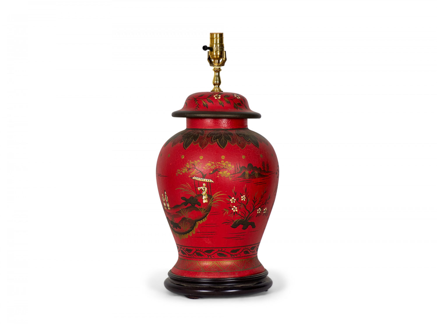 Pair of Vintage Chinese Red and Gold Hand-Painted Tole Ginger Jar Table Lamps