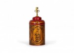 Pair of Vintage English Chinoiserie Red and Gold Hand-Painted Tole Tea Caddy Table Lamps