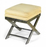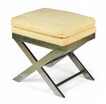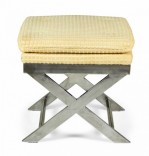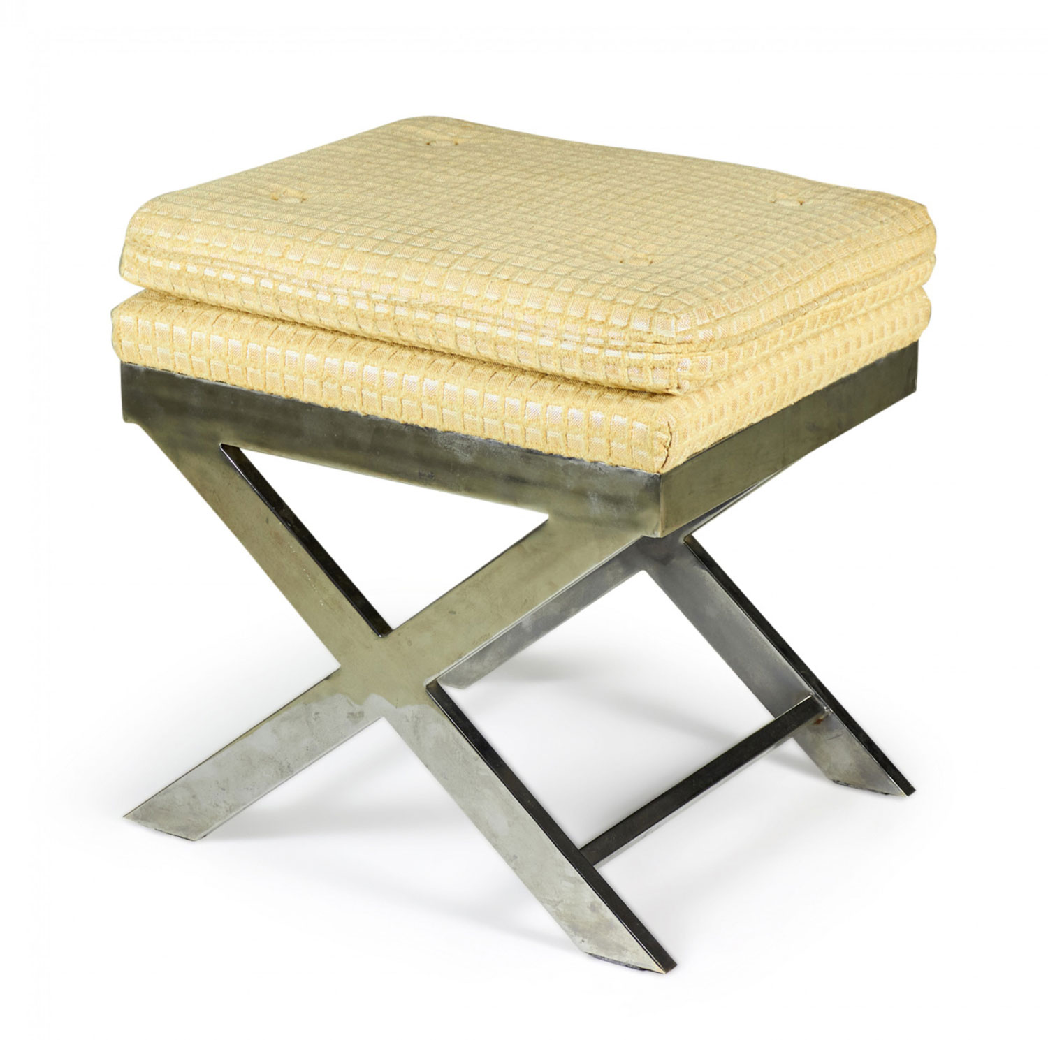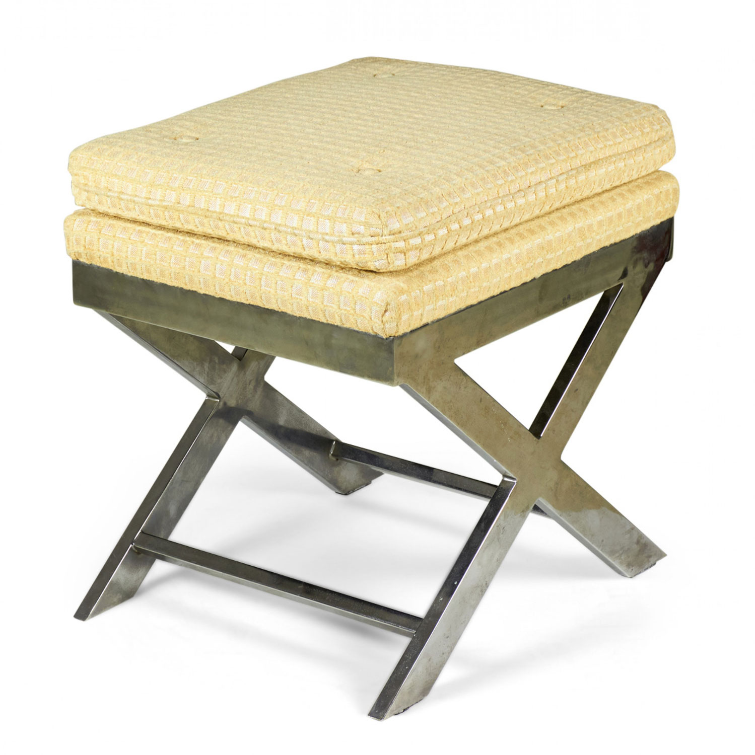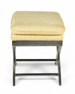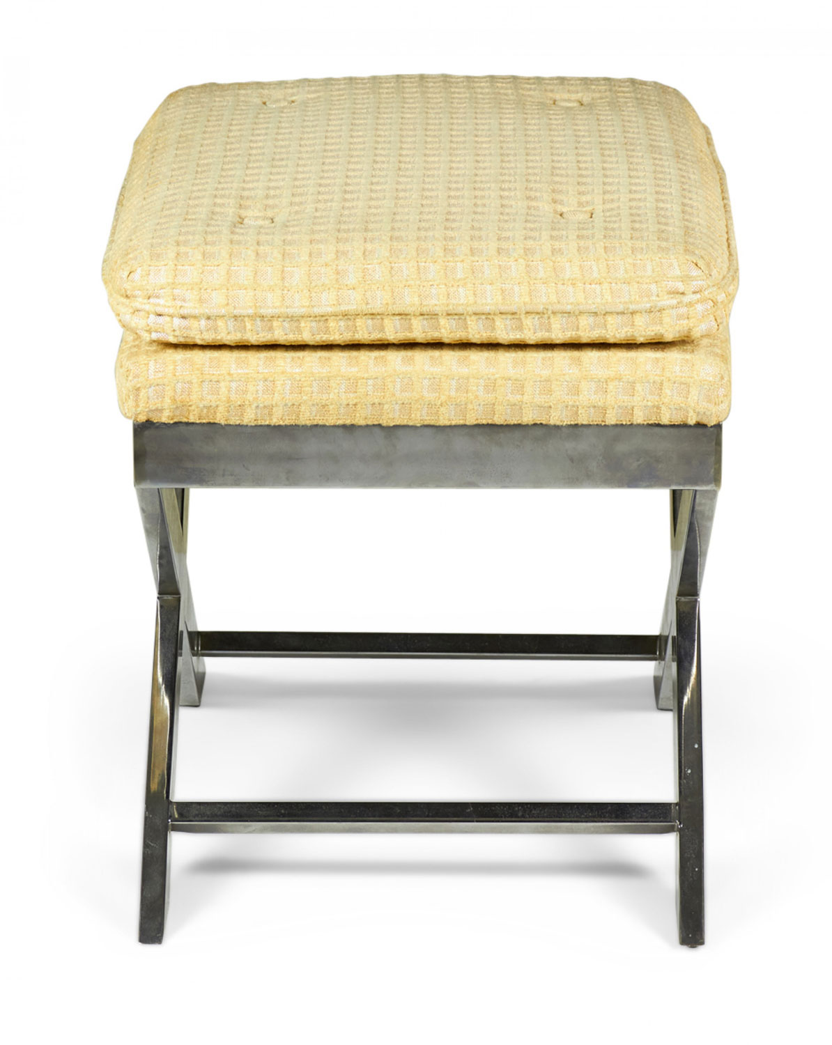 PAIR of Italian Mid-Century (circa 1970) upholstered stools / benches with beige and yellow waffle-patterned upholstered seats atop x-shaped chrome bases. (WEIMAN-WARREN) (PRICED AS PAIR)