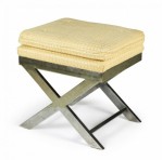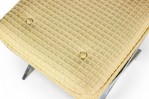 PAIR of Italian Mid-Century (circa 1970) upholstered stools / benches with beige and yellow waffle-patterned upholstered seats atop x-shaped chrome bases. (WEIMAN-WARREN) (PRICED AS PAIR).