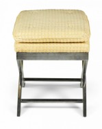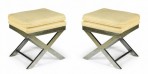 Pair of Weiman-Warren Italian Mid-Century X-Base Yellow and Beige Upholstered Stools