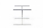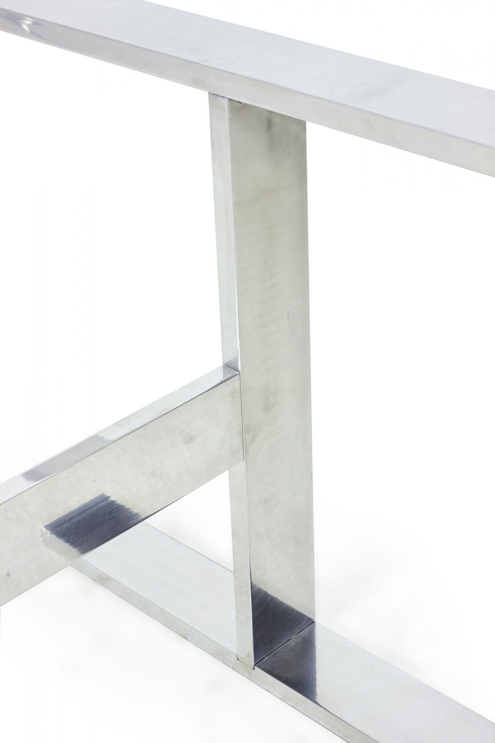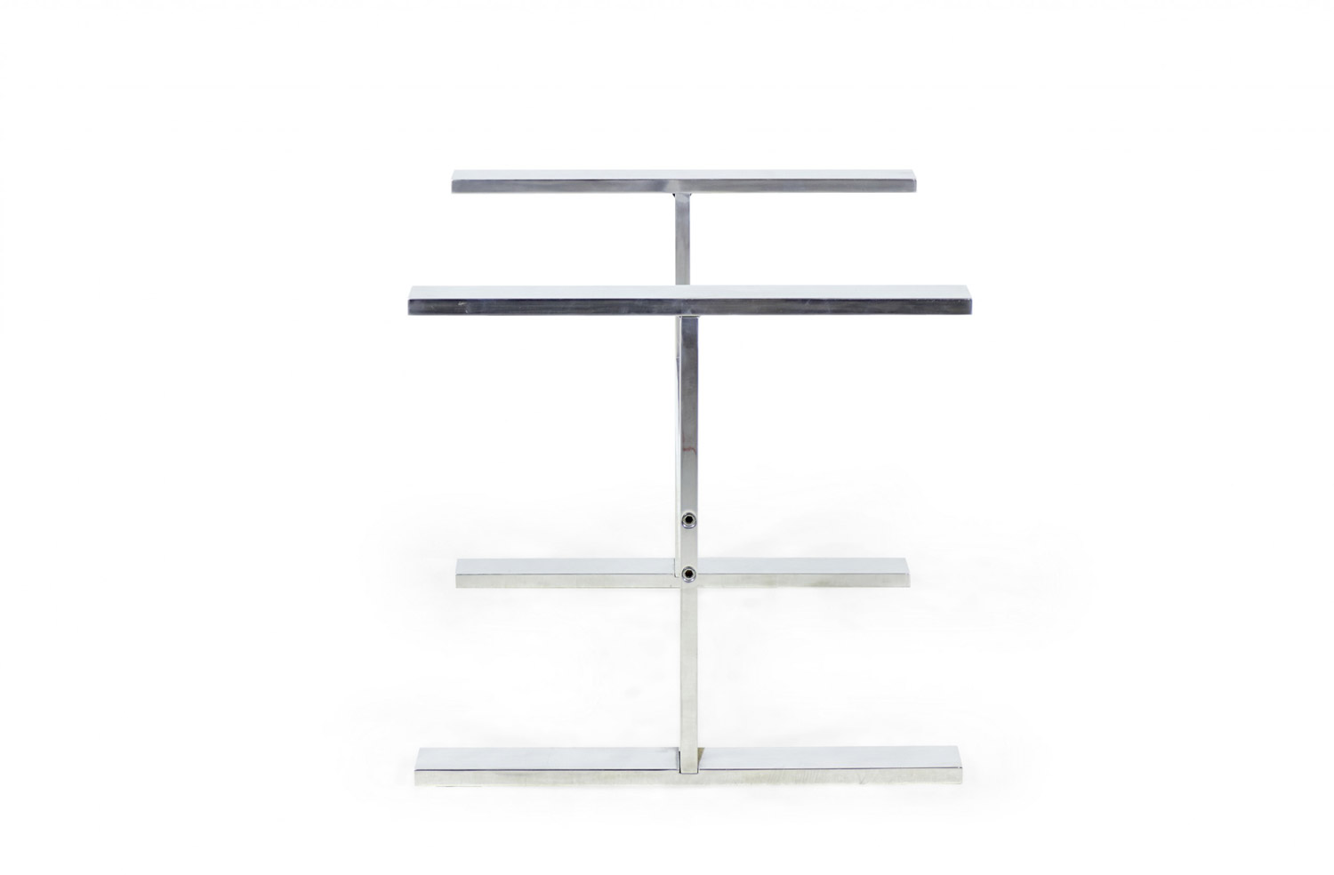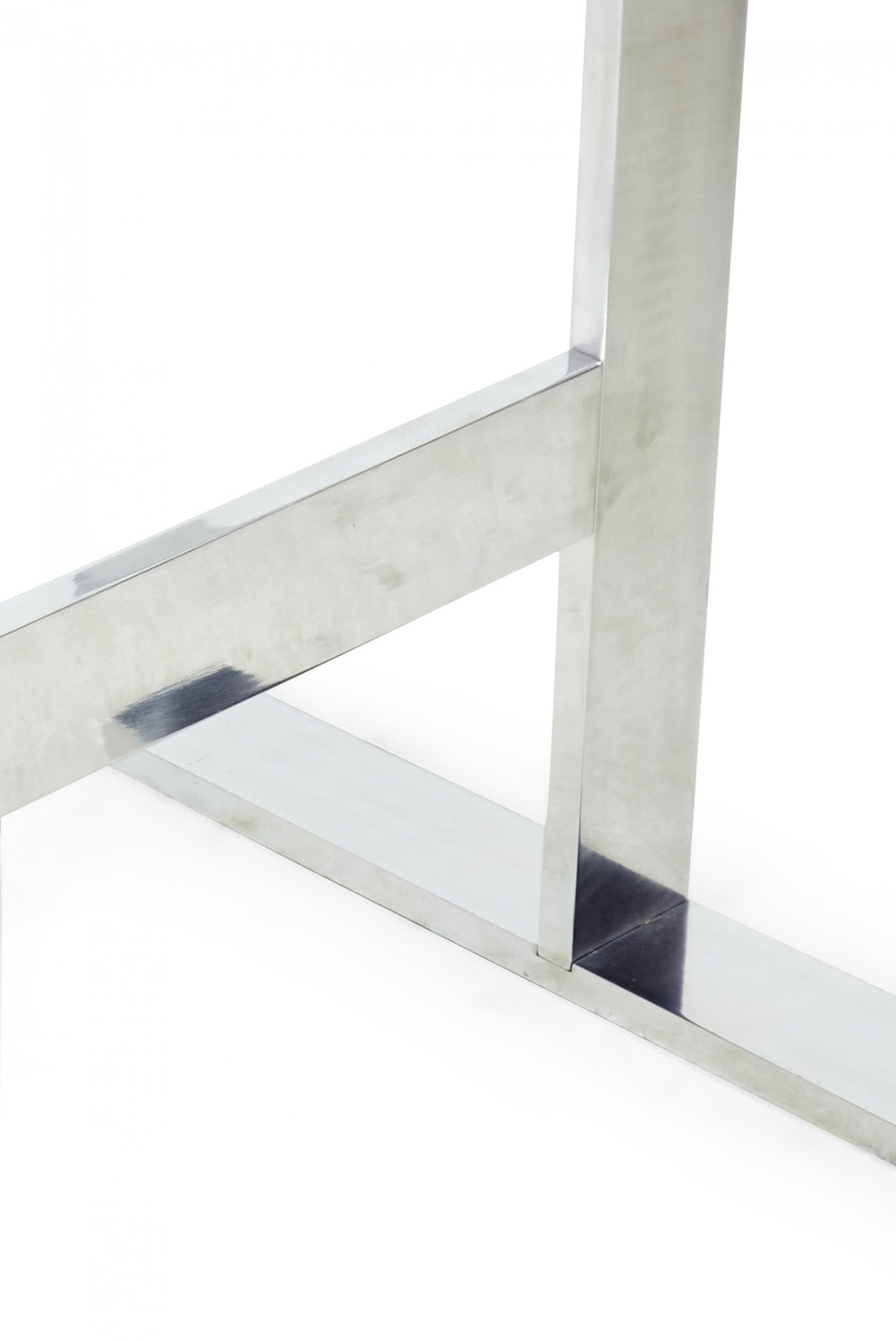 Style: Mid-Century Materials & Techniques: Chrome, metal Category: Tables, Office/Library Condition: Frame only, missing glass top.