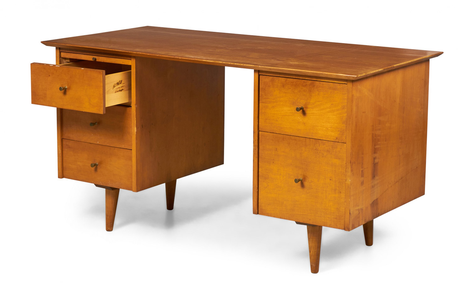 Paul McCobb for Winchendon American Mid-Century Maple Double Pedestal Desk