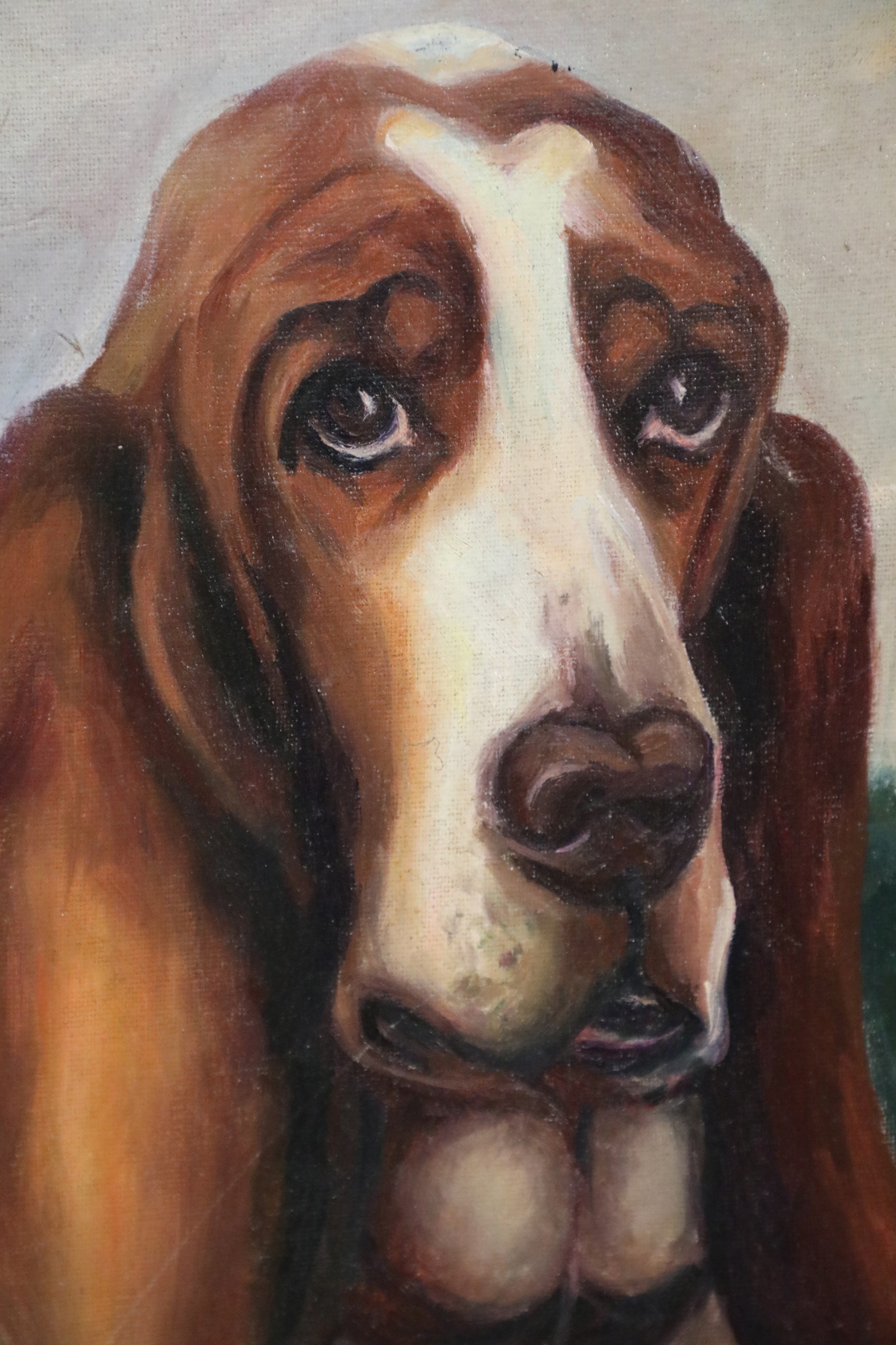 Portrait of a Basset Hound in Nature Painting on Canvas