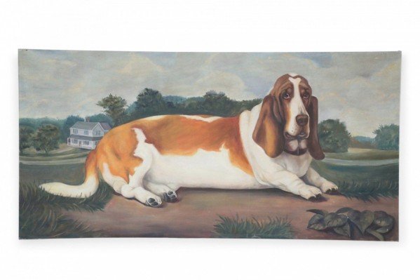 Portrait of a Basset Hound in Nature Painting on Canvas