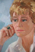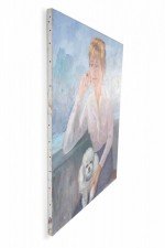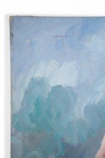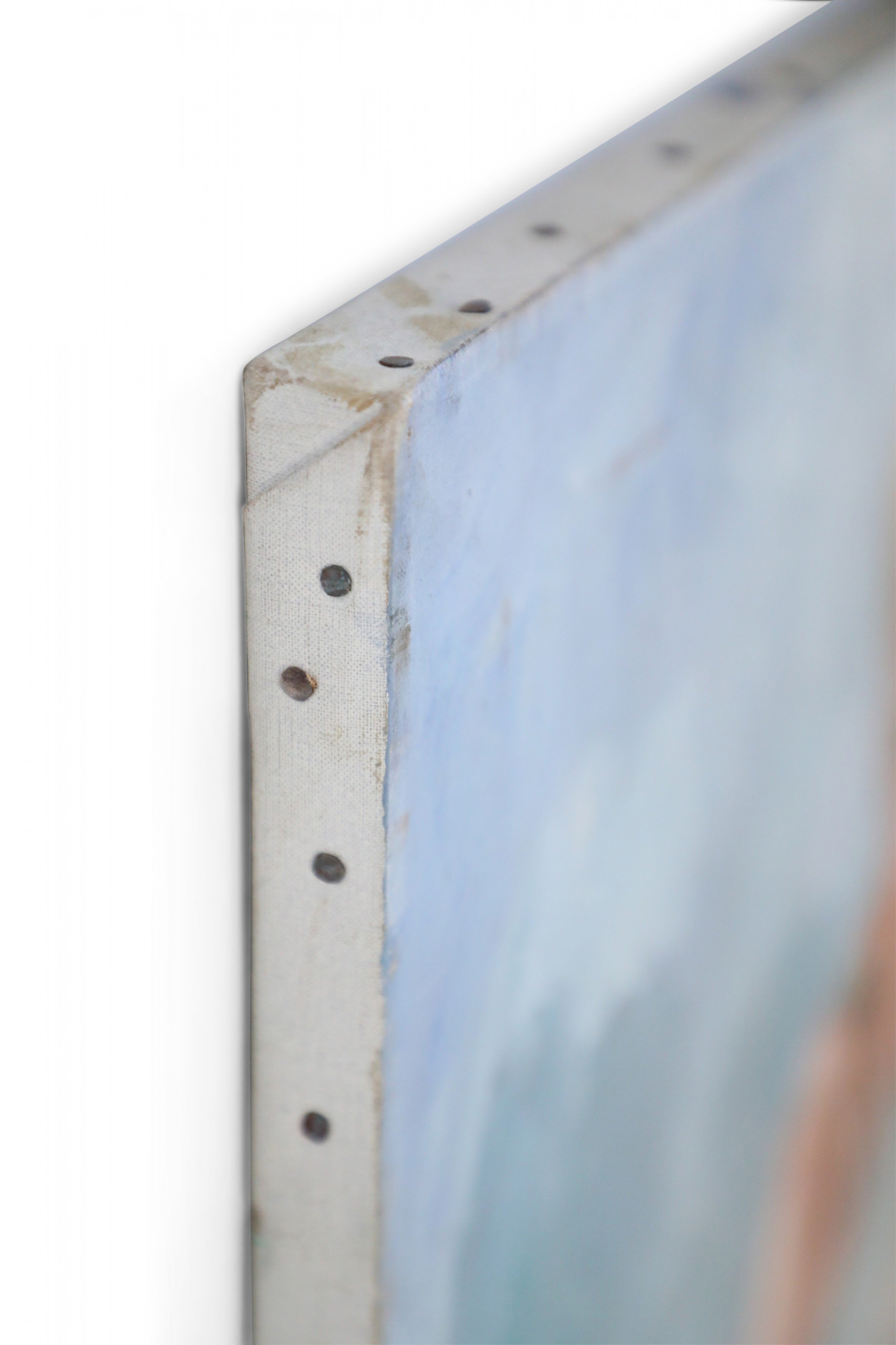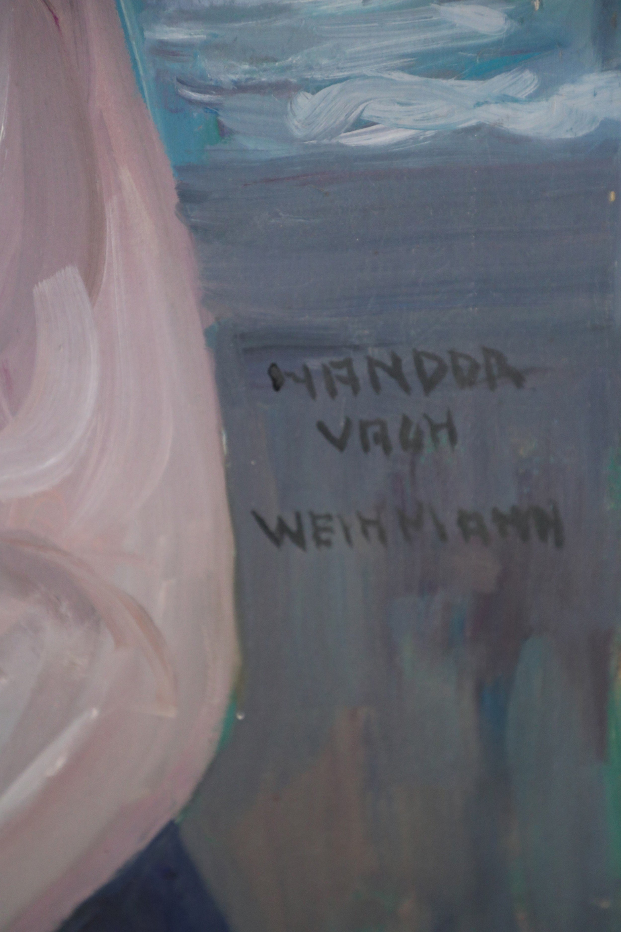 Style: Mid-Century Materials & Techniques: Canvas Category: Cleared Art Condition: Paint has worn off along the bottom, large dent to the right of the woman's head.
