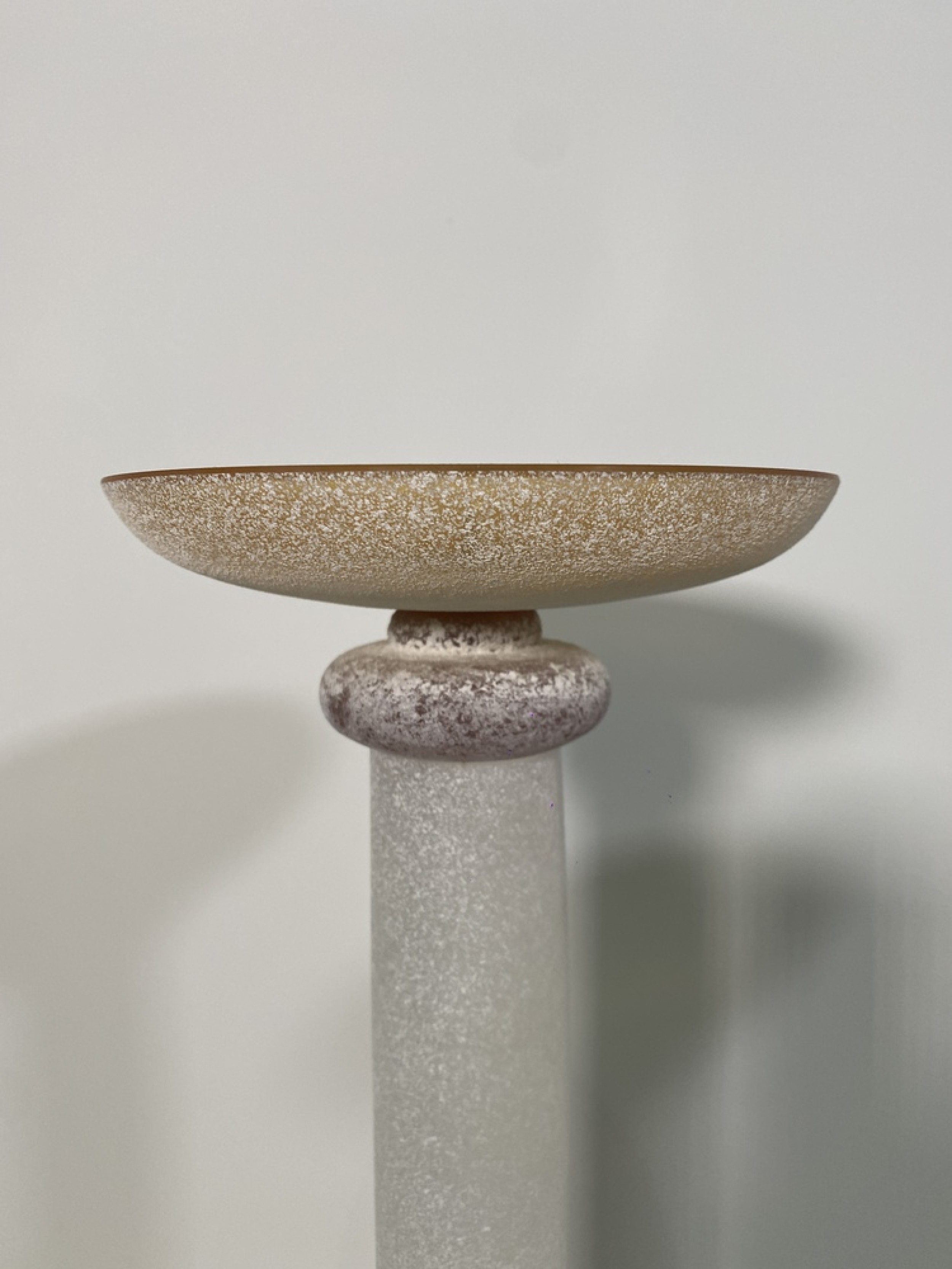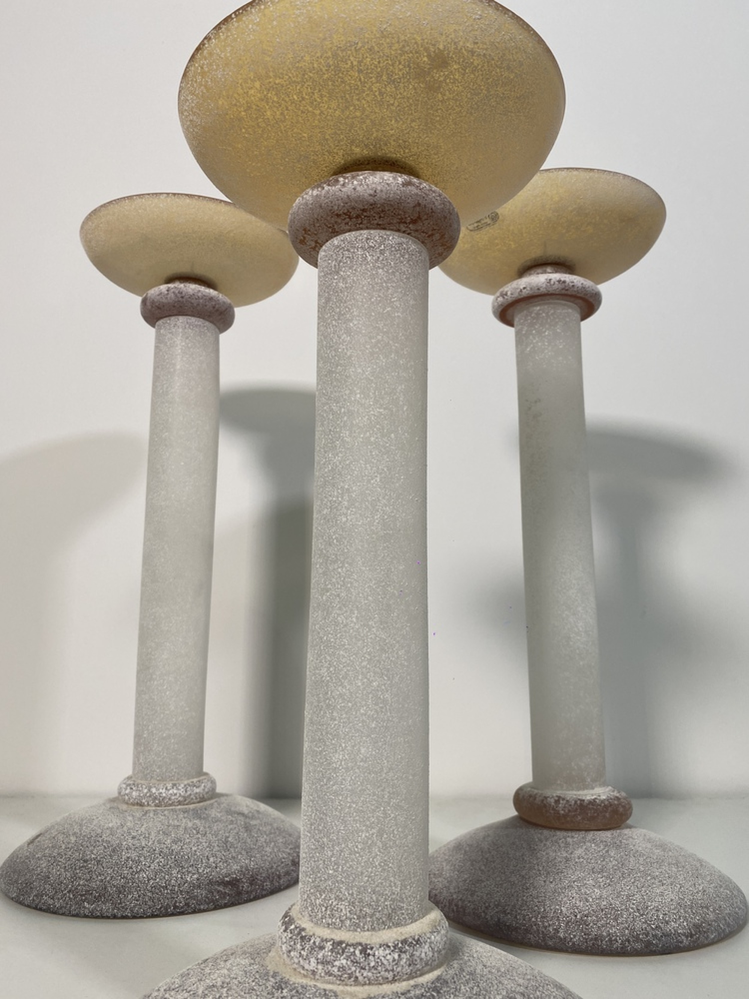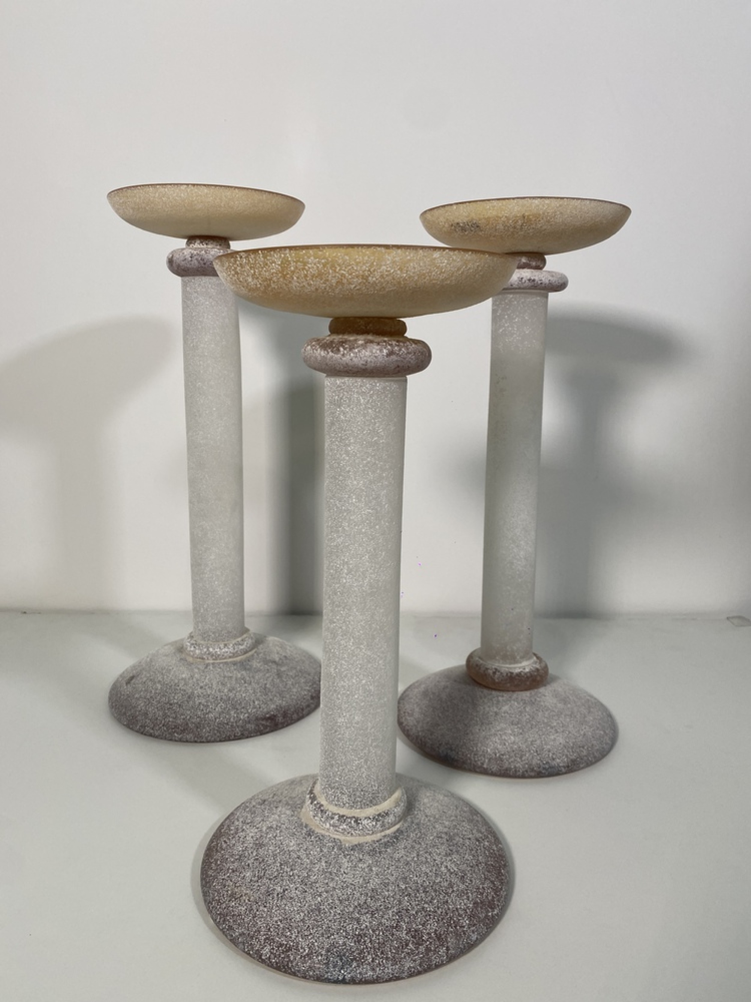 SET of 3 Karl Springer Midcentury Venetian Scavo Glass Candlesticks with Amber tops and White bases (SEGUSO)