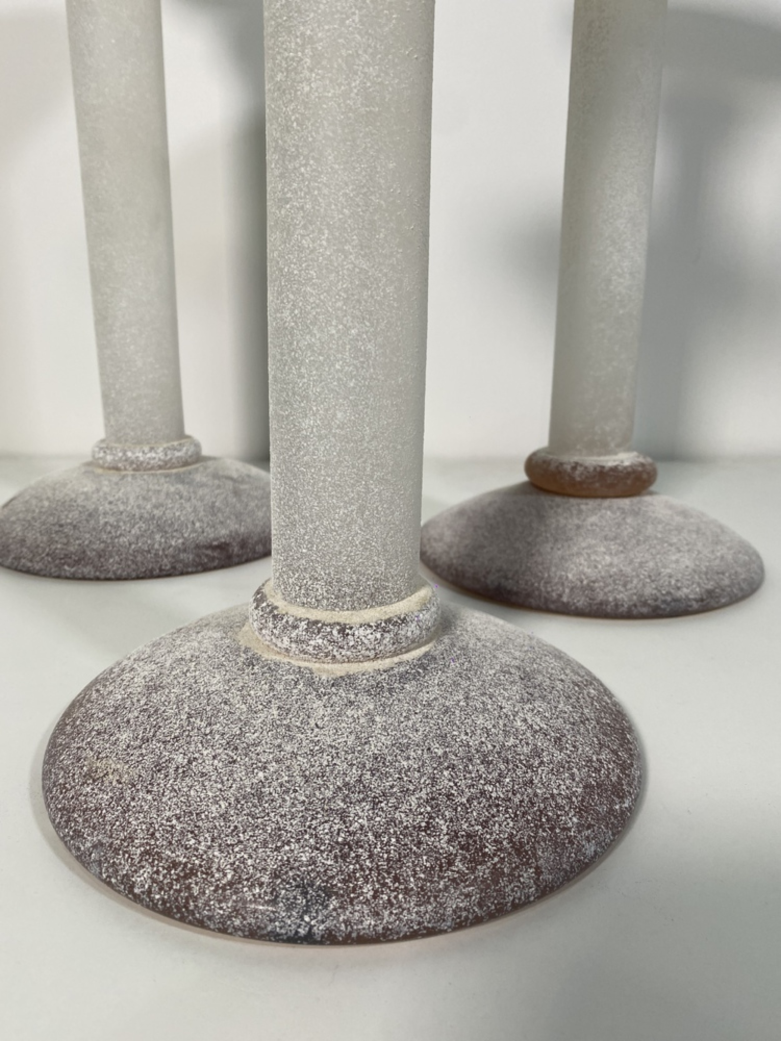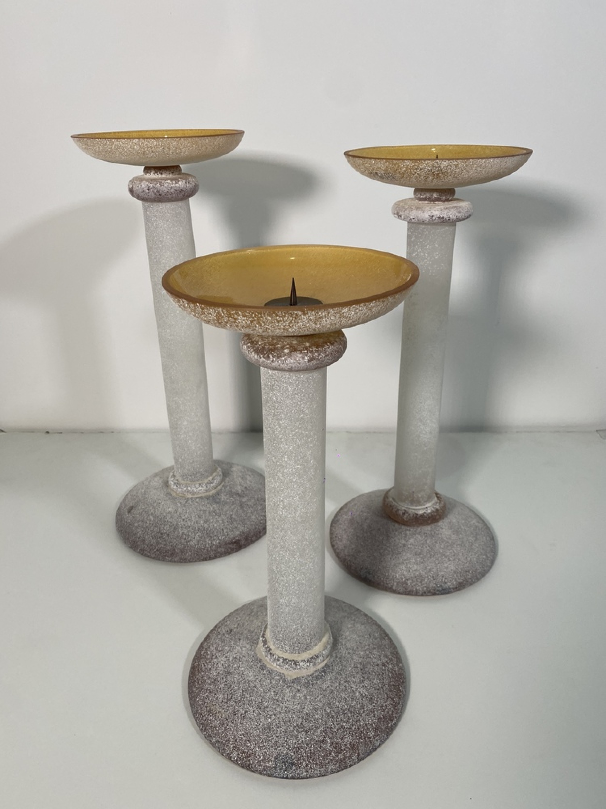 SET of 3 Karl Springer Midcentury Venetian Scavo Glass Candlesticks with Amber tops and White bases (SEGUSO).
