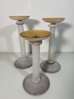 Set of 3 Karl Springer Midcentury Venetian Amber Scavo Glass Candlestick by Segu