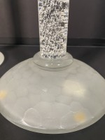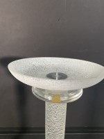 PAIR of Karl Springer Mid-Century Clear Scavo Glass Column Candlesticks with a frosted base (SEGUSO).