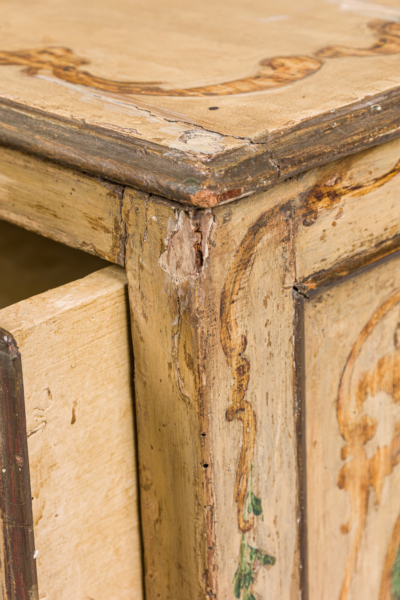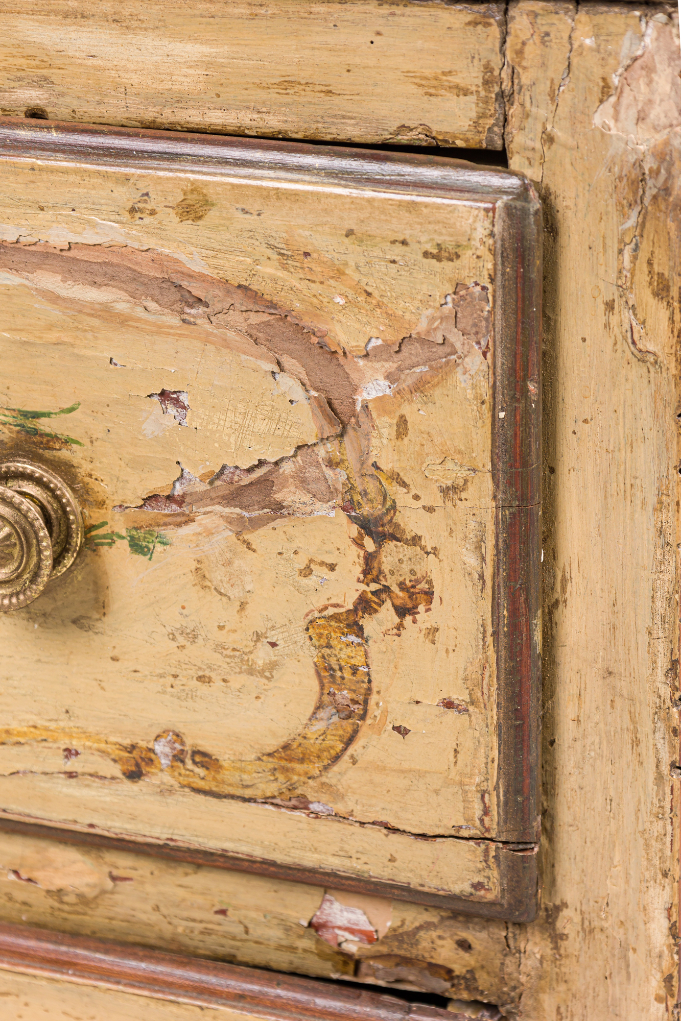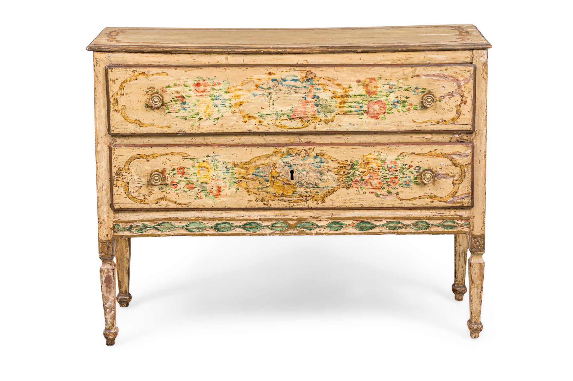 Italian Neo-classic Piedmontese Beige Painted and decorated Parcel-Gilt Two-Drawer Commode, (AS IS-distressed painted finish)