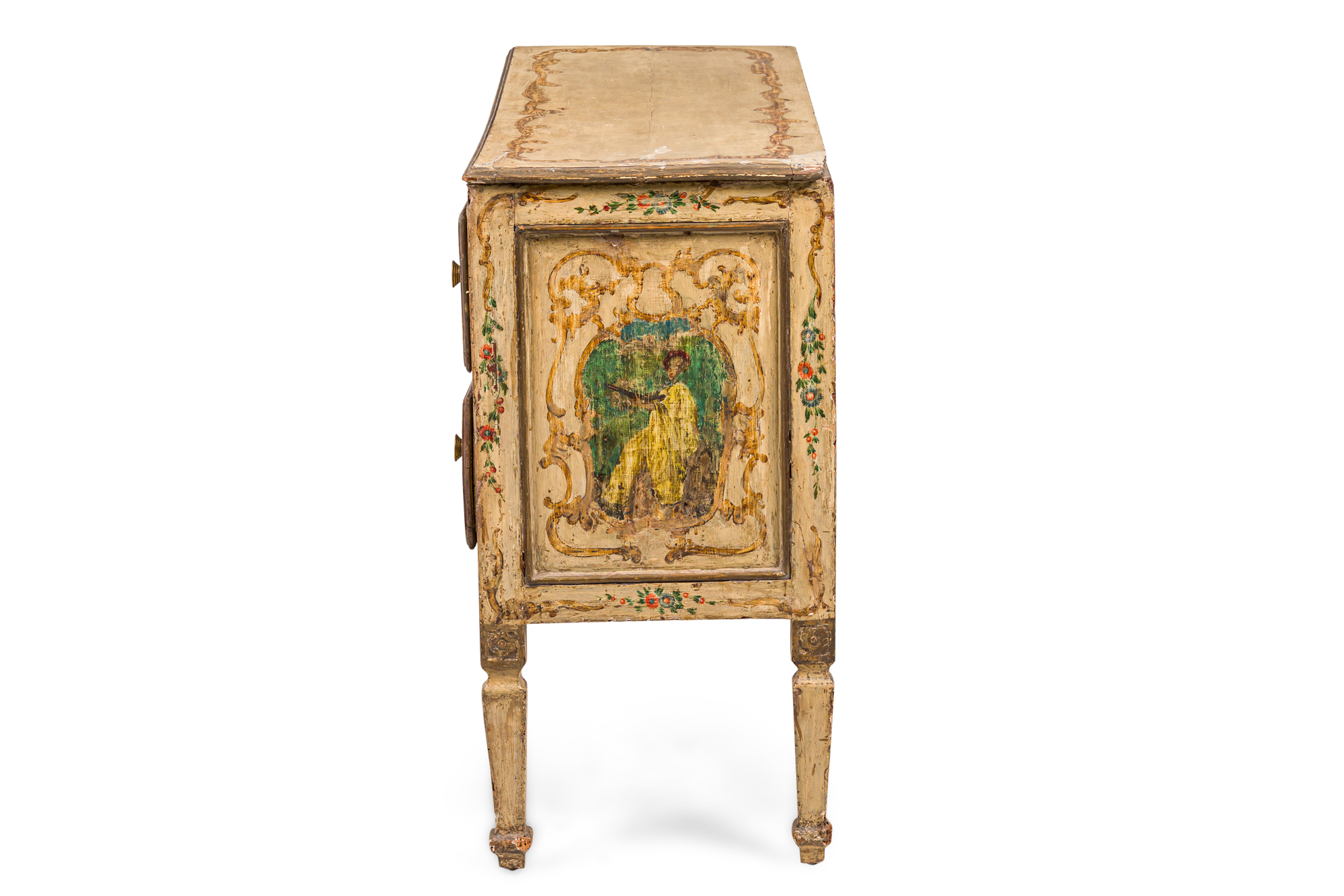 Italian Neo-classic Piedmontese Beige Painted and decorated Parcel-Gilt Two-Drawer Commode, (AS IS-distressed painted finish).