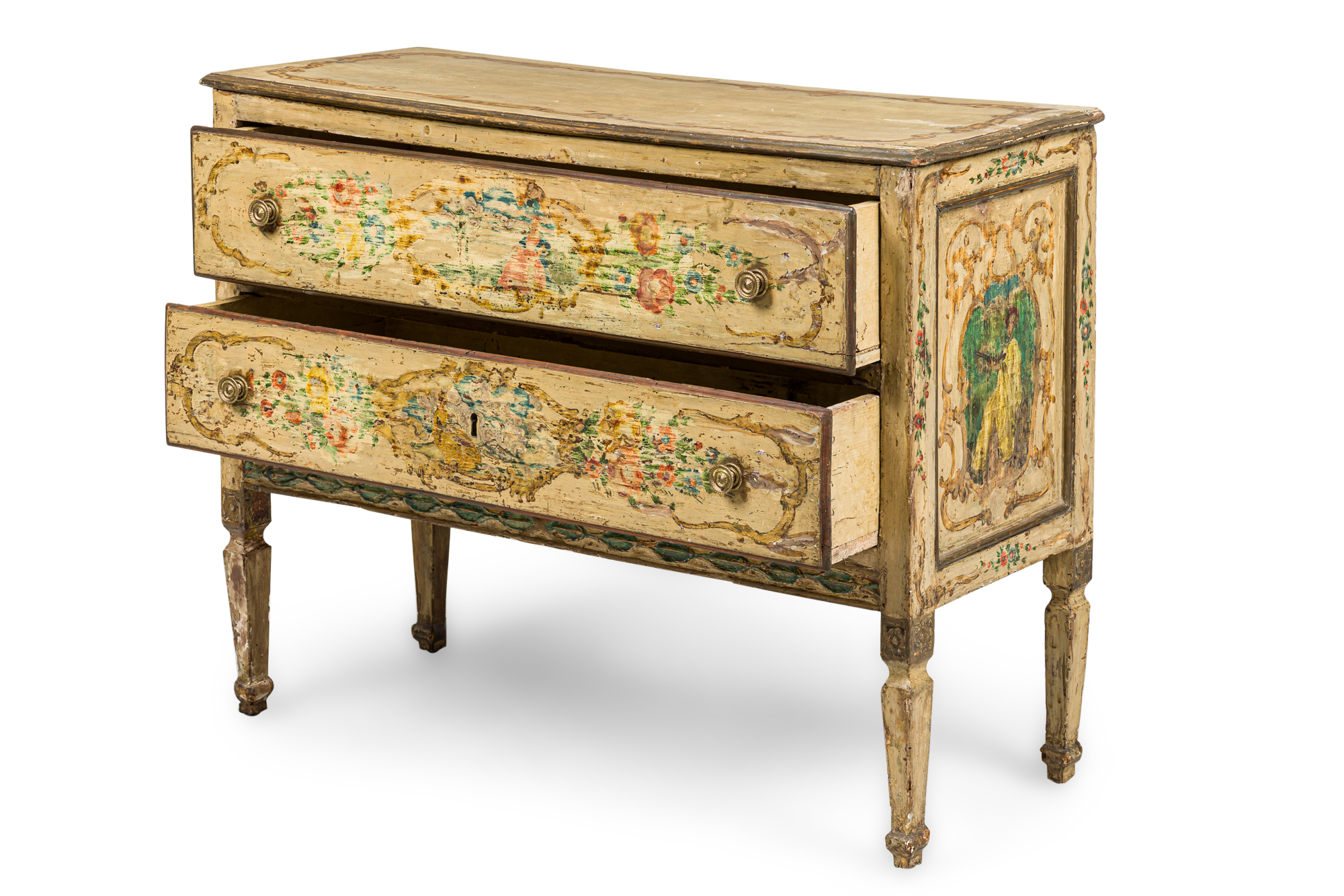 Italian Neoclassic Painted an Parcel-Gilt Two-Drawer Commode, Piedmontese