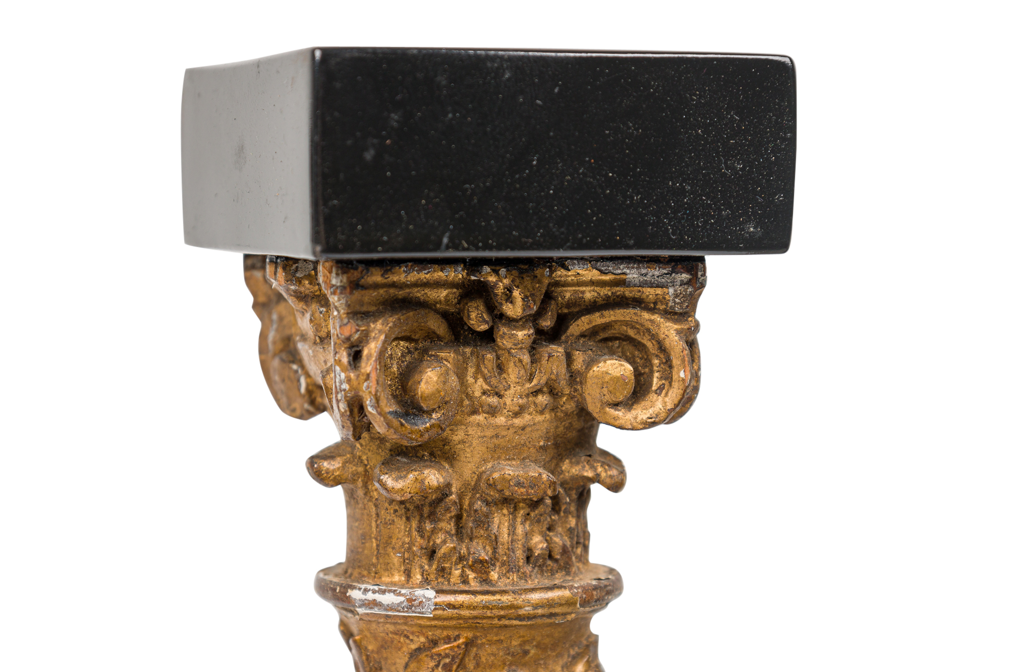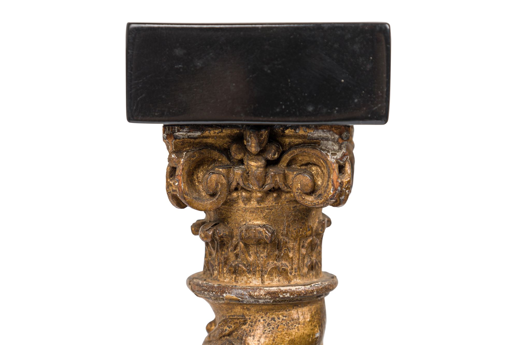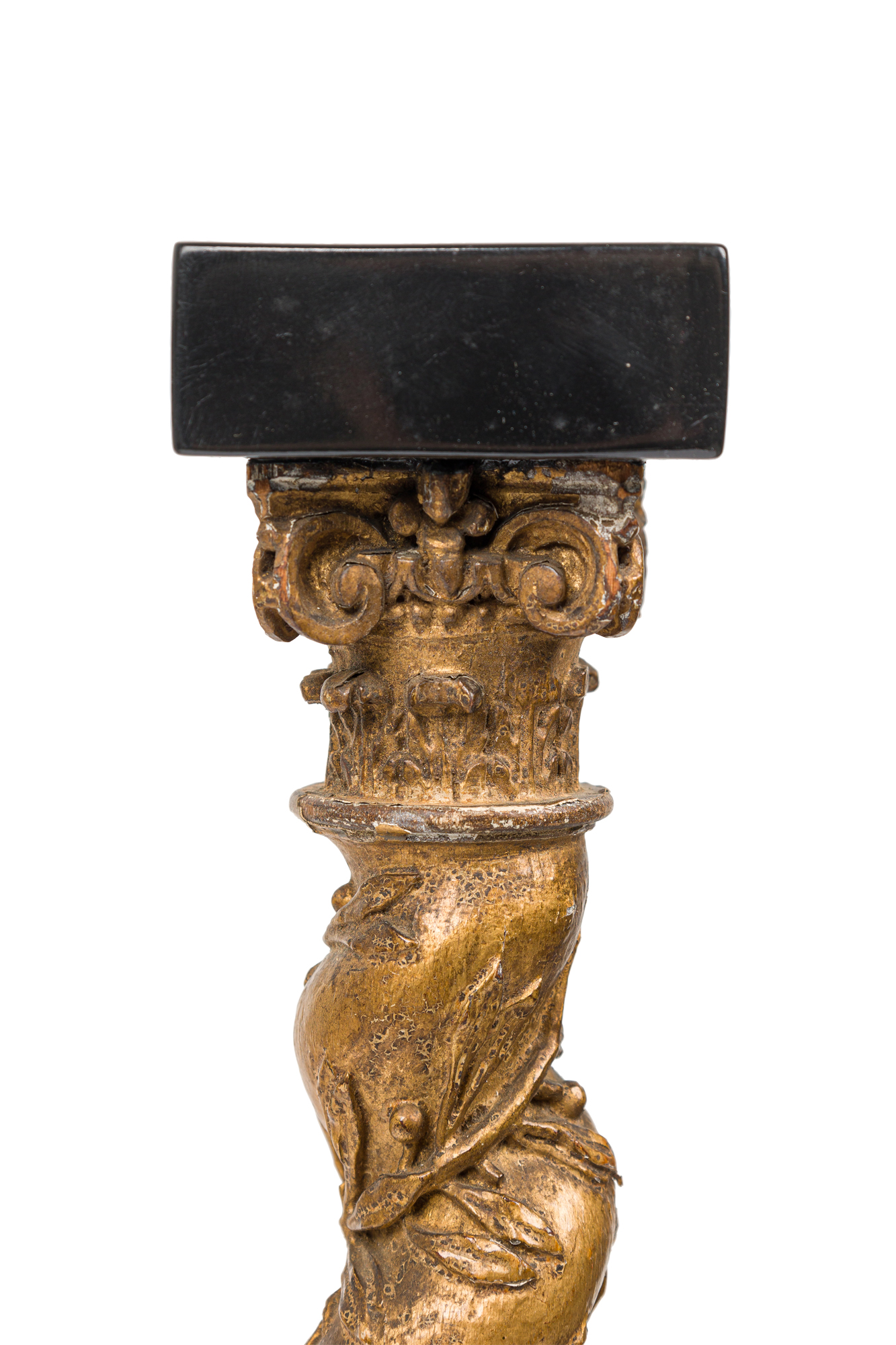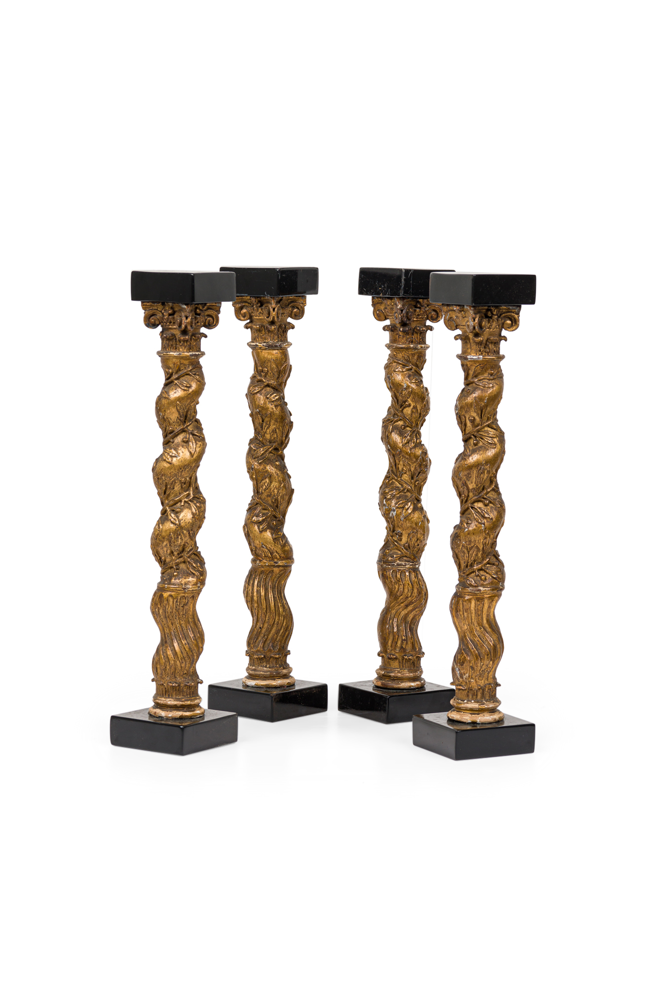 SET of Four miniature models of gilt Italian Baroque Solomonic Columns with swirl design having a black base and tops (Mid-18th Century) (PRICED AS SET).