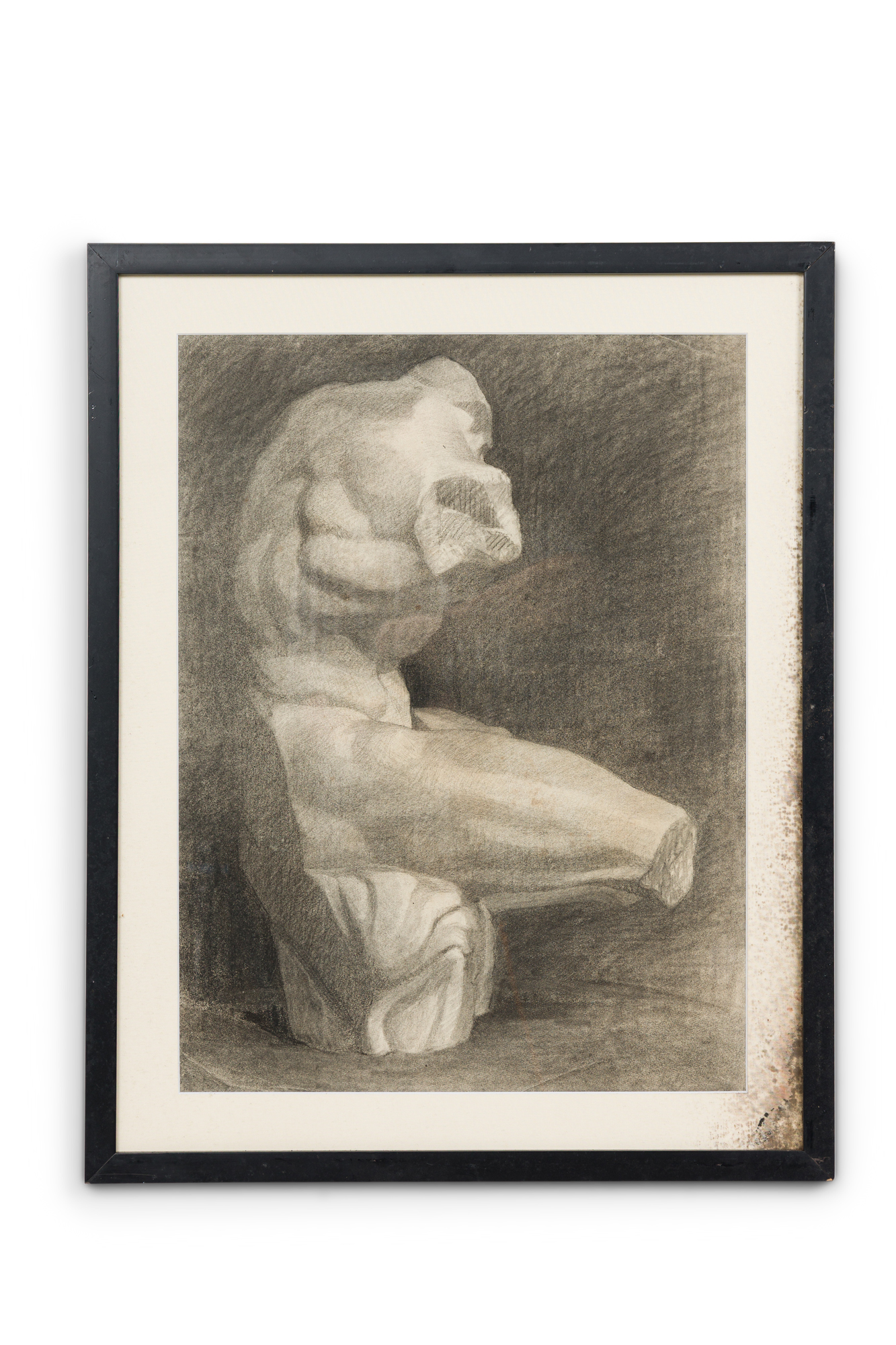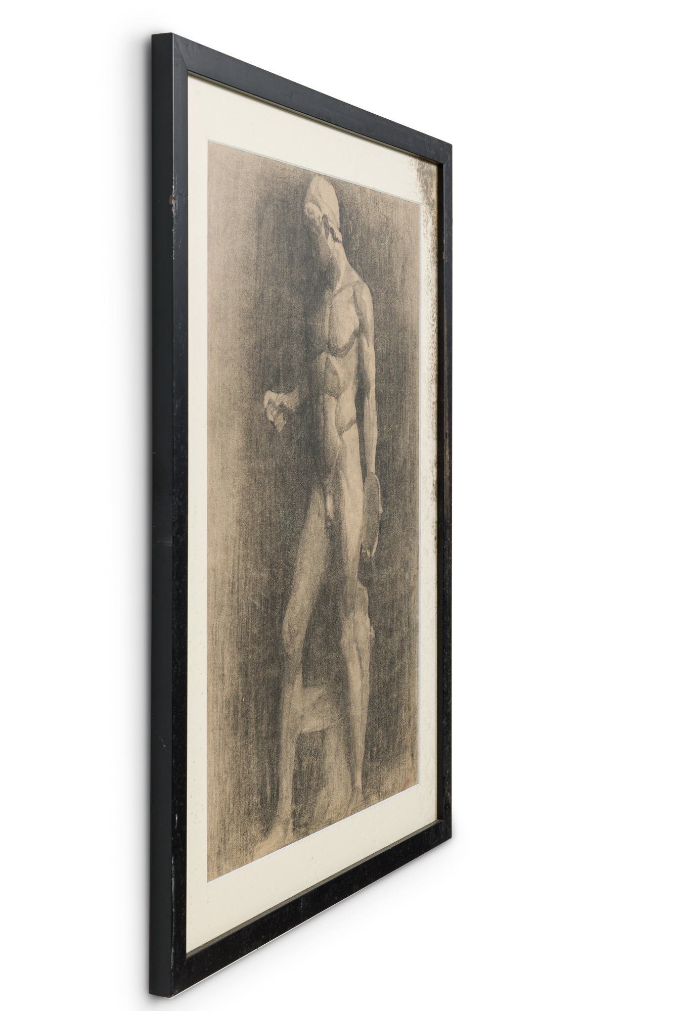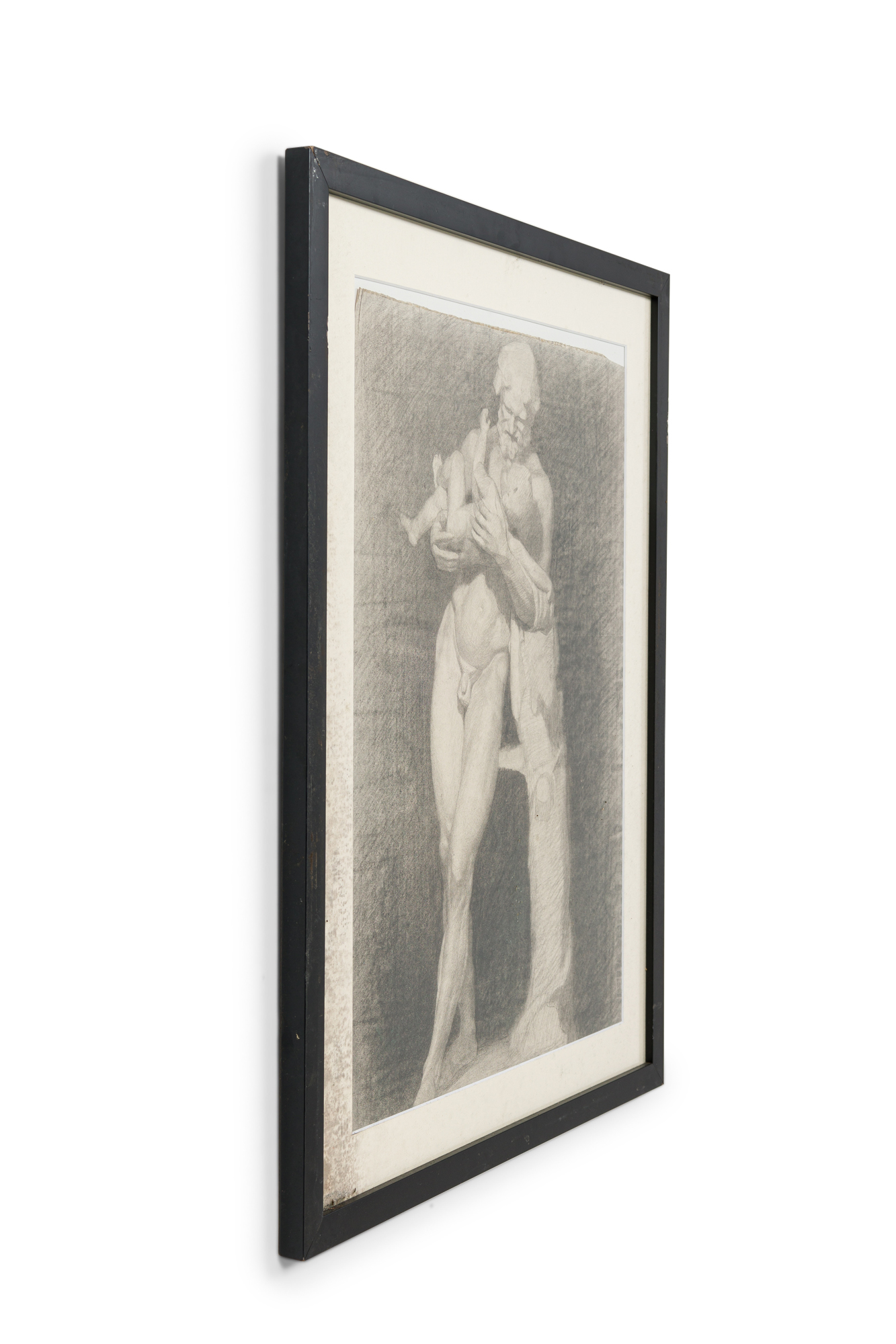 SET 4 Old Master matted charcoal drawings of scuptural figures in black frames (PRICED AS SET)