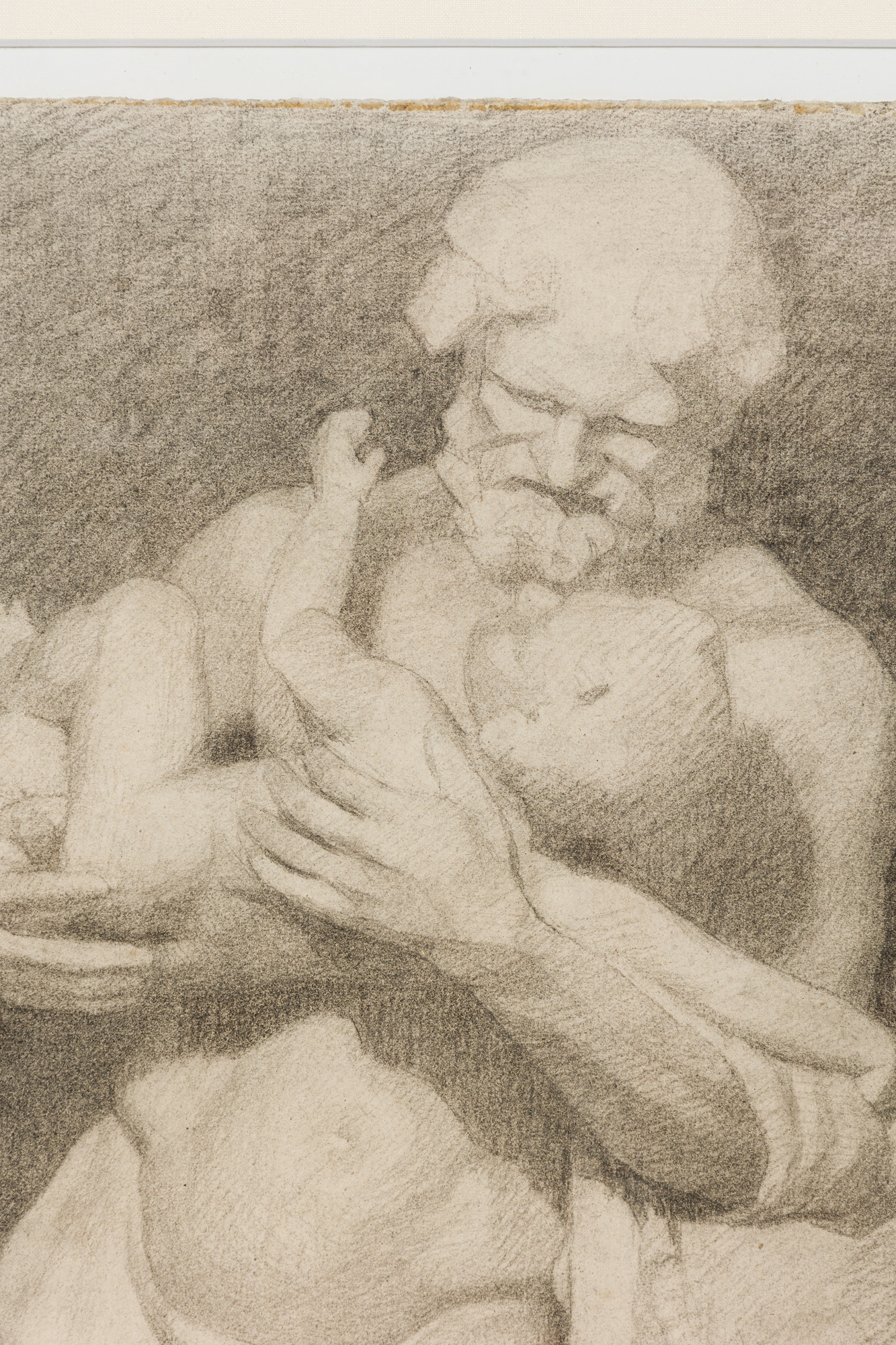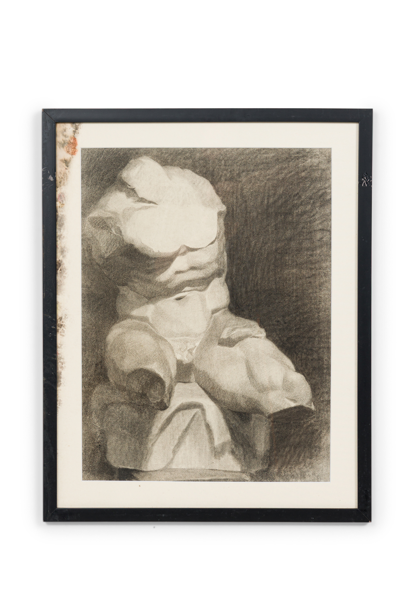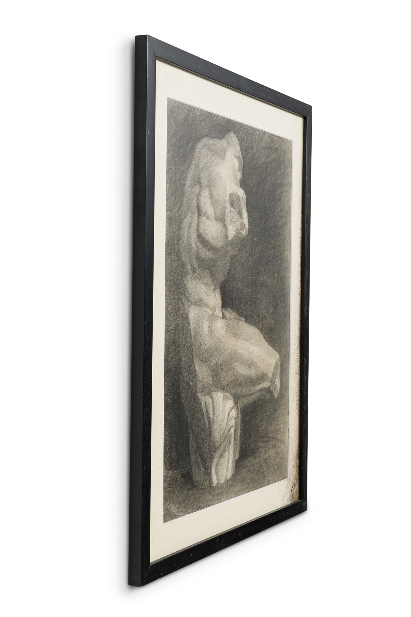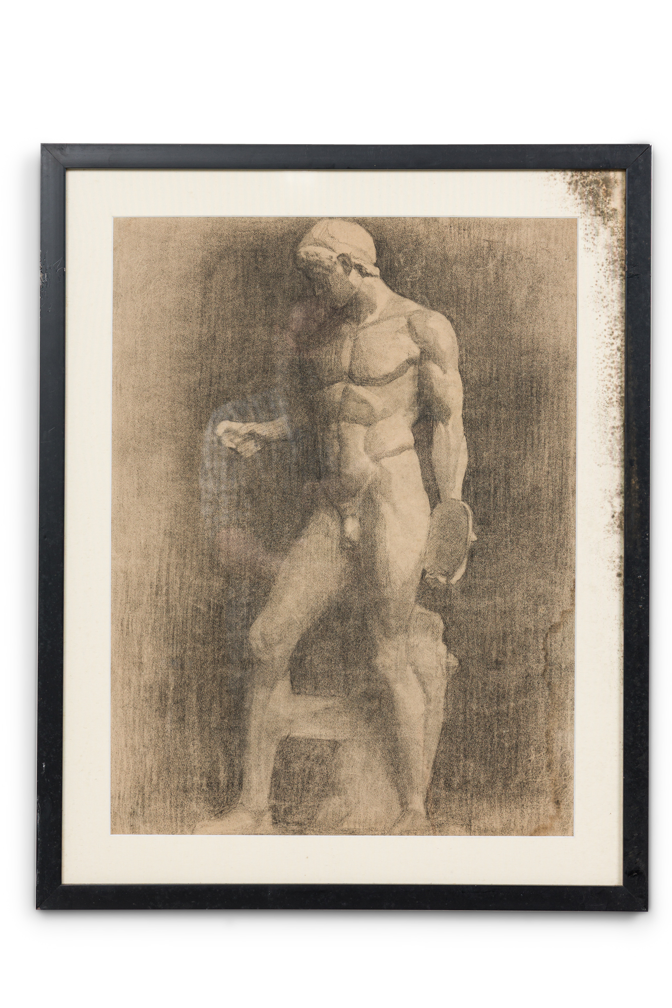 SET 4 Old Master matted charcoal drawings of scuptural figures in black frames (PRICED AS SET)