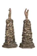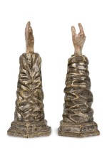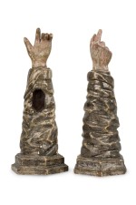 Pair of Italian Baroque Silver Gilt and Painted Hand Form Reliquaries