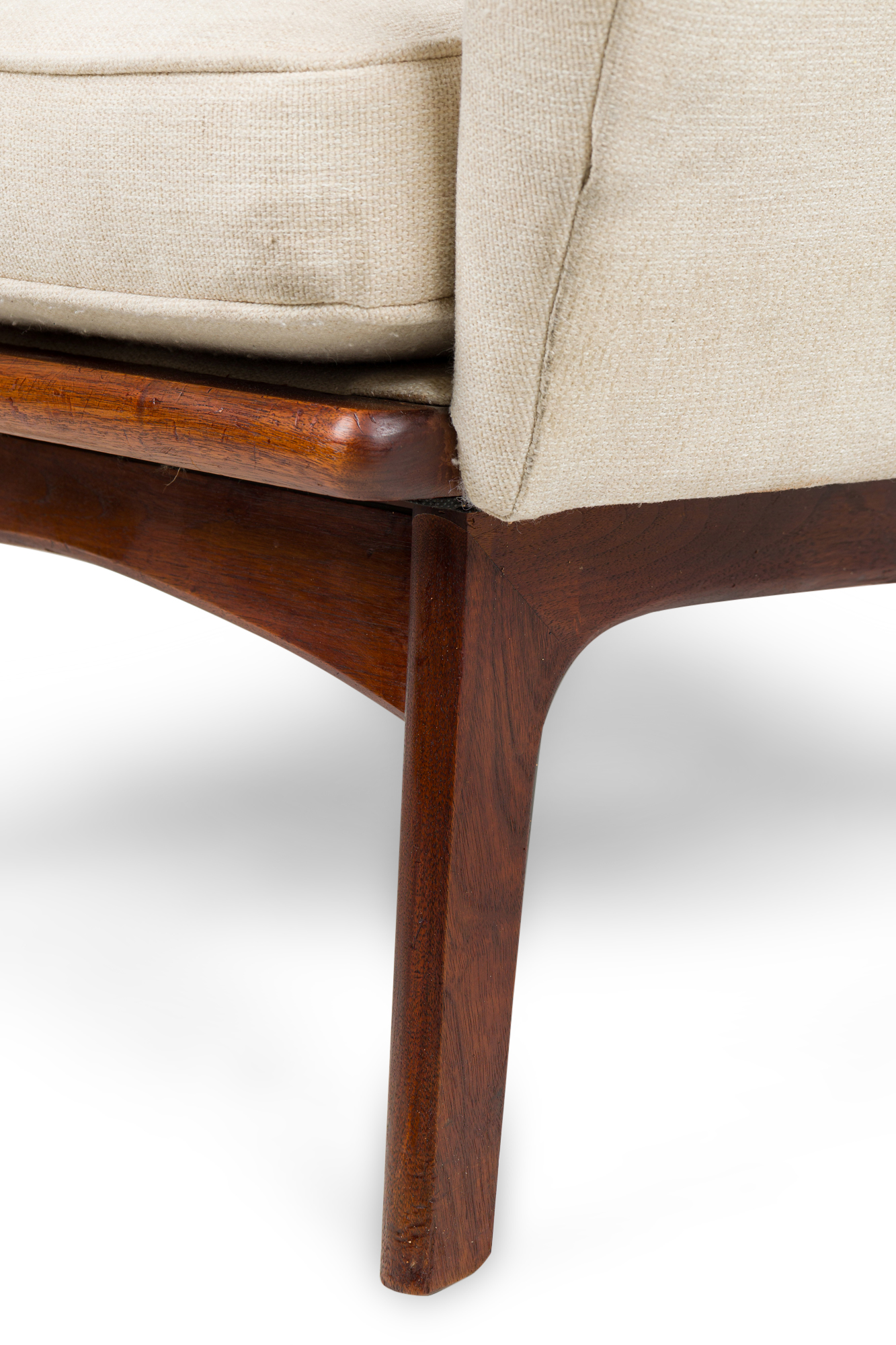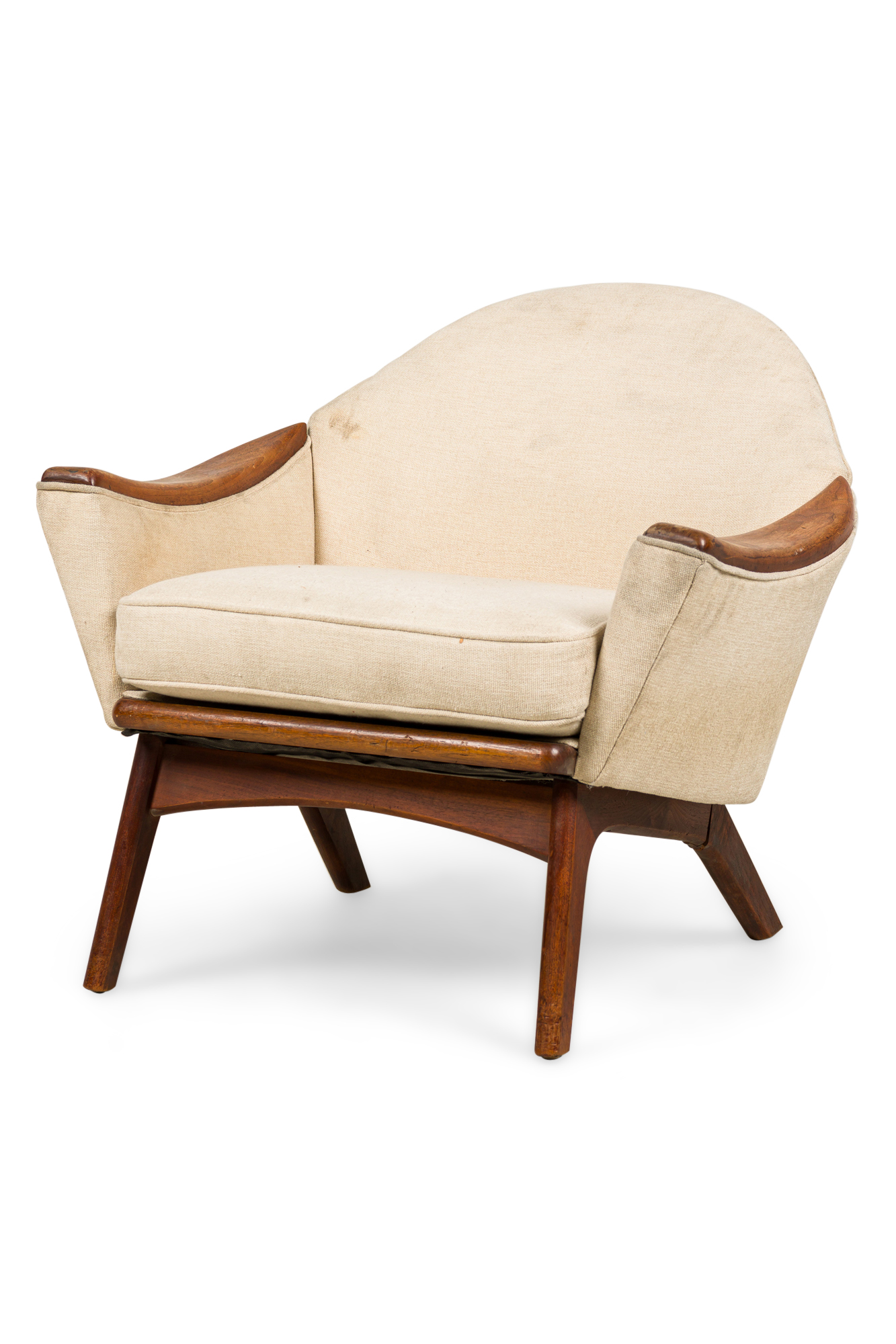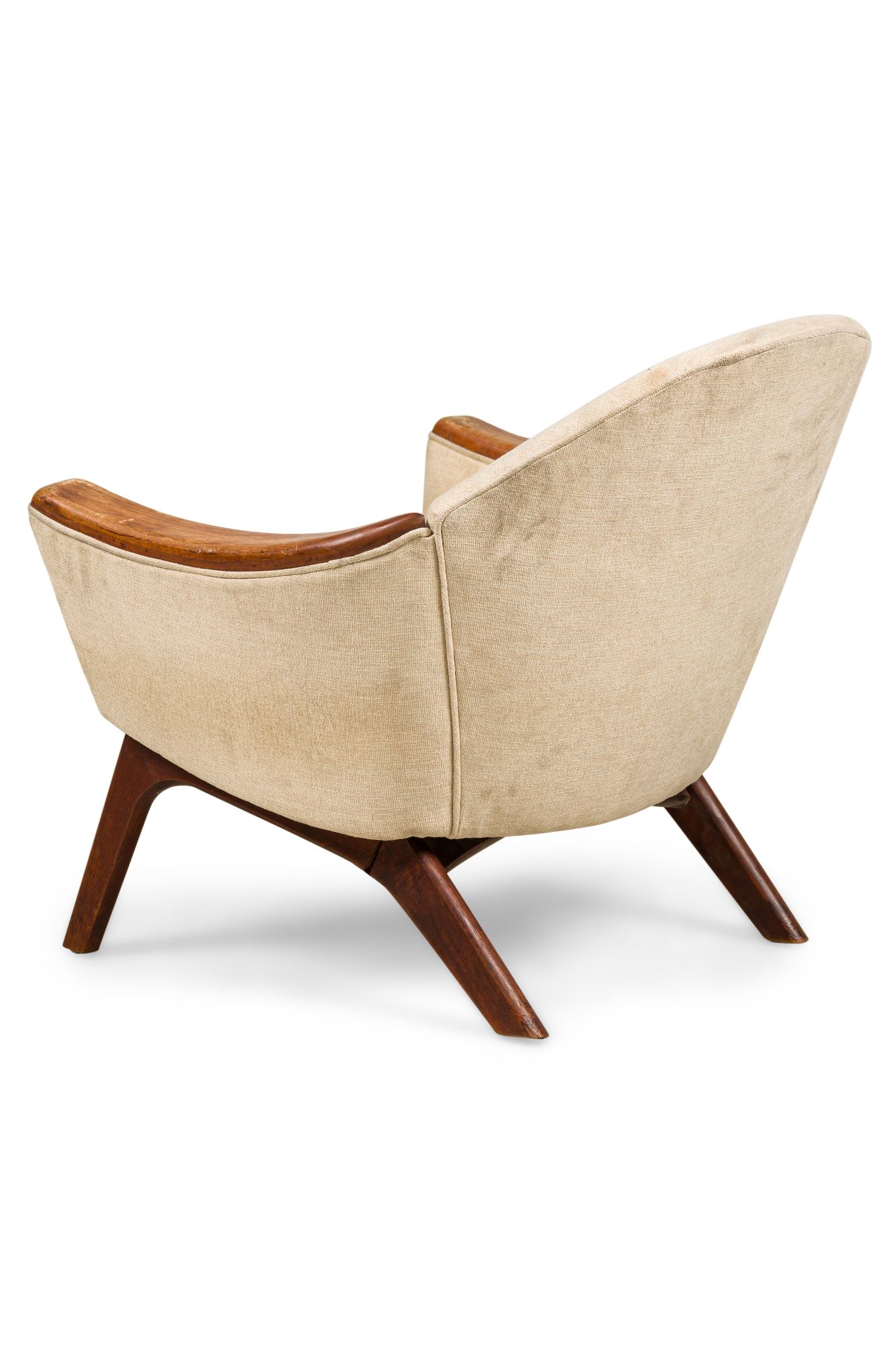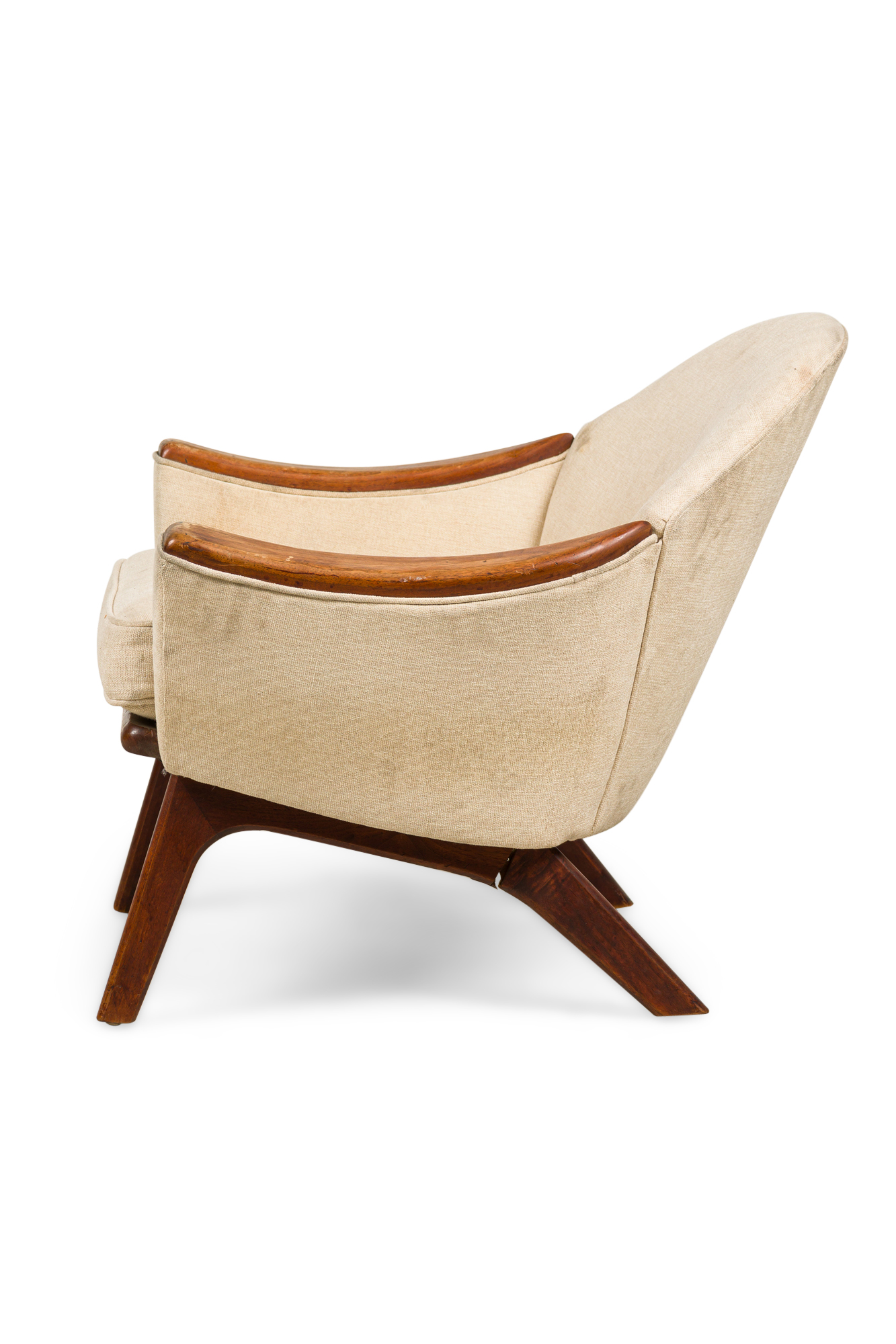 PAIR of Similar American Mid-Century mahogany Lounge / Easy Chairs with beige upholstry with 1 having a high back and 1 having a low round back (ADRIAN PEARSALL) (PRICED AS PAIR)