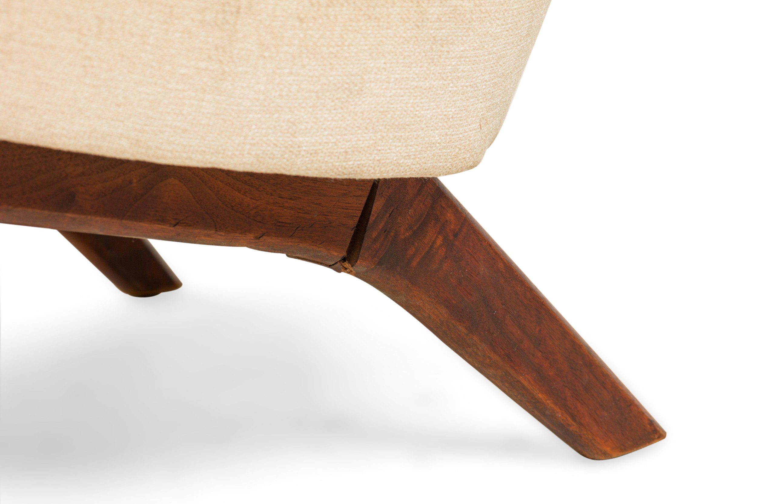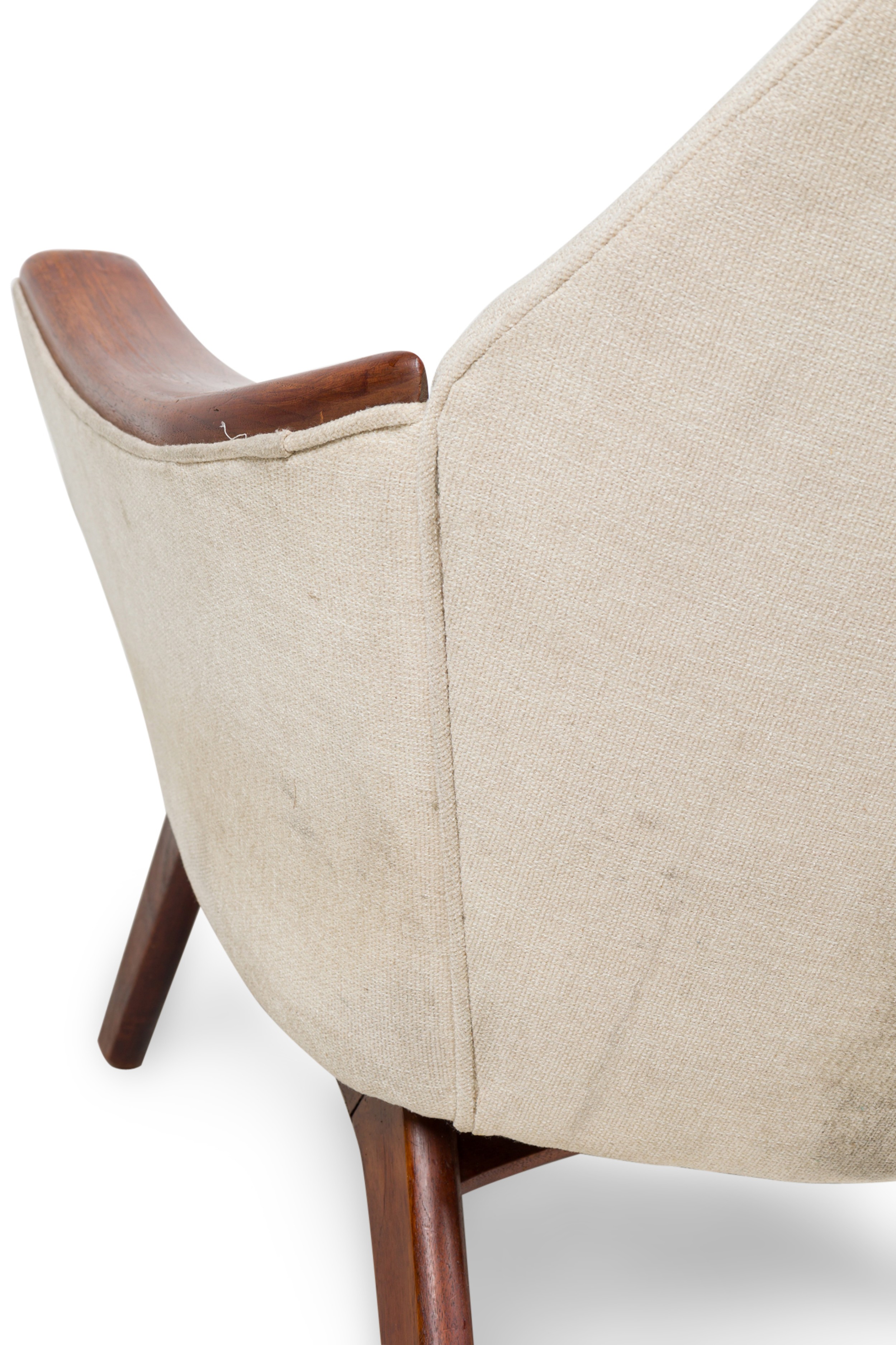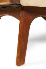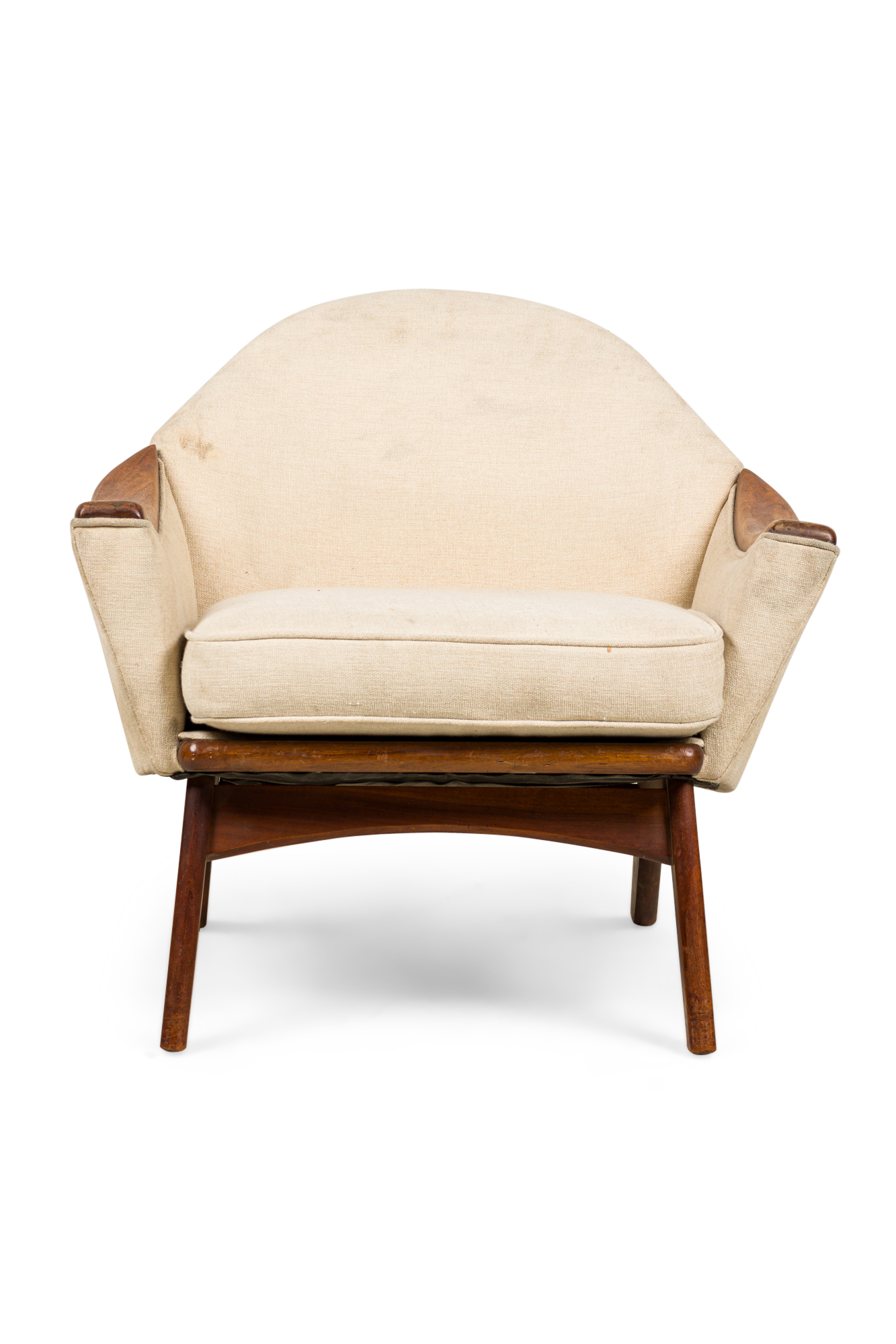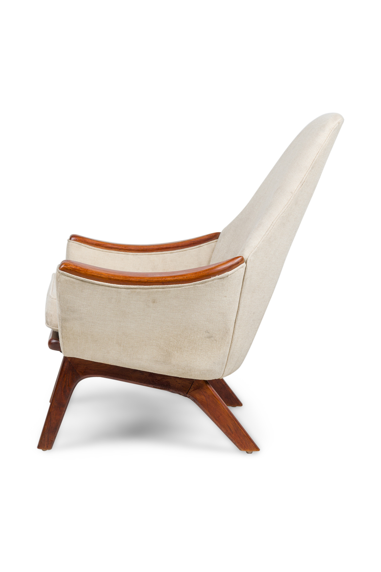 PAIR of Similar American Mid-Century mahogany Lounge / Easy Chairs with beige upholstry with 1 having a high back and 1 having a low round back (ADRIAN PEARSALL) (PRICED AS PAIR)