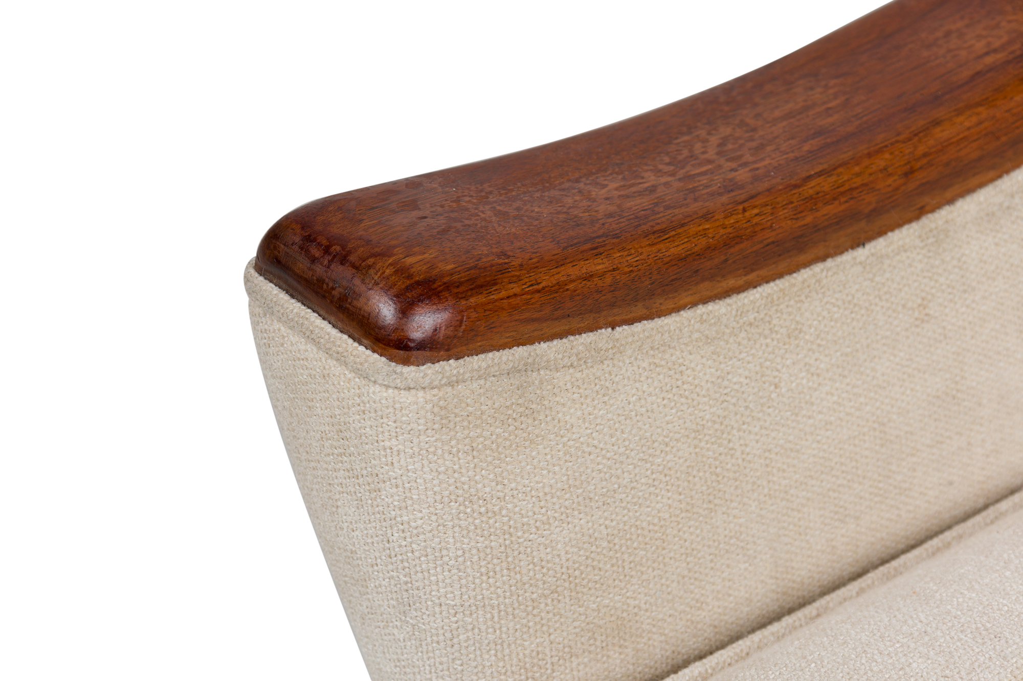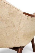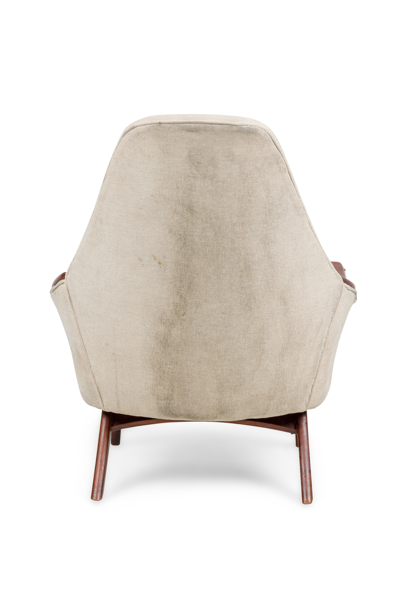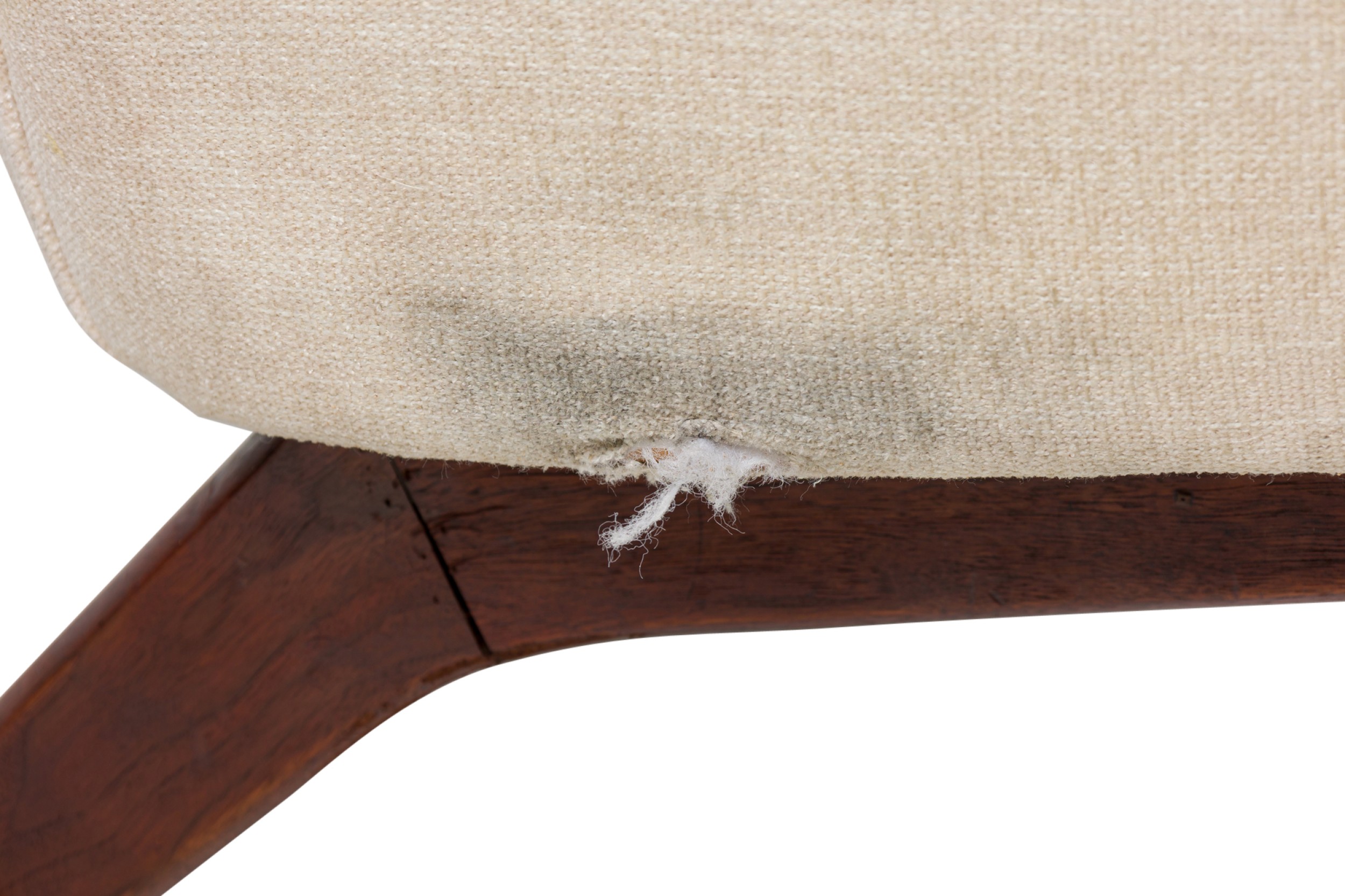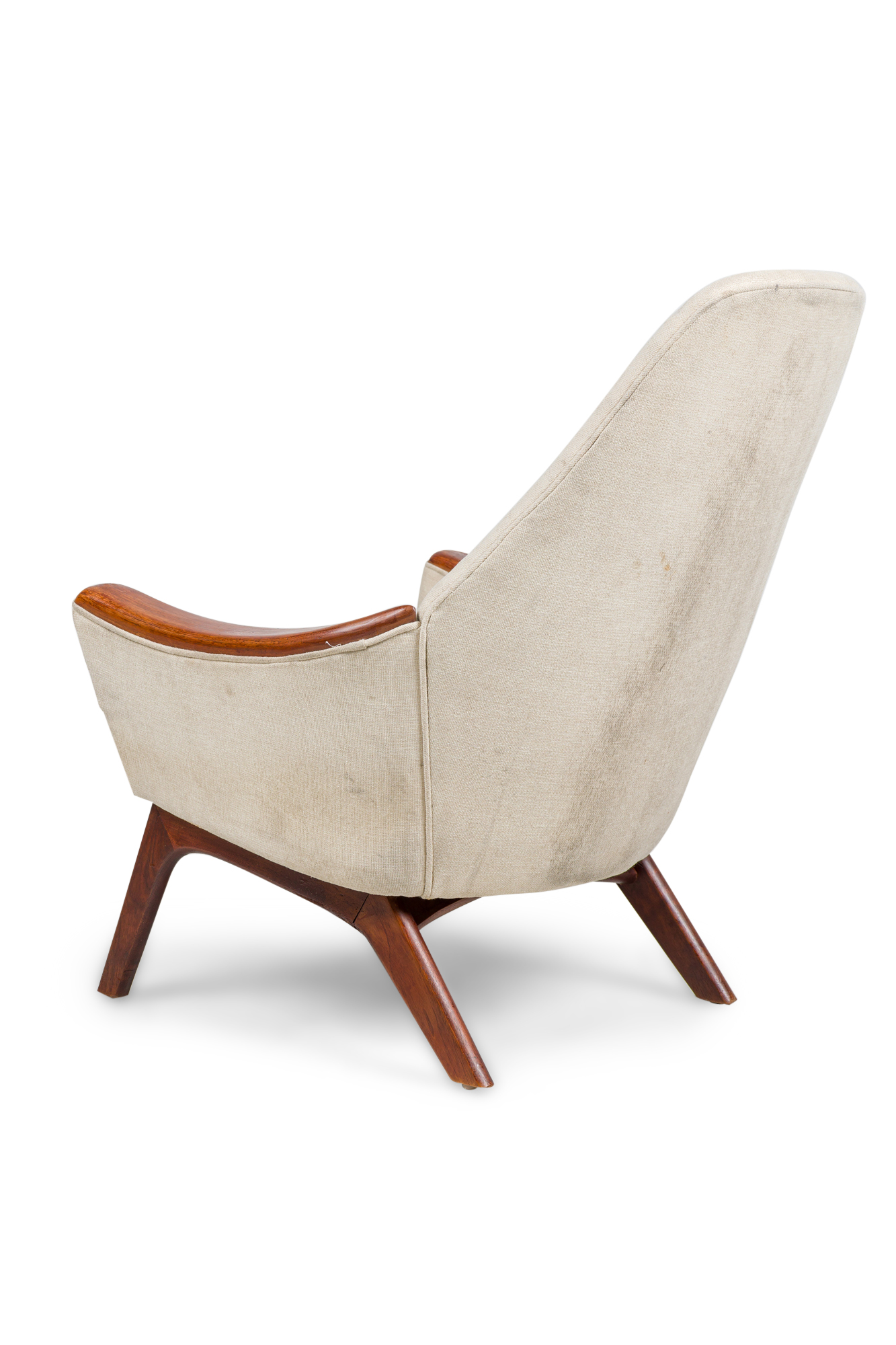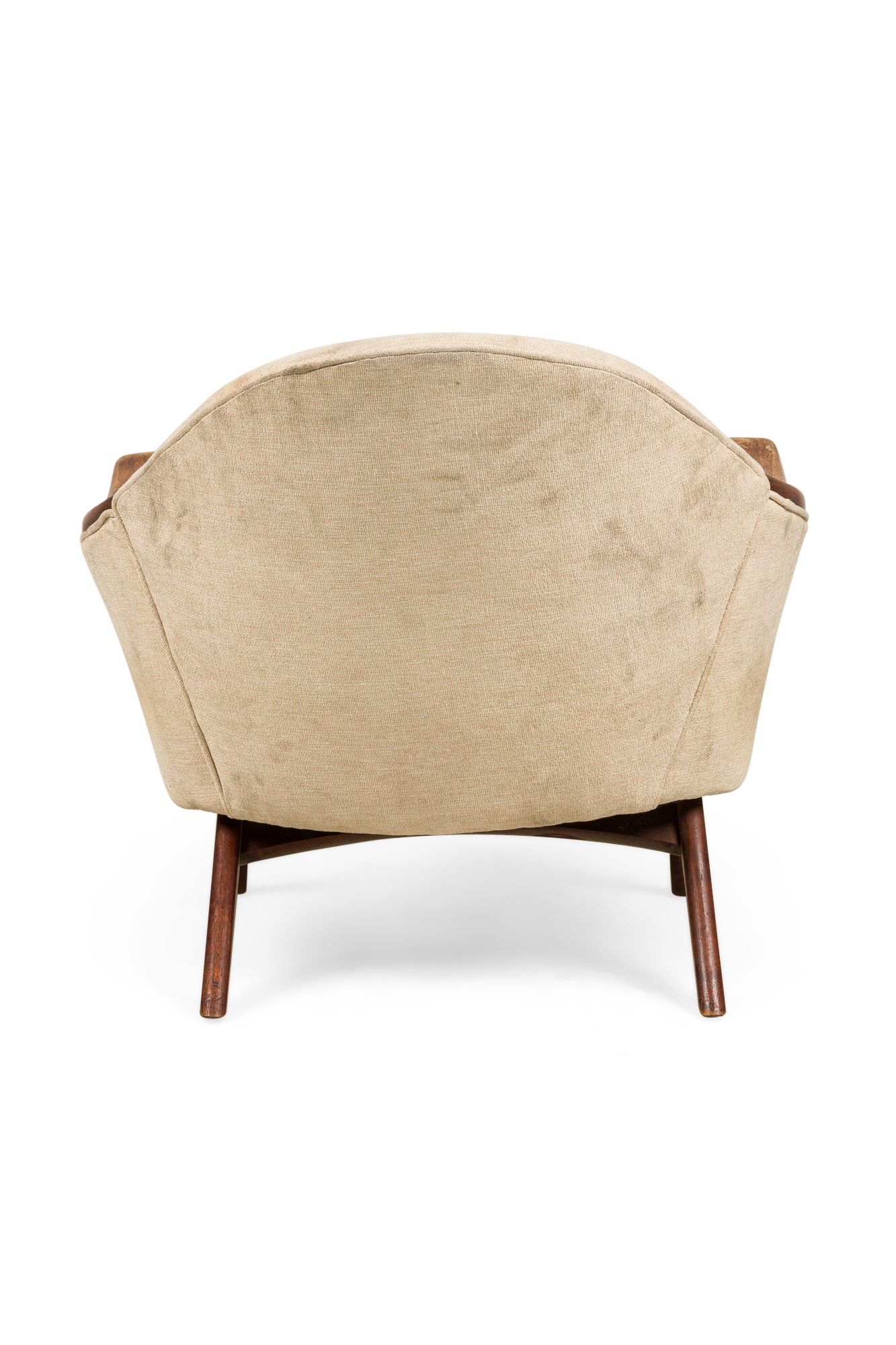 PAIR of Similar American Mid-Century mahogany Lounge / Easy Chairs with beige upholstry with 1 having a high back and 1 having a low round back (ADRIAN PEARSALL) (PRICED AS PAIR)