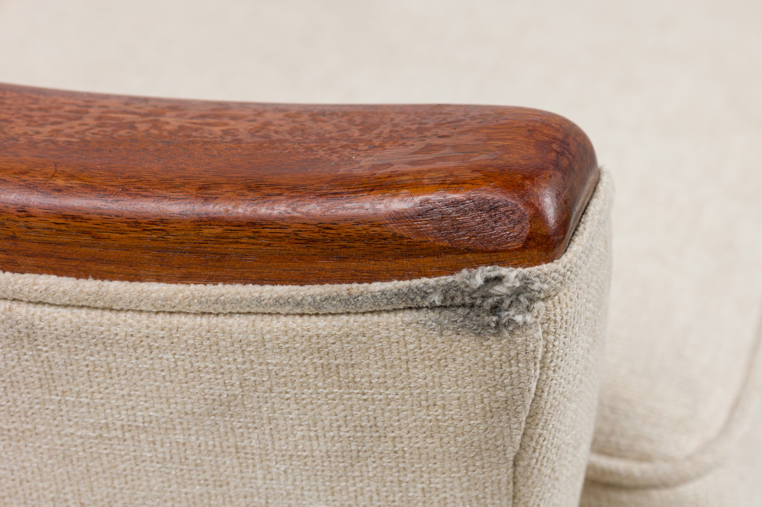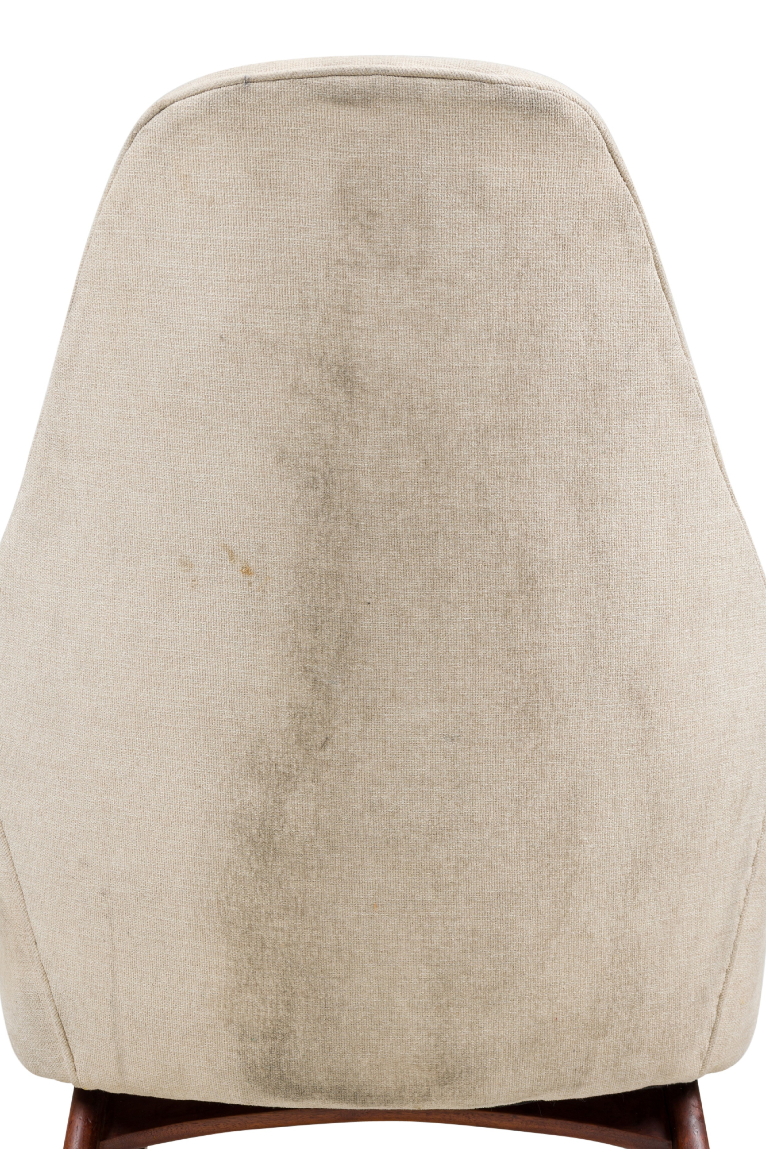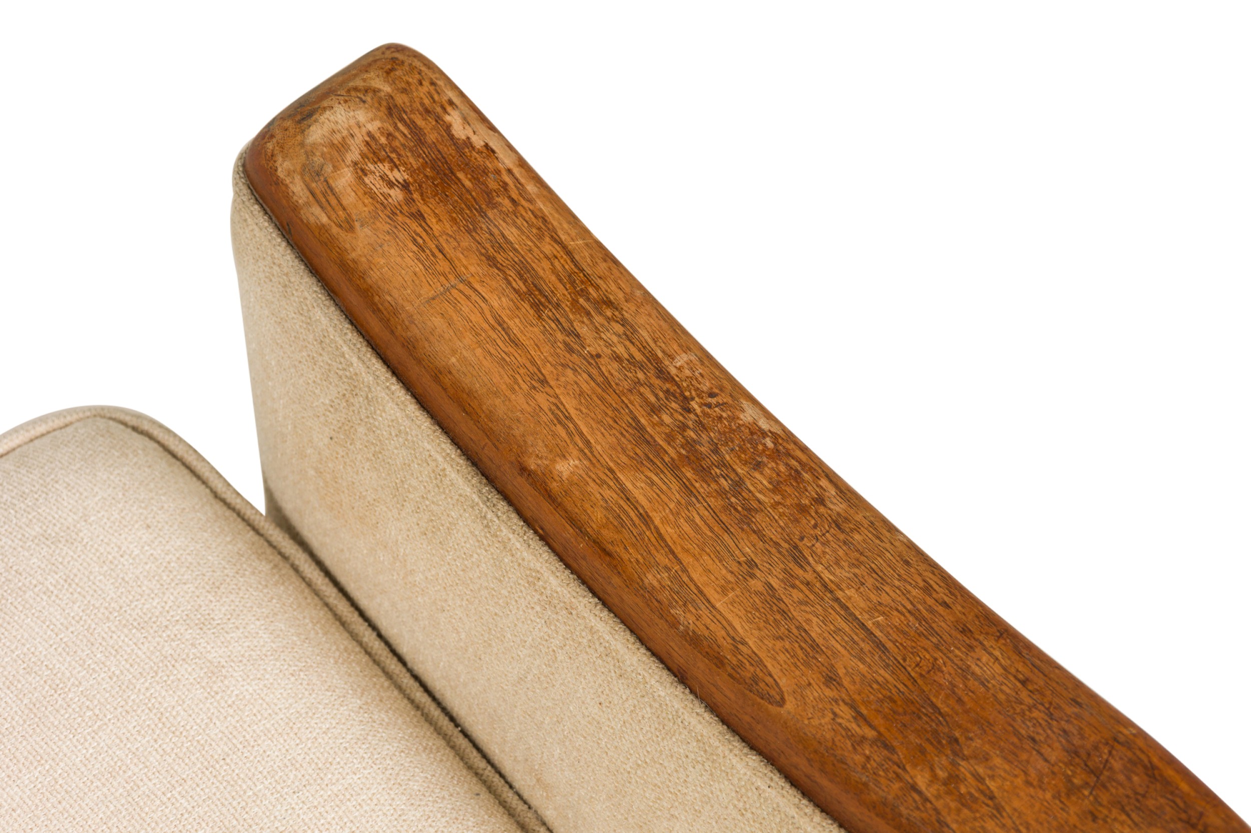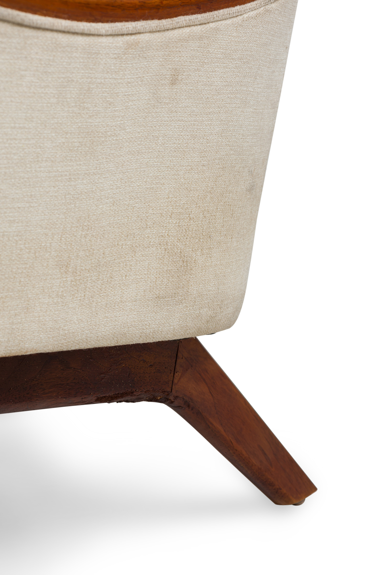 PAIR of Similar American Mid-Century mahogany Lounge / Easy Chairs with beige upholstry with 1 having a high back and 1 having a low round back (ADRIAN PEARSALL) (PRICED AS PAIR)