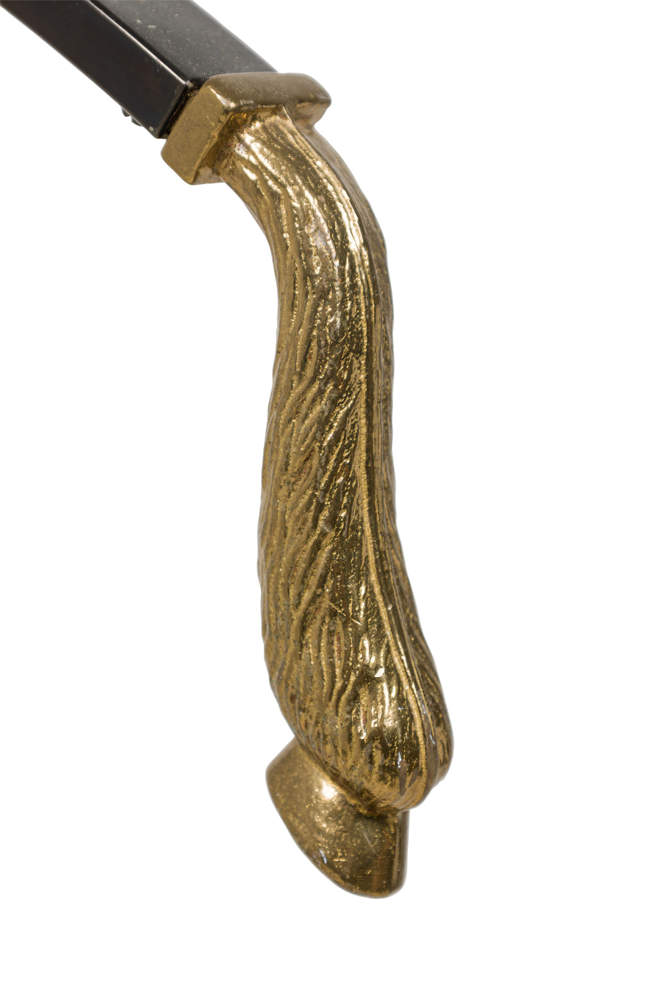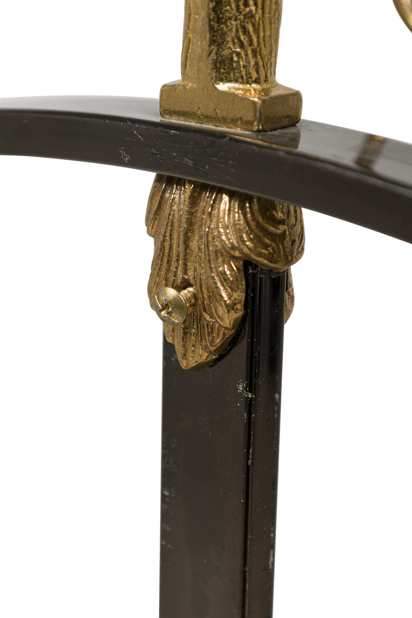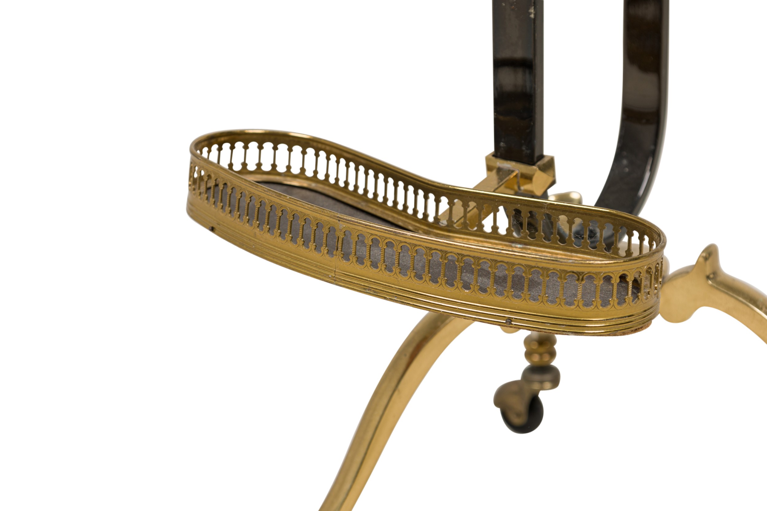 Style: Mid-Century Materials & Techniques: Brass, steel Category: Stands/Racks Condition: NEEDS SCREW TO HOLD TRAY