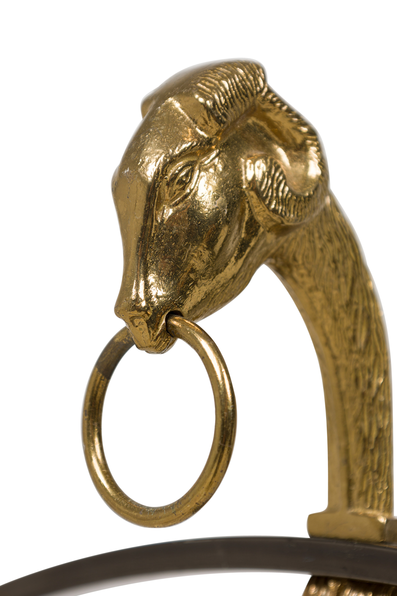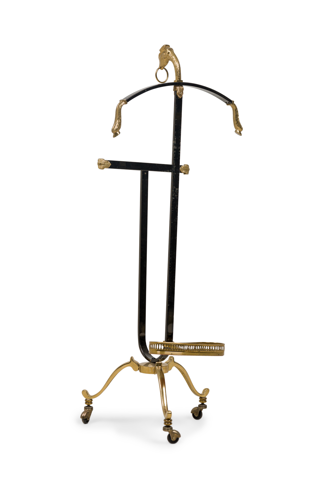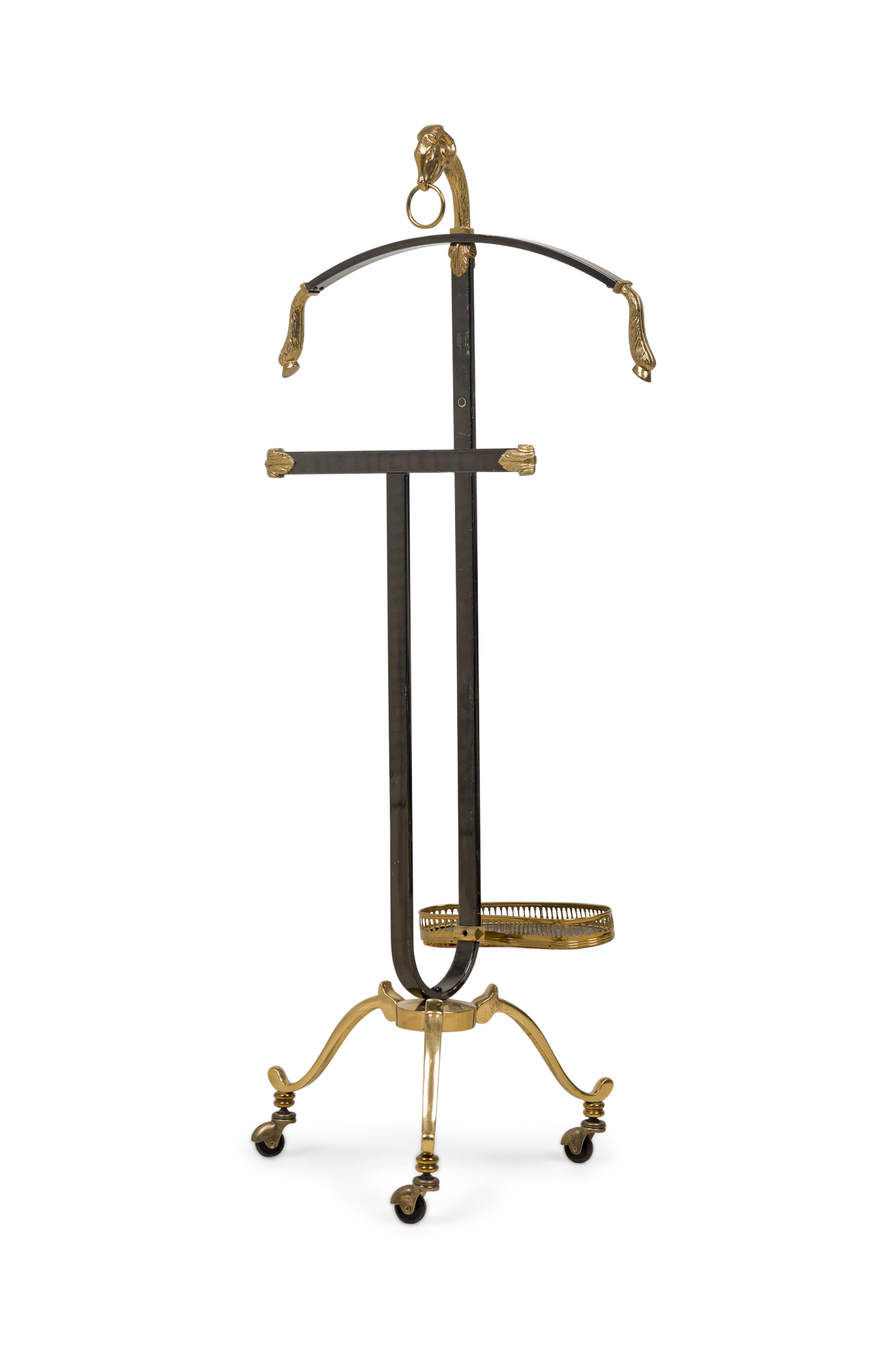 Maison Jansen French Mid-Century Black Enameled Steel and Brass Valet with Ram Head Accents