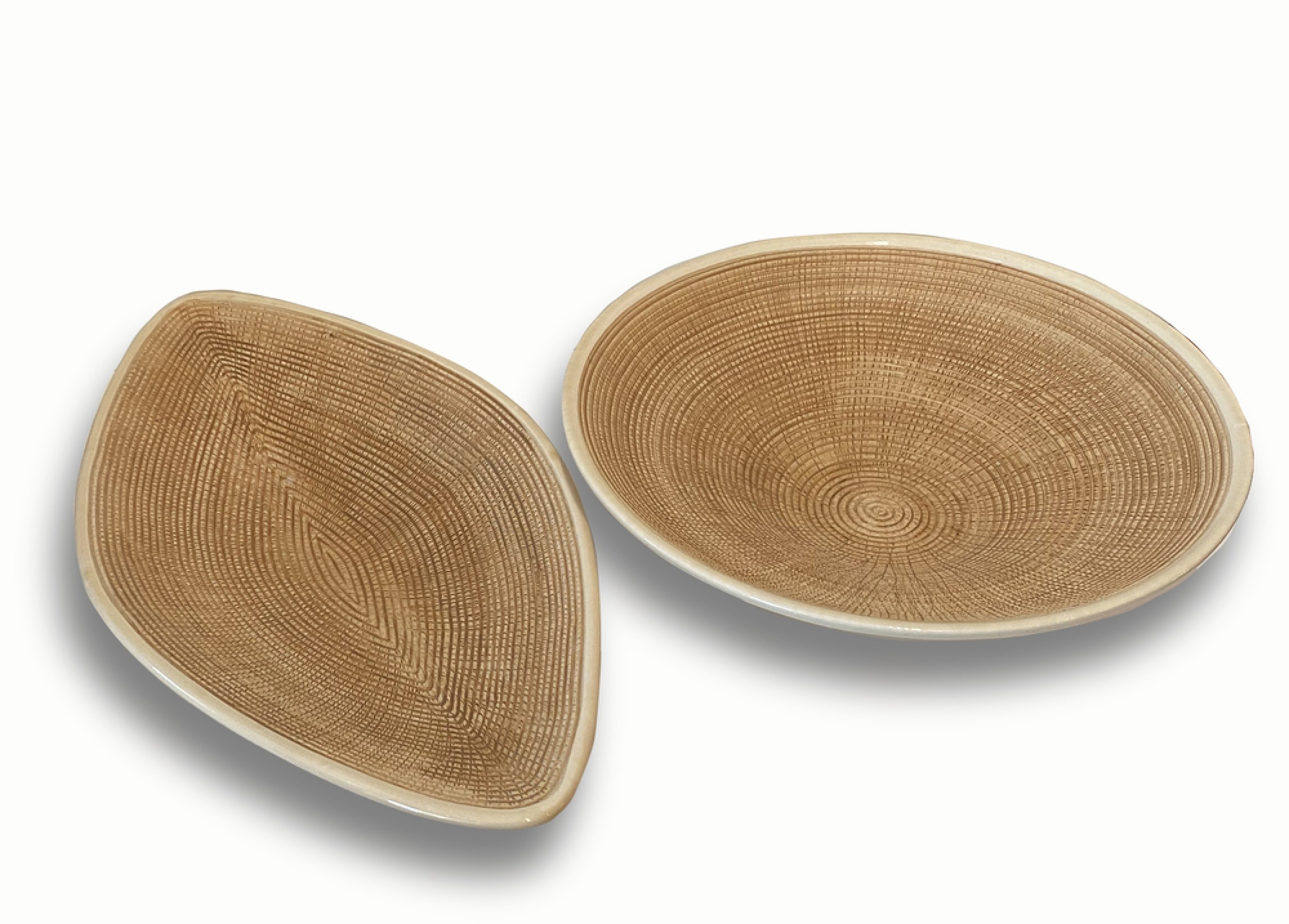SET of 2 Contemporary brown ceramic bowls, 1 oval and 1 round (Jomaze Pottery) PRICED AS PAIR