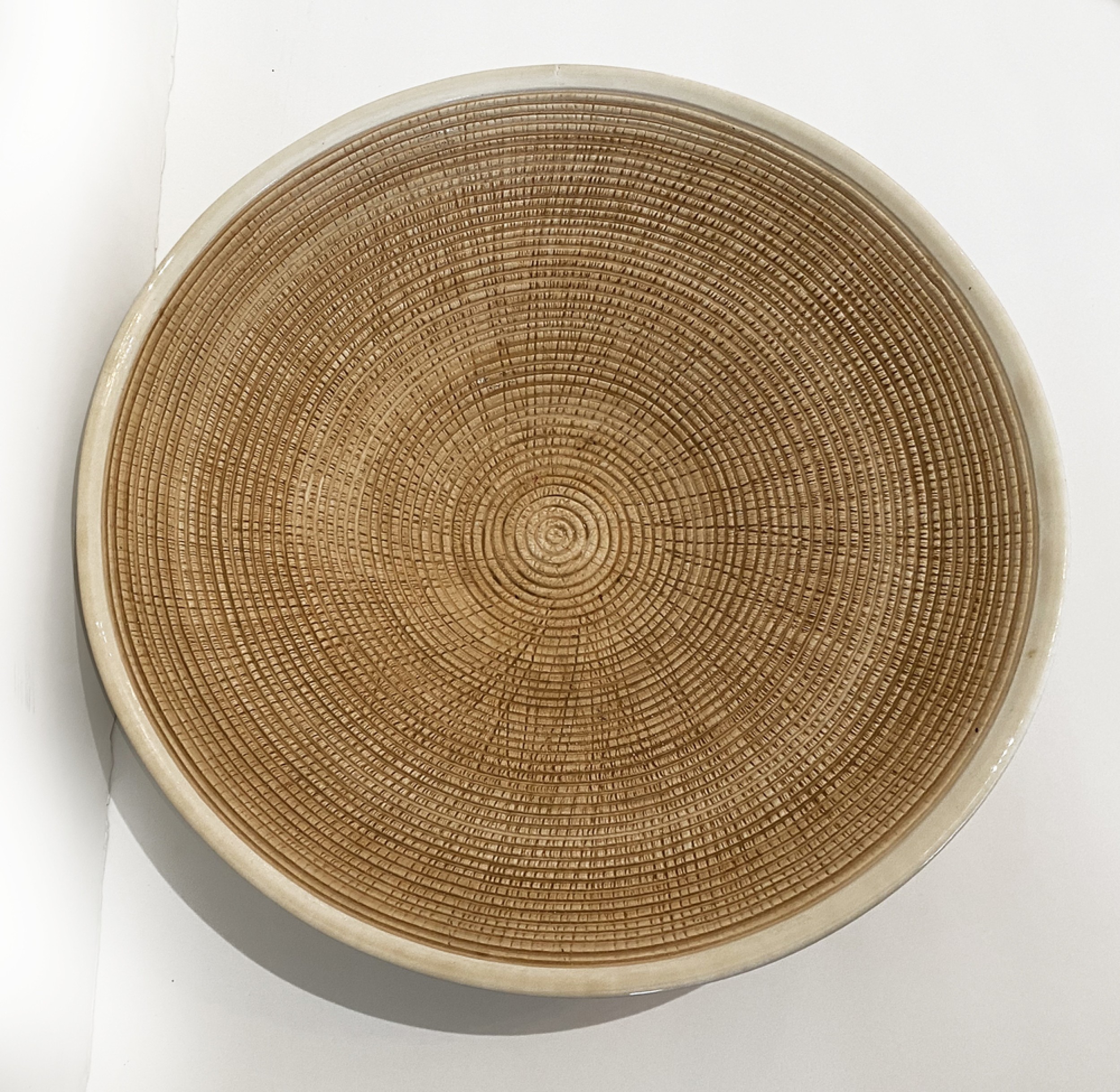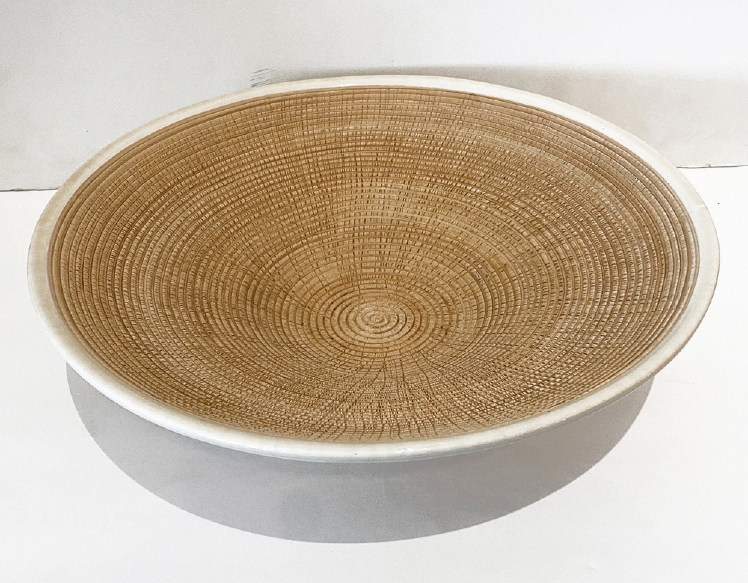 SET of 2 Contemporary brown ceramic bowls, 1 oval and 1 round (Jomaze Pottery) PRICED AS PAIR.