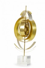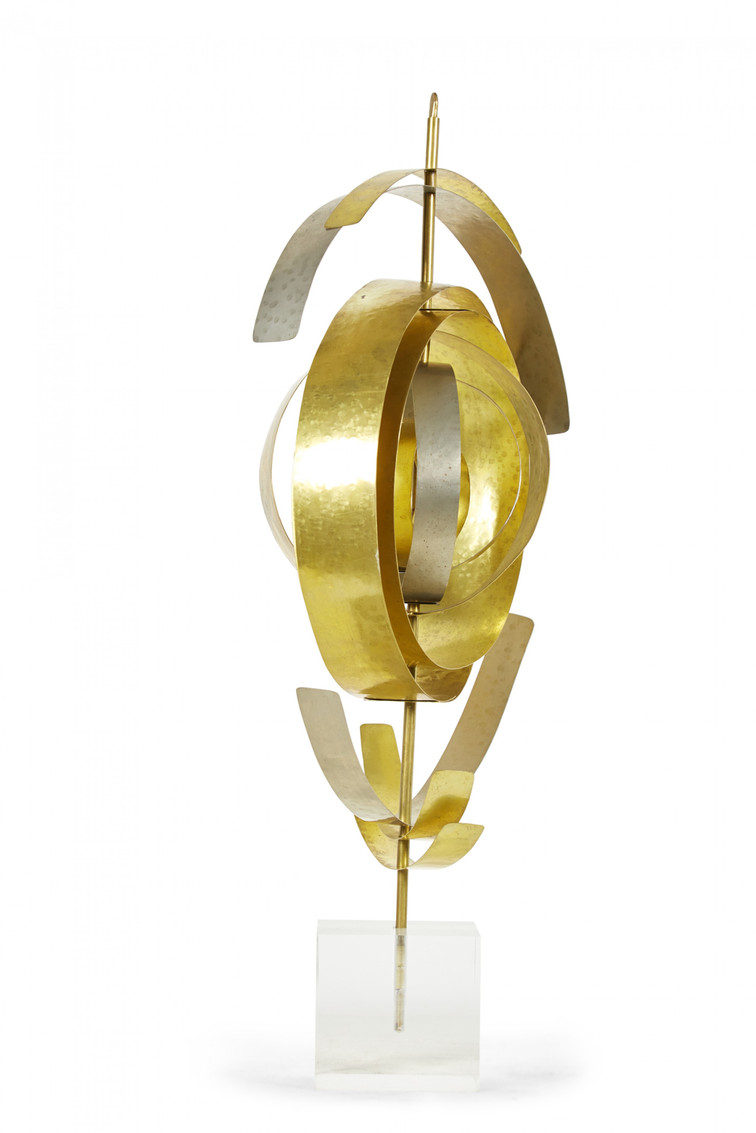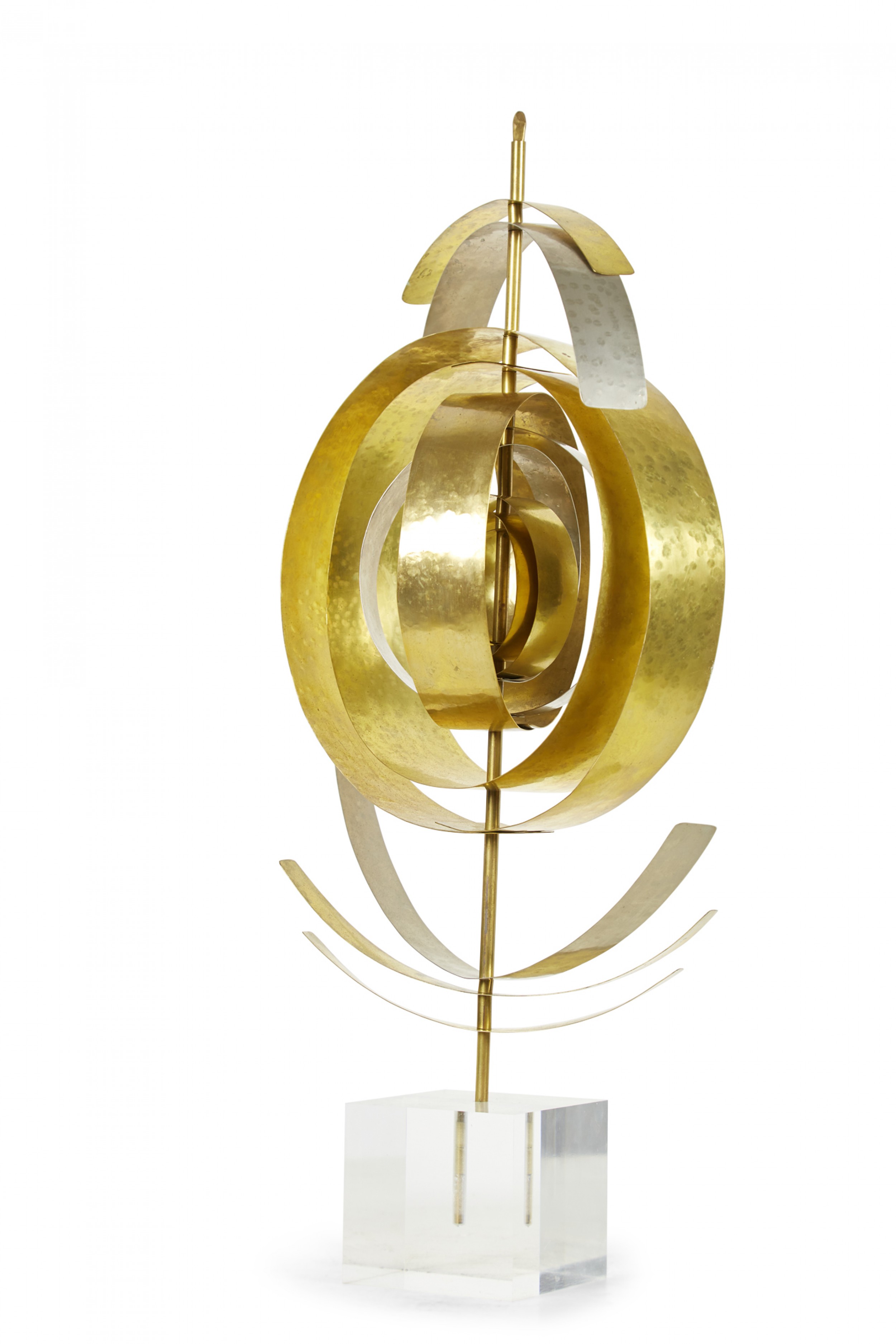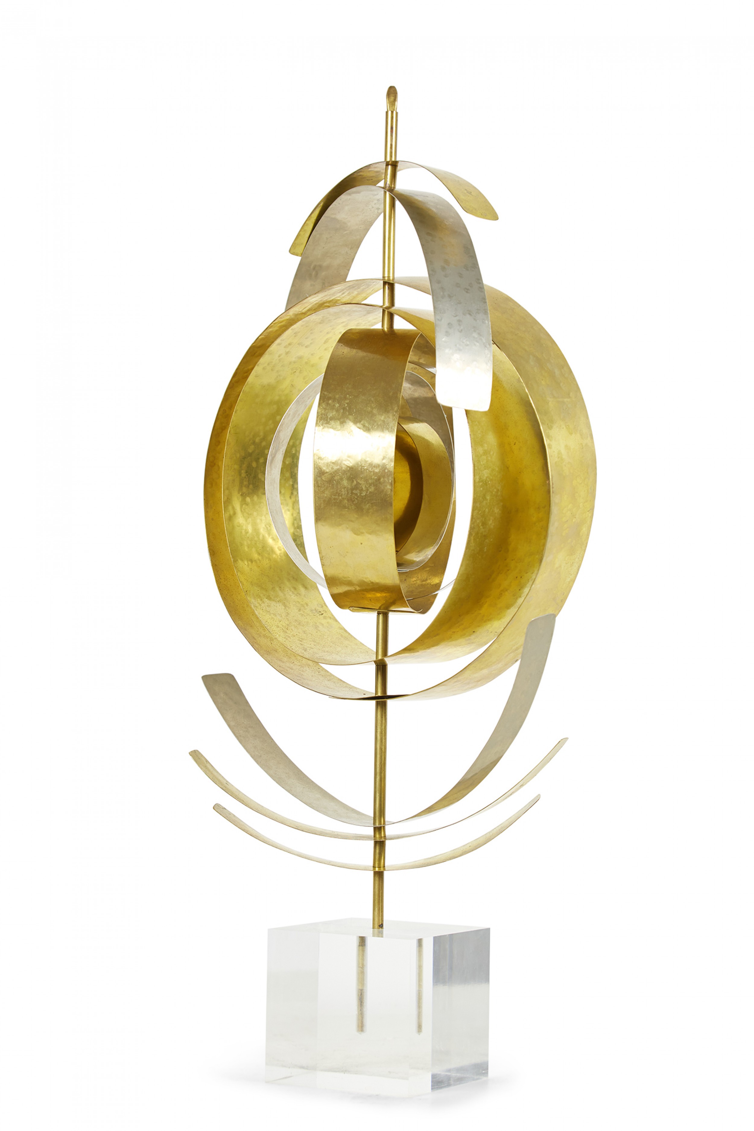 Style: Contemporary/Post-War Design Materials & Techniques: Lucite, metal, brass, nickel, hammered Category: Cleared Sculpture