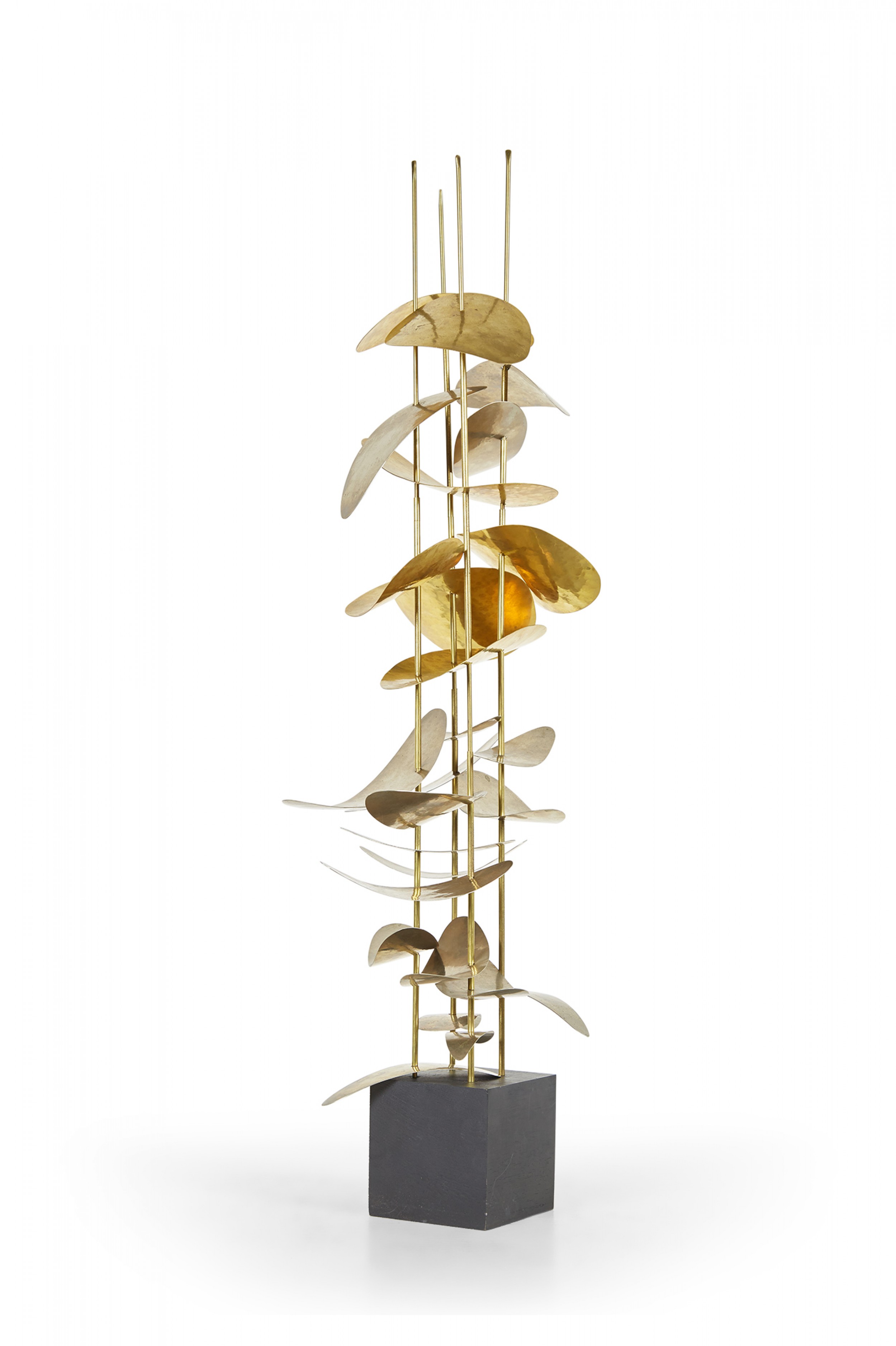 Style: Contemporary/Post-War Design Materials & Techniques: Brass, hammered, metal, nickel, wood Category: Cleared Sculpture