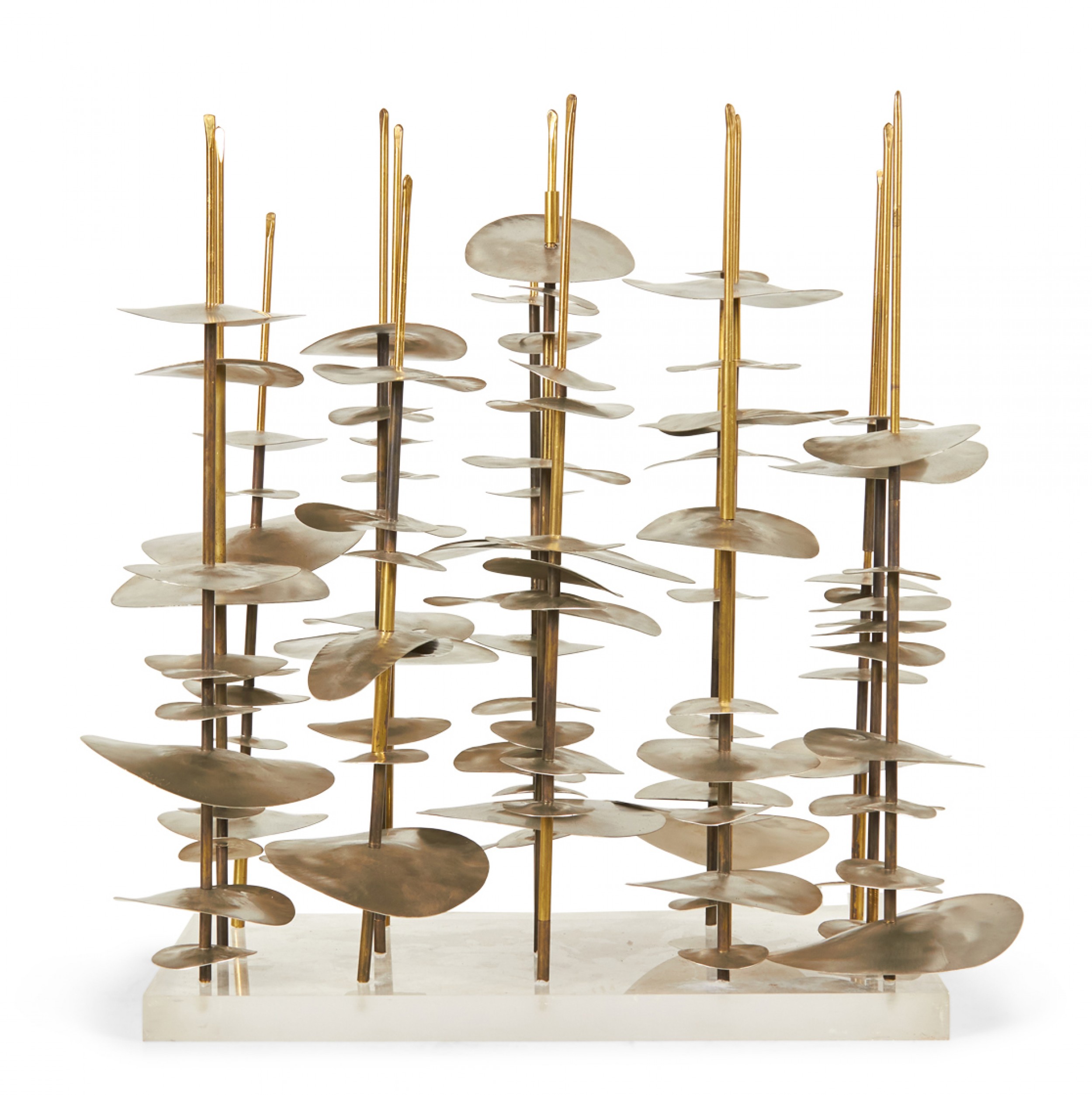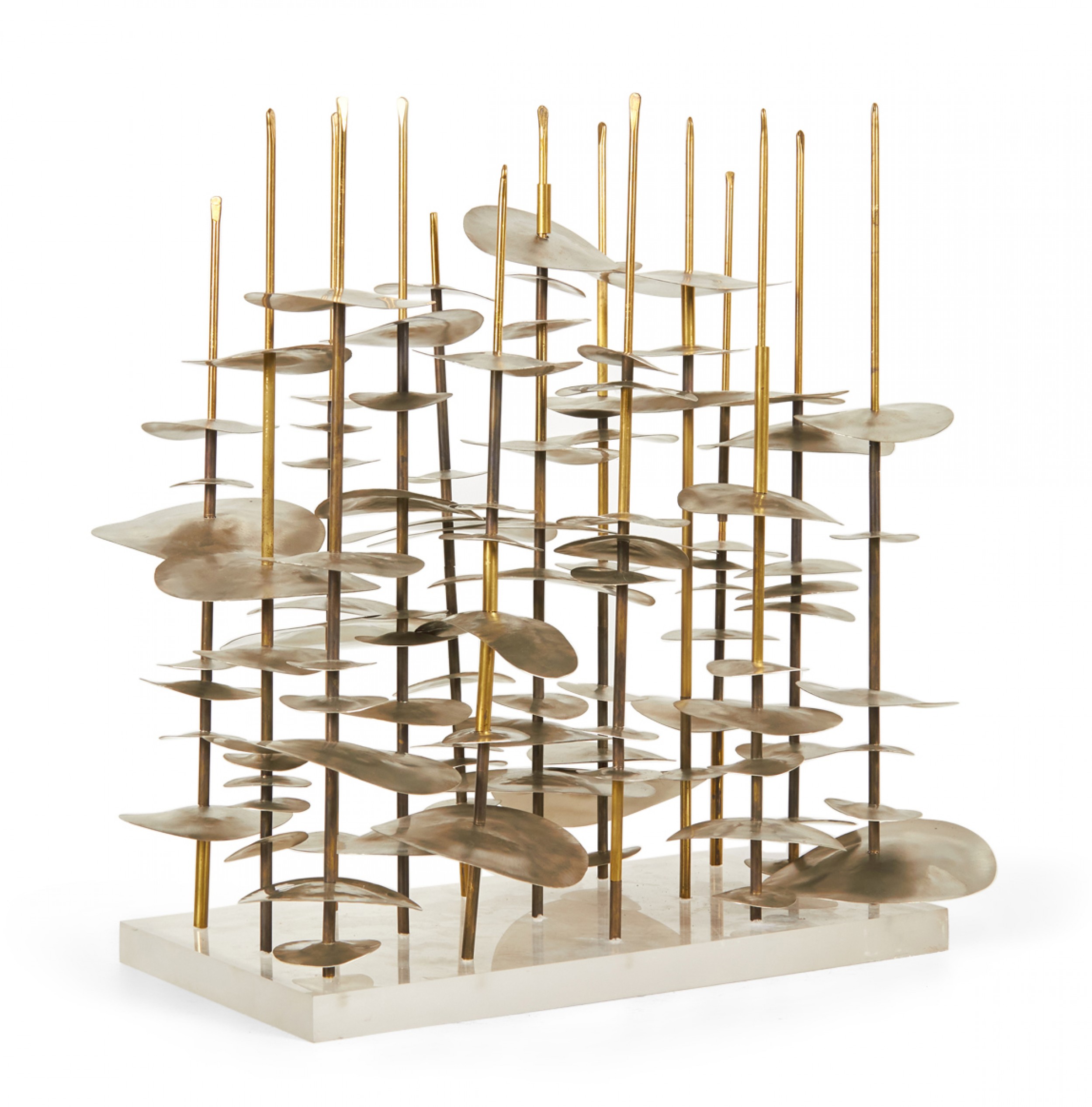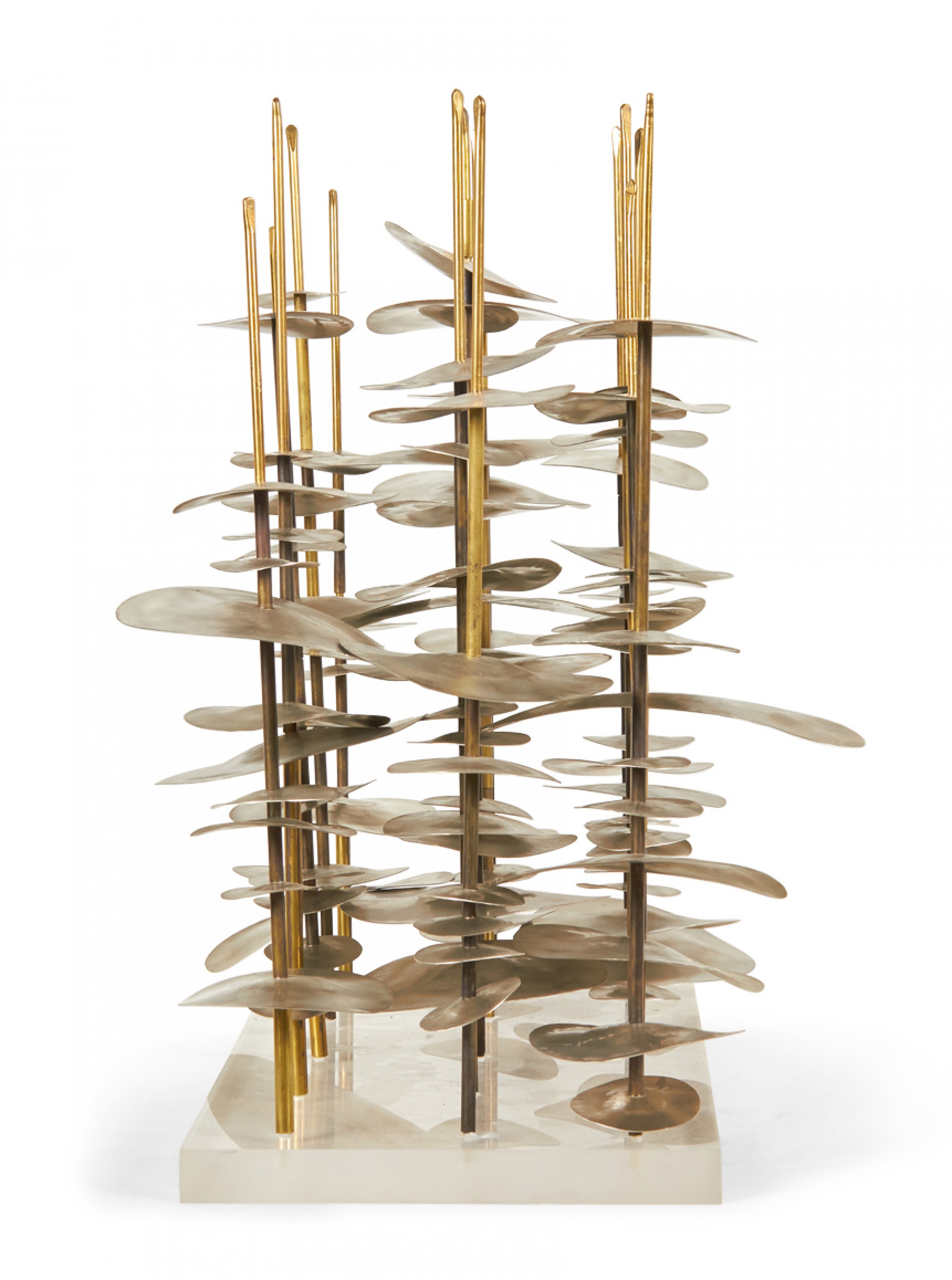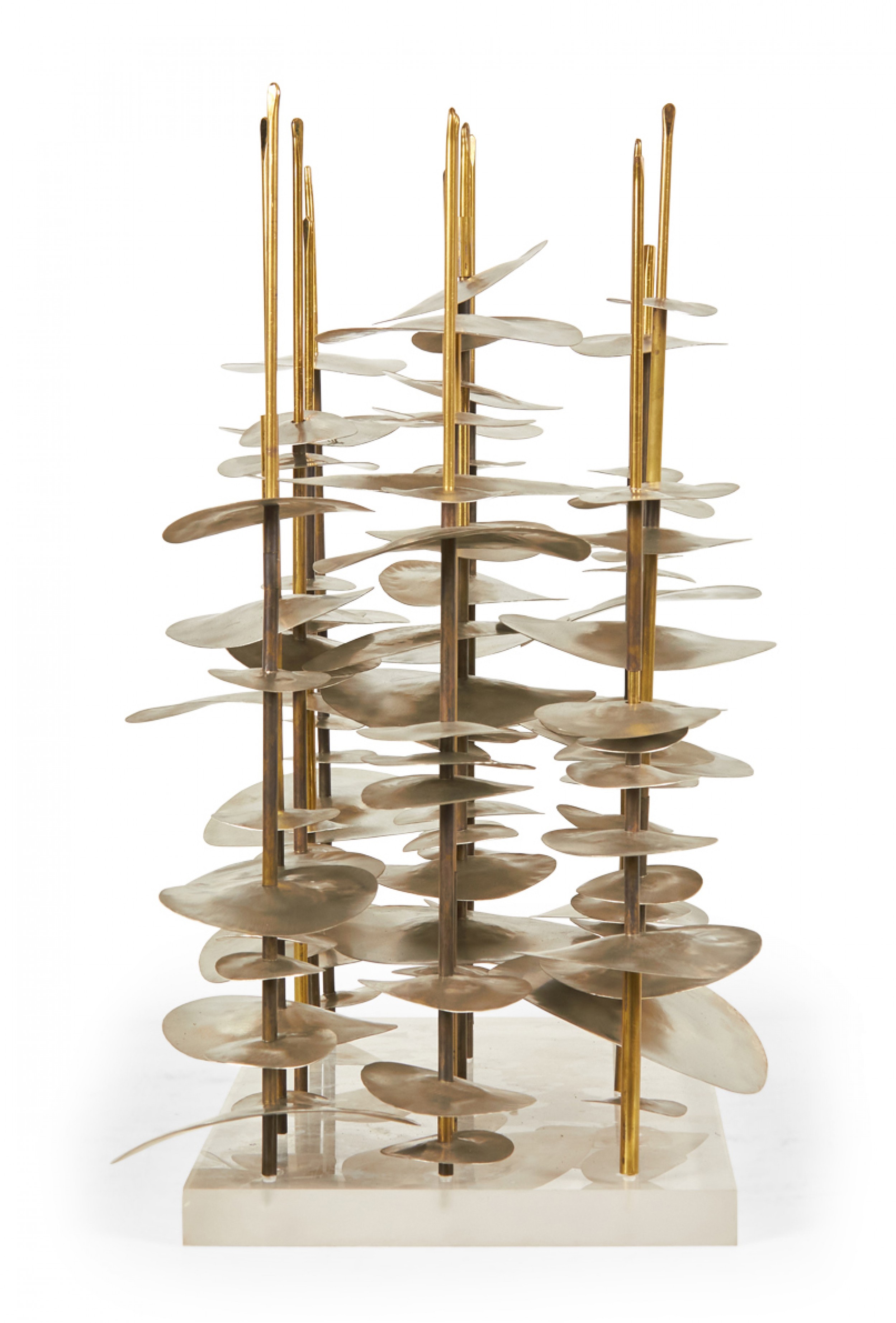 Style: Contemporary/Post-War Design Materials & Techniques: Brass, hammered, lucite, metal, nickel Category: Cleared Sculpture