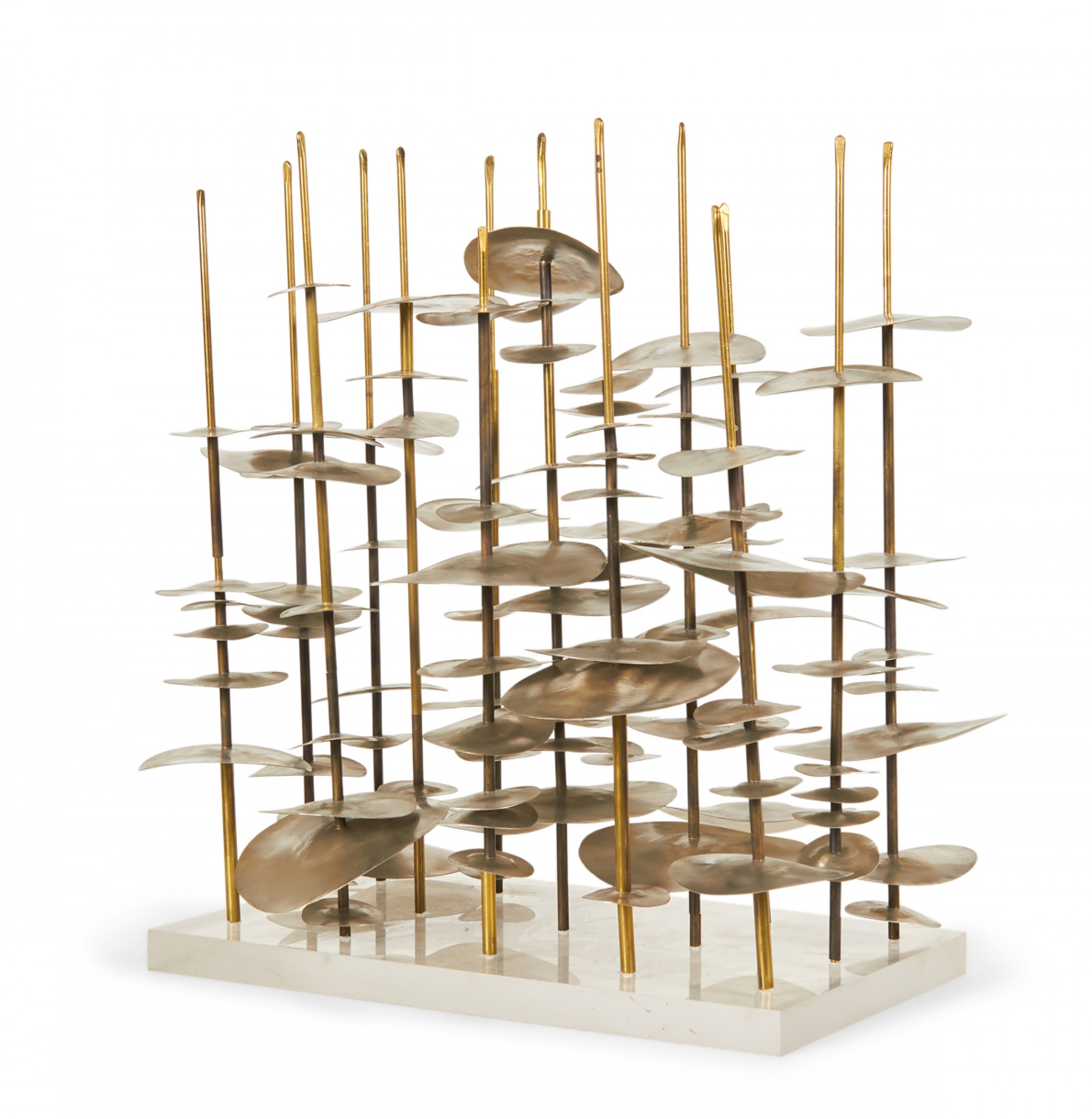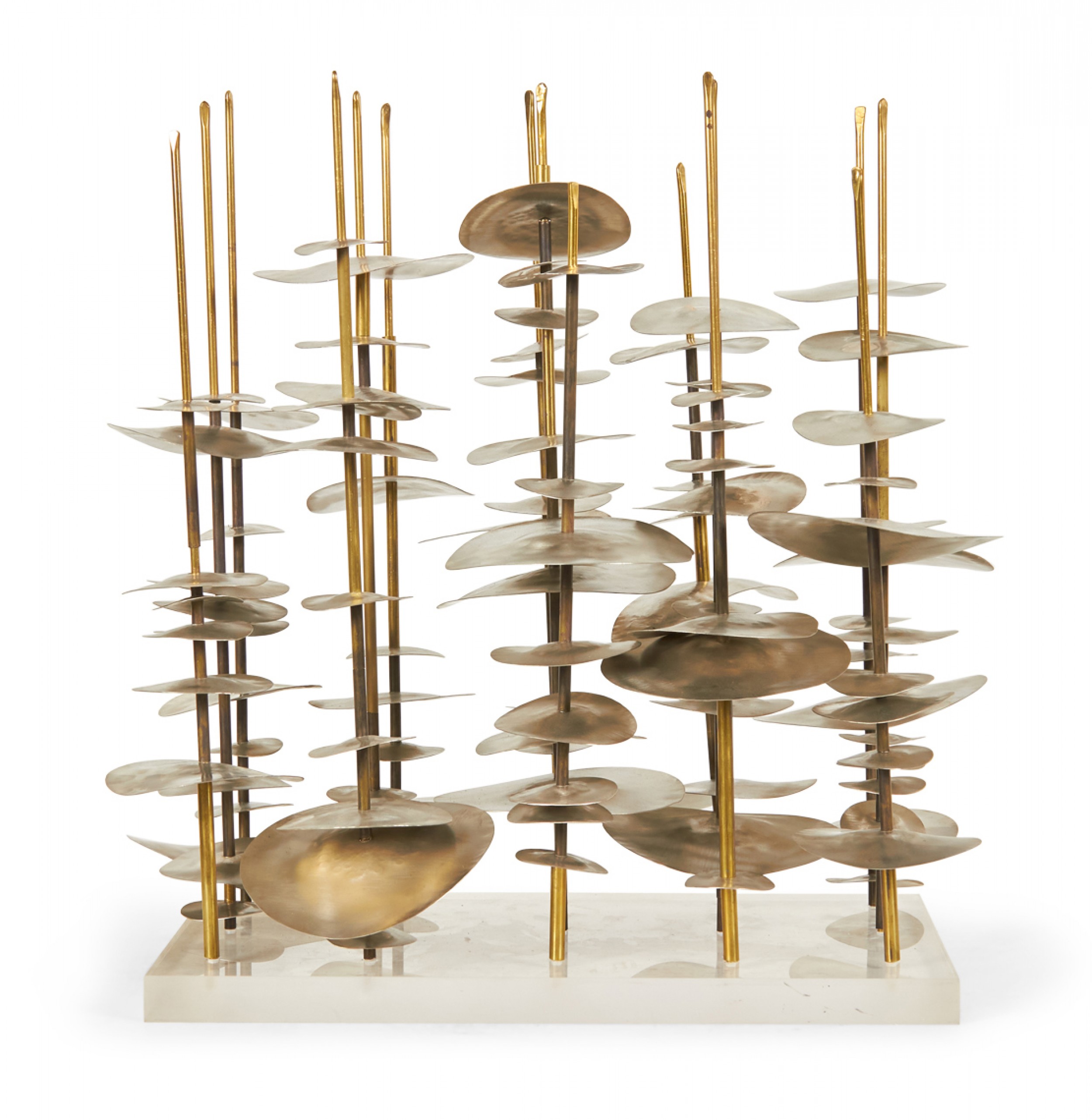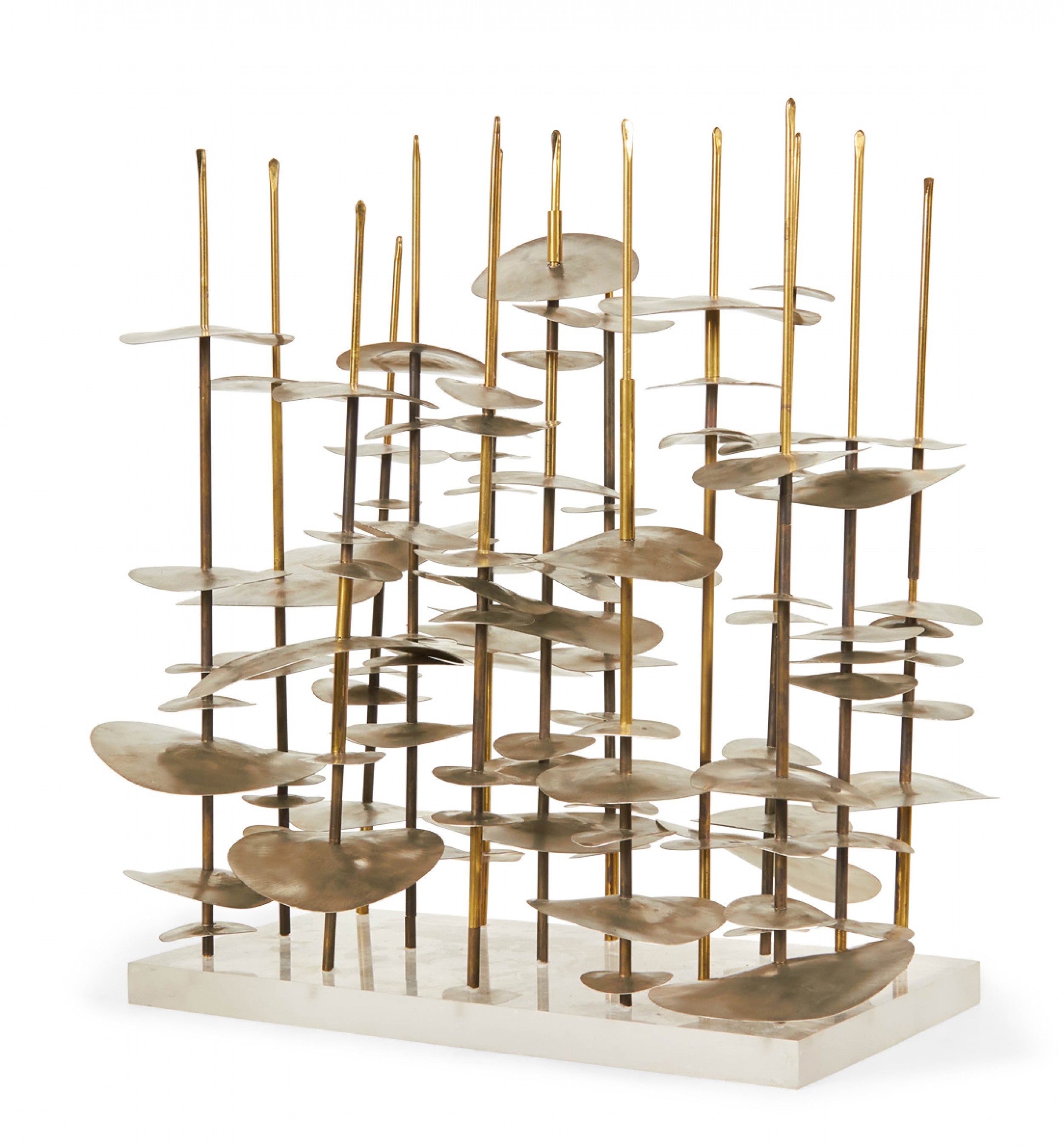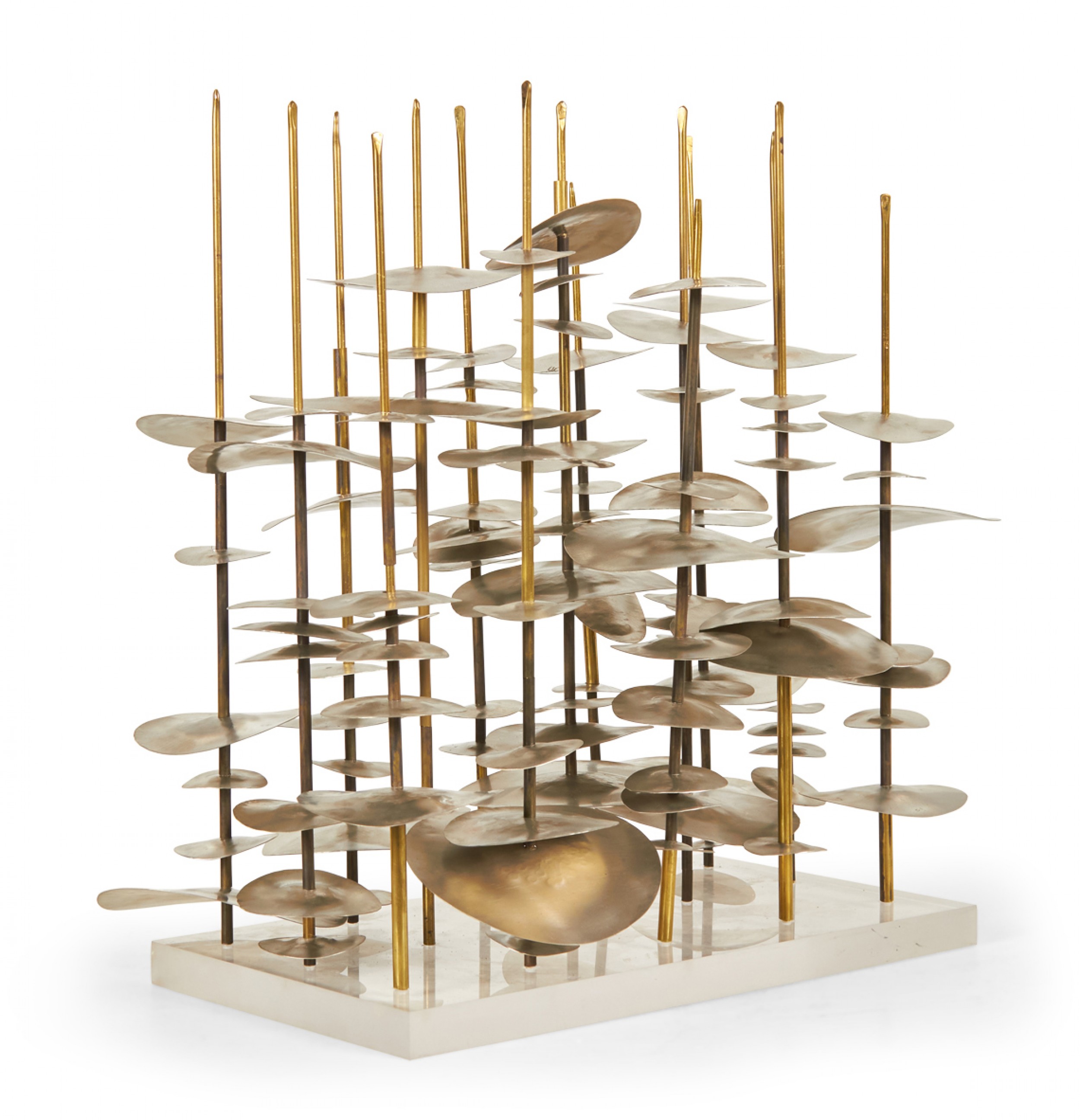Style: Contemporary/Post-War Design Materials & Techniques: Brass, hammered, lucite, metal, nickel Category: Cleared Sculpture
