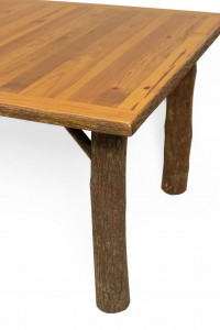 Rustic Old Hickory (Late 20th Century) large rectangular dining table with exposed bark legs and pine plank top (brass tag).