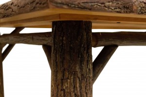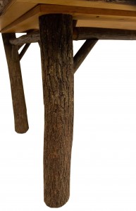 Rustic Old Hickory (Late 20th Century) large rectangular dining table with exposed bark legs and pine plank top (brass tag)