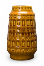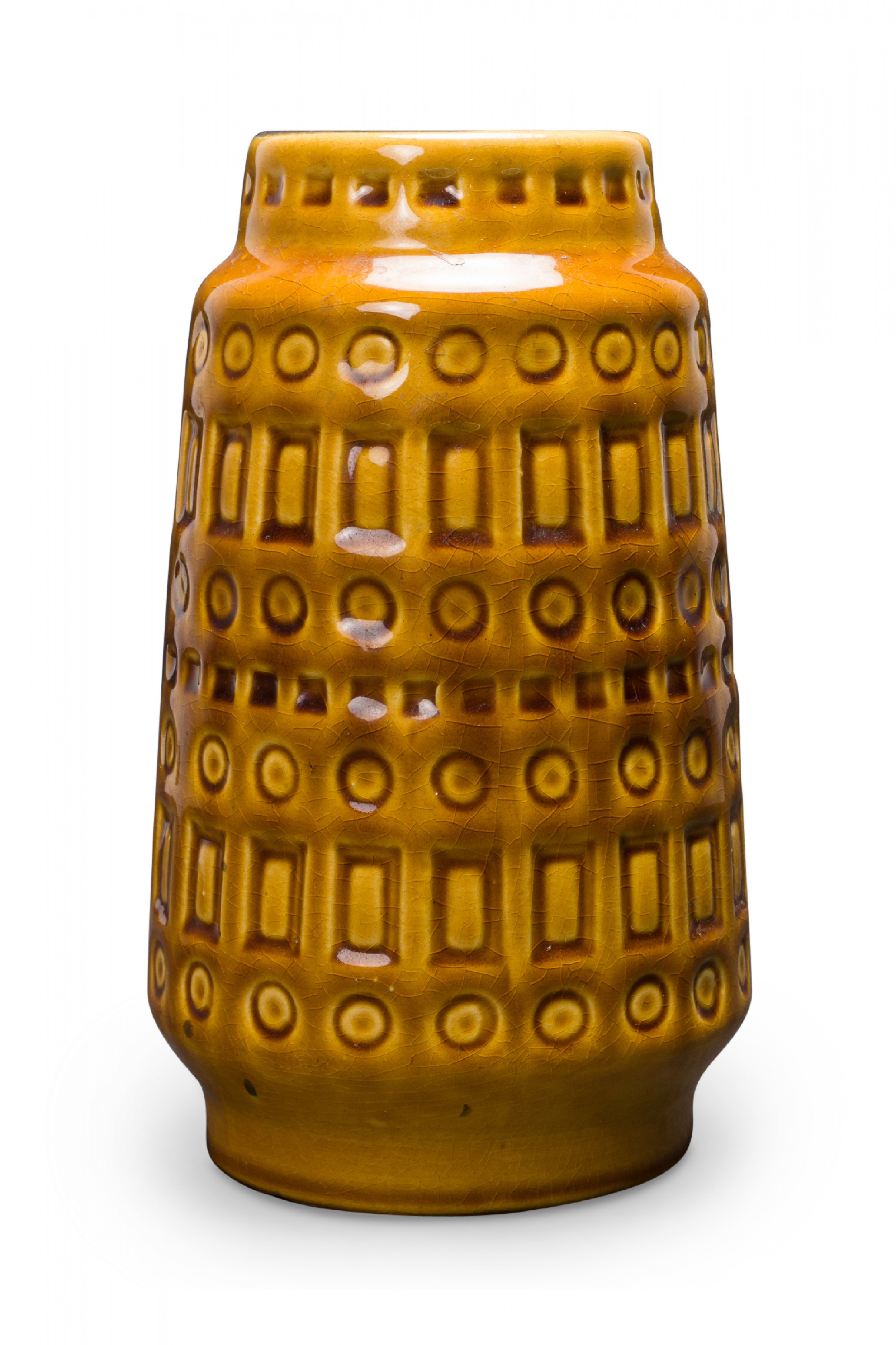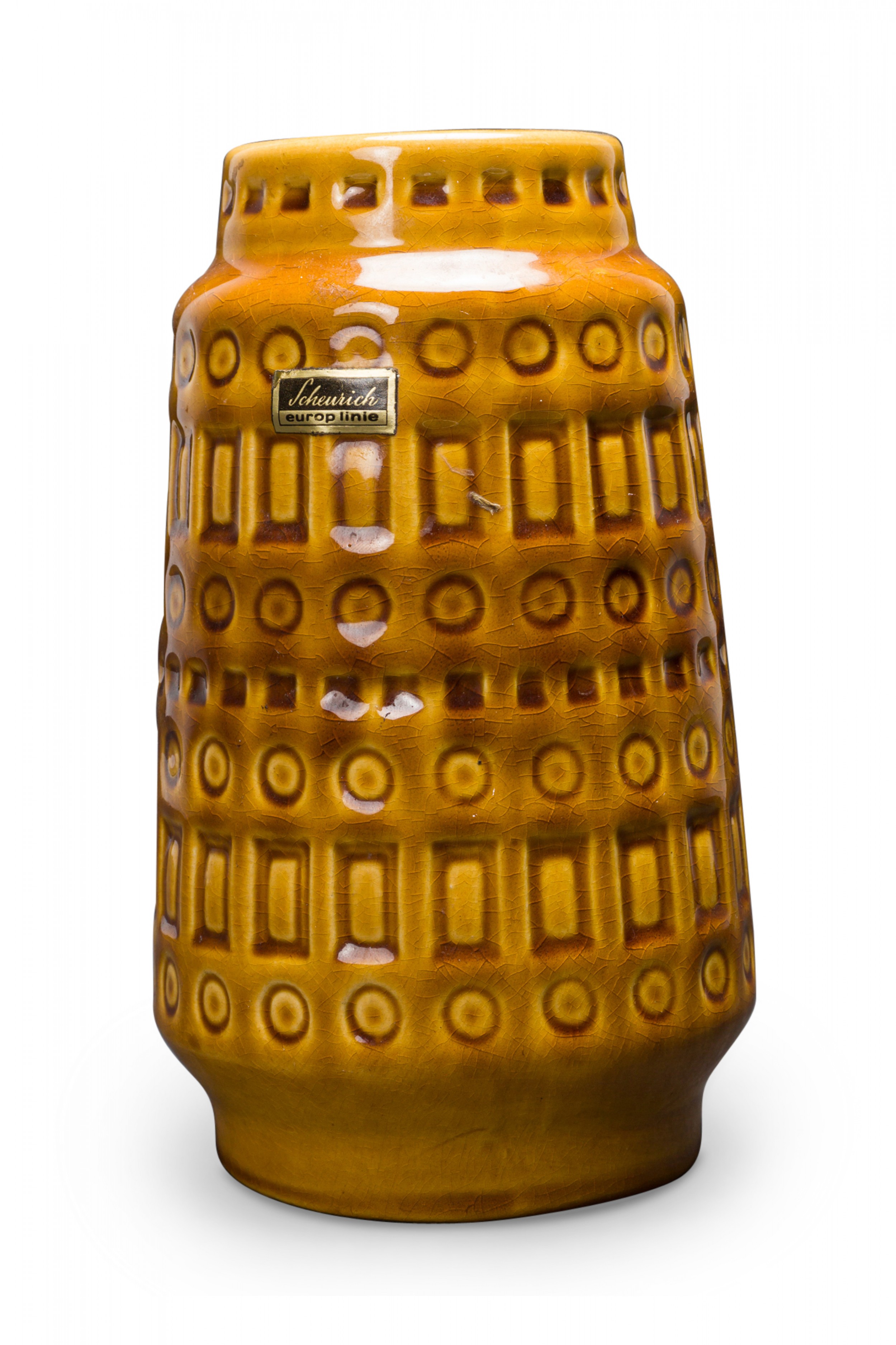 Scheurich Keramik West German 'Inka' Patterned Goldenrod Glazed Ceramic Vase