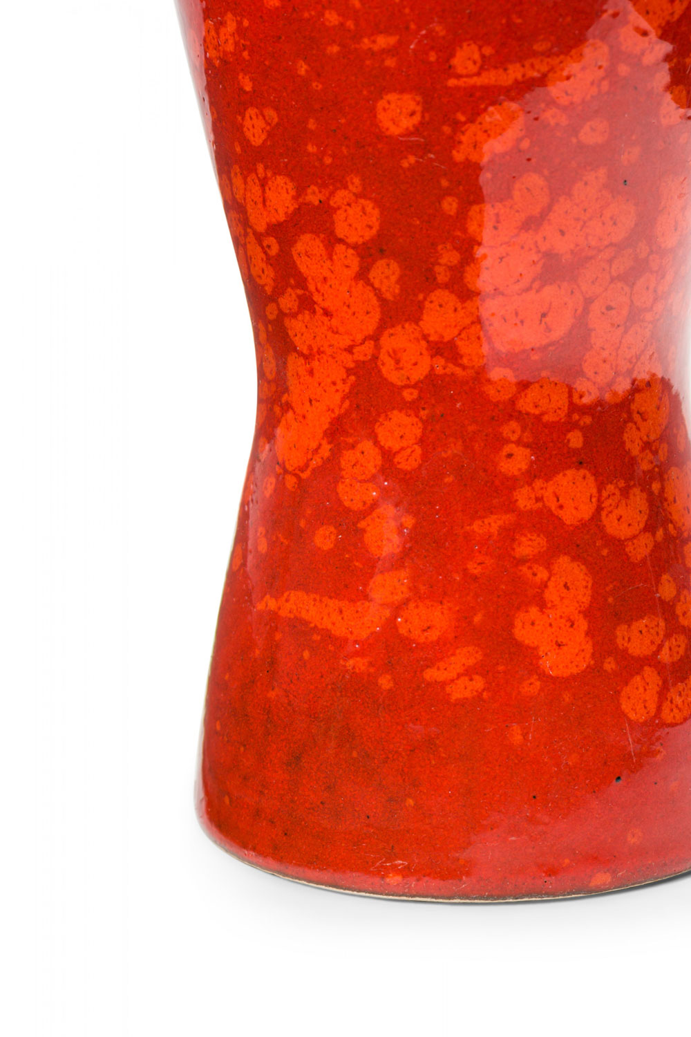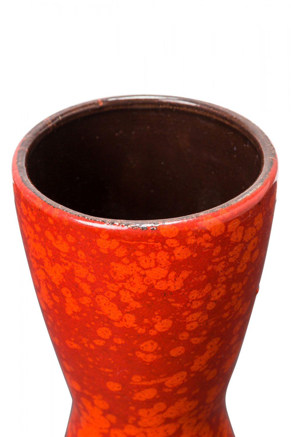 Scheurich Mid-Century West German Red and Orange Speckled Glazed Hourglass Shaped Ceramic Vase