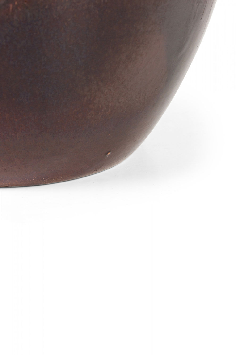West German Mid-Century ceramic vase with a round bulbous form extending to a narrower neck with a pronounced lip and a pitted fat lava glaze that is red on top and black on the bottom. (SCHEURICH, mark on bottom, W. GERMANY 486-38).
