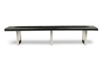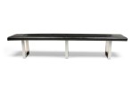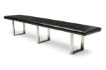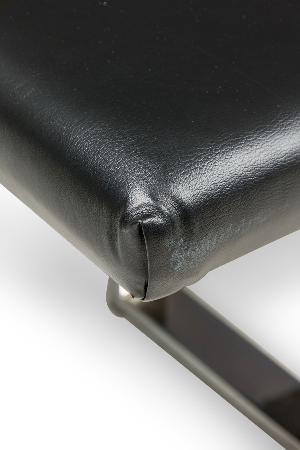12 American Mid-Century large museum benches with a black tufted faux leather seat resting on three squared chrome support legs (PRICED EACH)