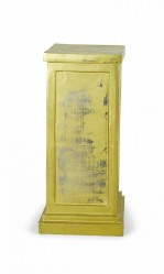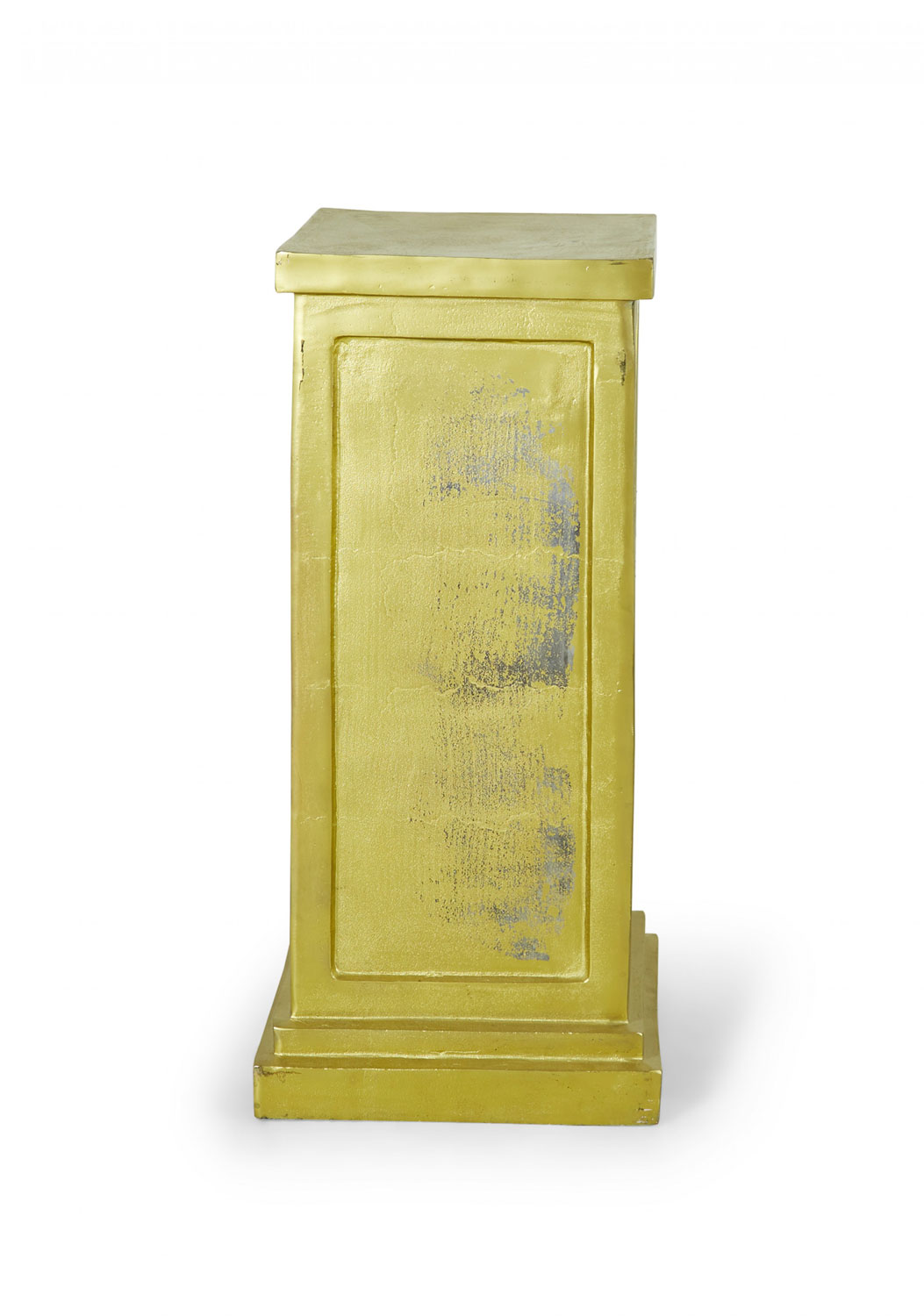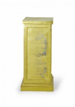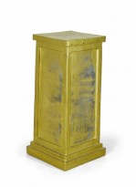 3 Contemporary square metal pedestals with a gold painted finish, a stepped base, and inset rectangular sides. (PRICED EACH)