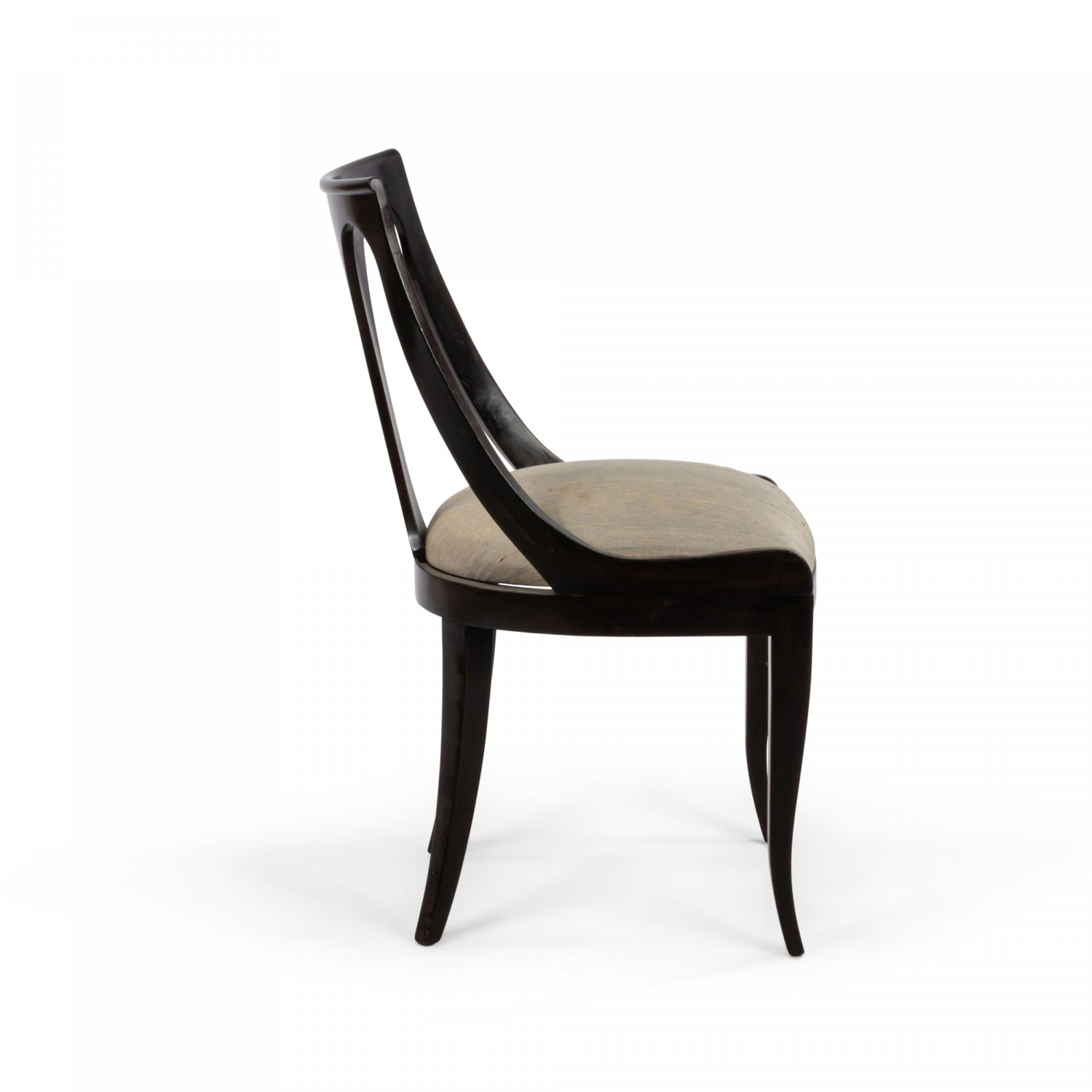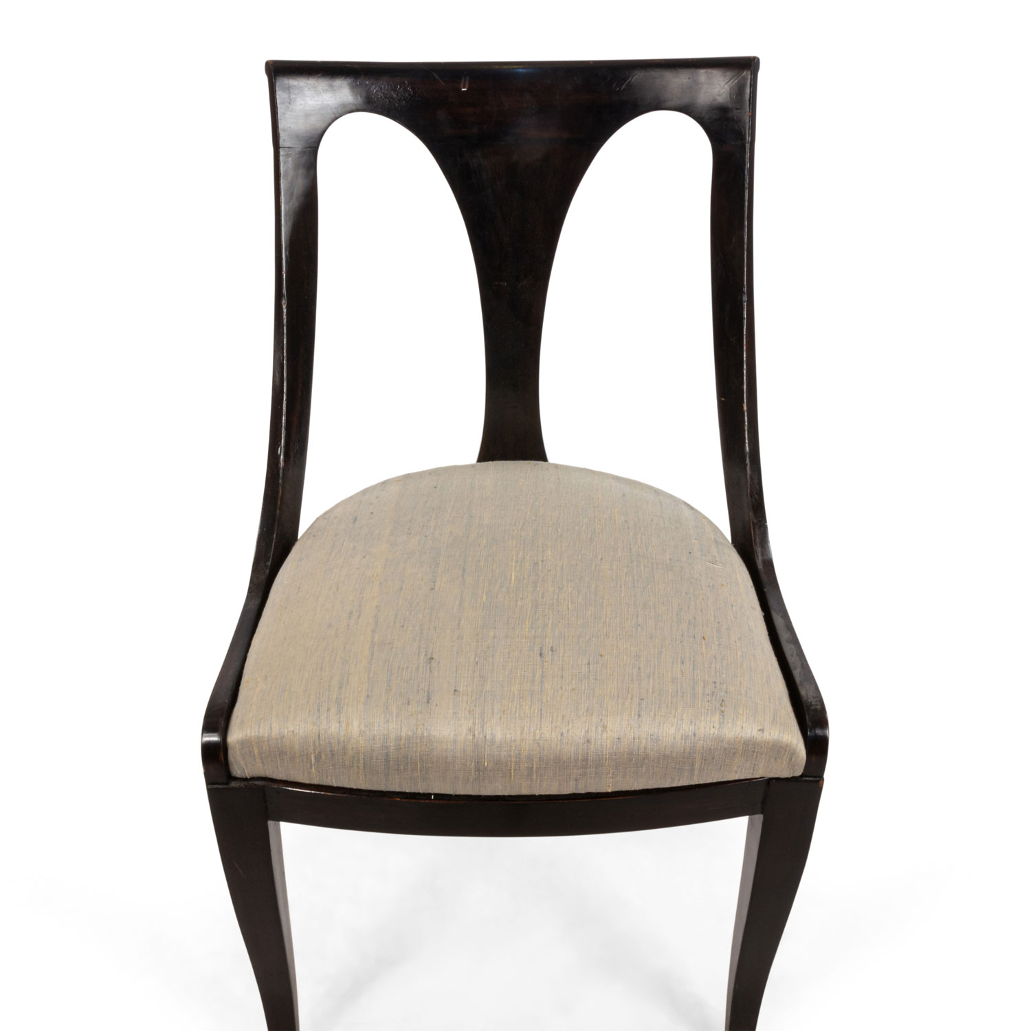 Set of 4 Empire Style Black Lacquer and Blue Silk Dining Side Chairs